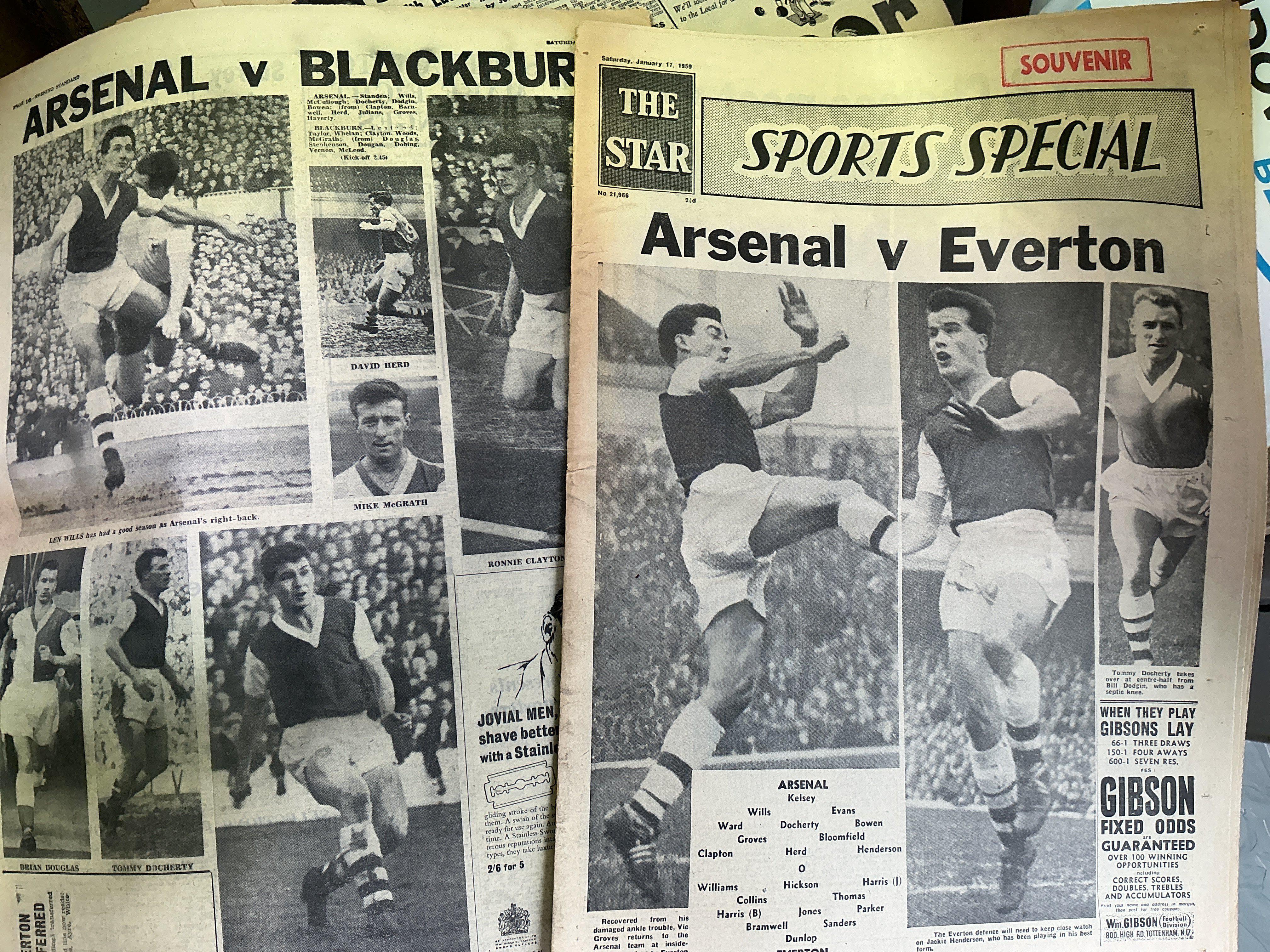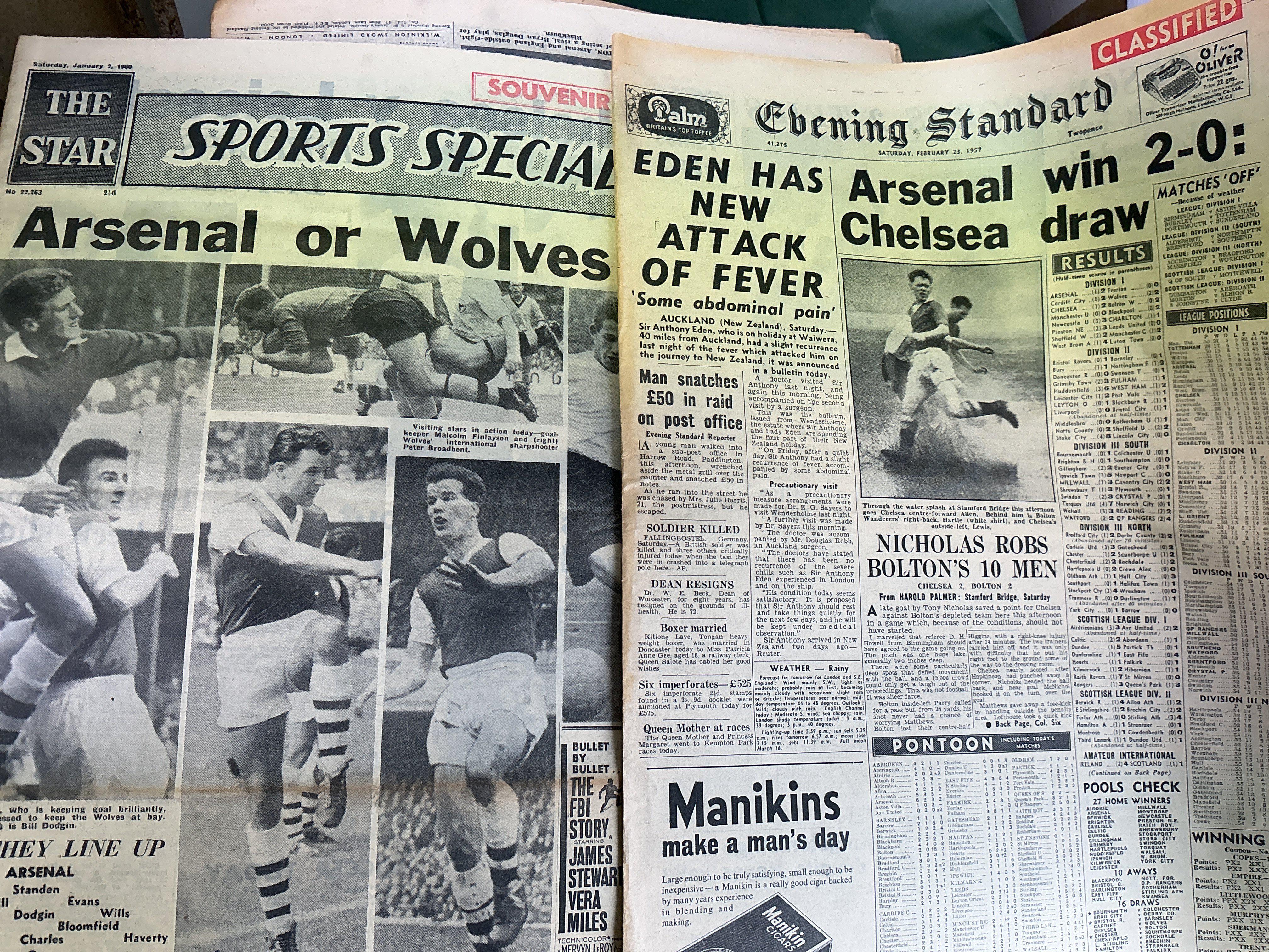 Arsenal Late 1950s Football Newspapers: Estimate over 40 complete newspapers often with the front page headline featuring Arsenal. C/W part newspapers additionally.
