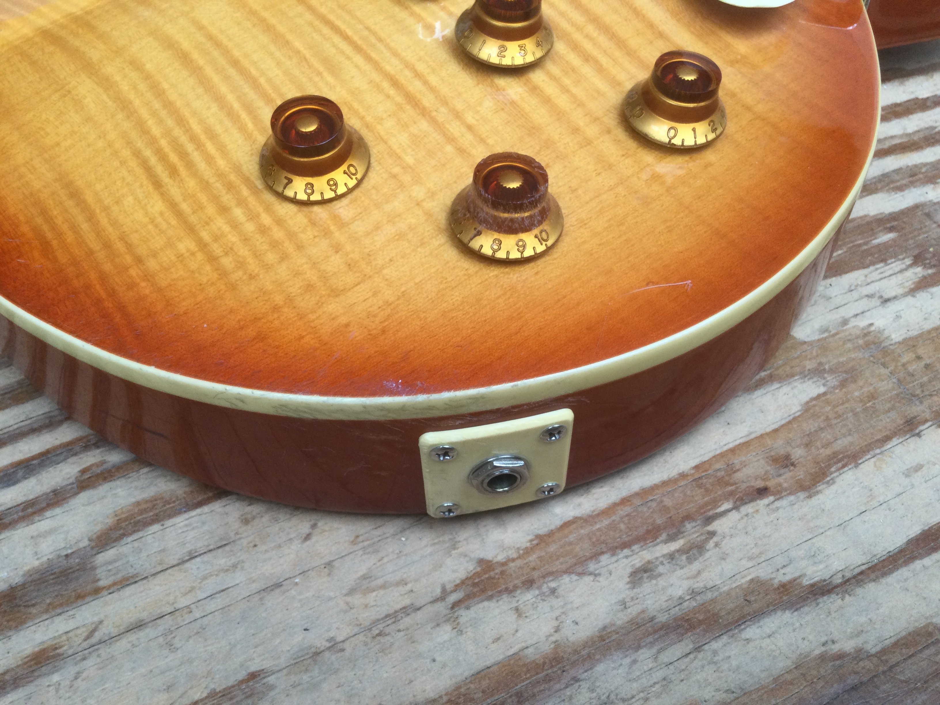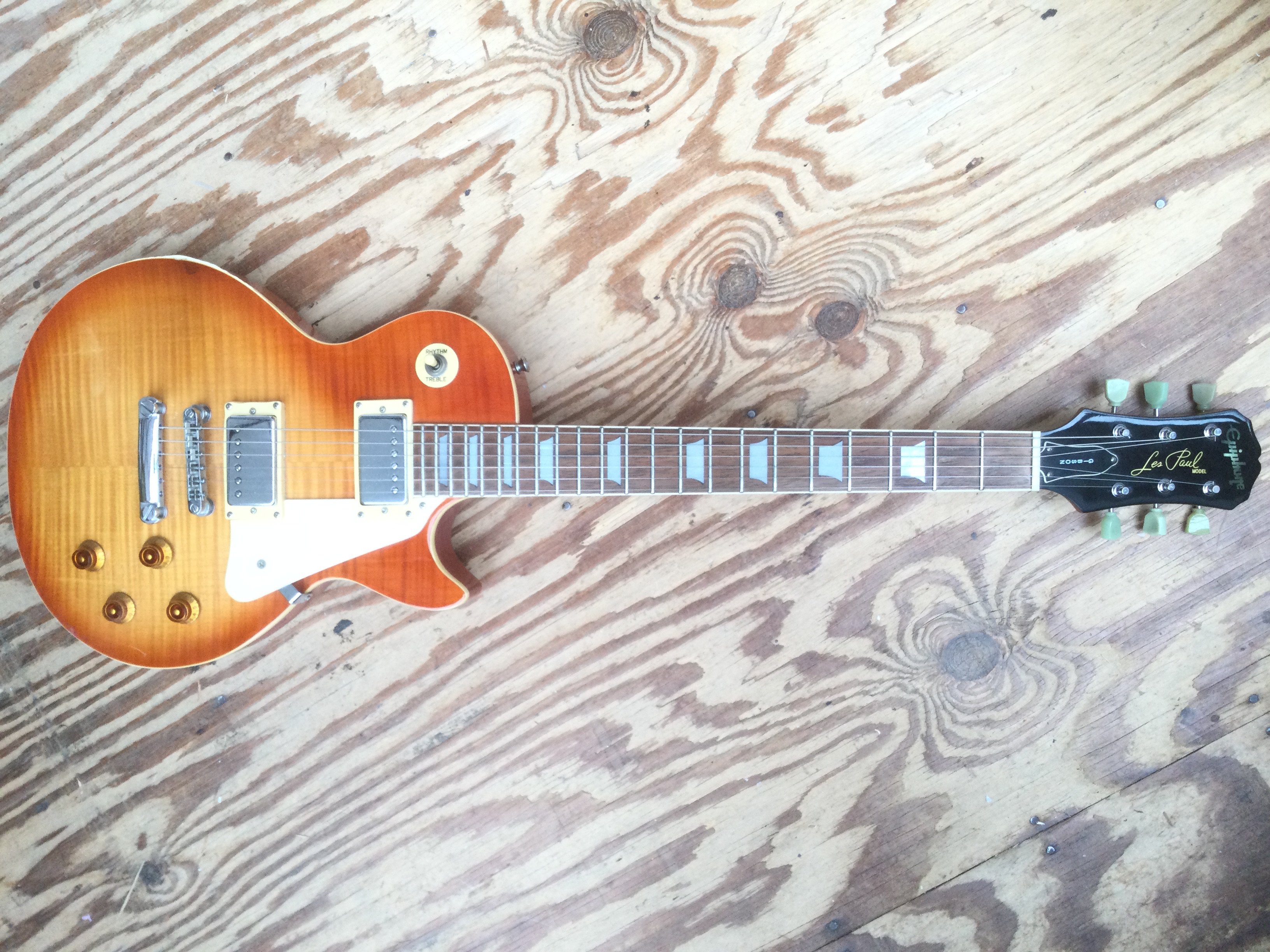 A limited edition Epiphone by Gibson Les Paul electric guitar. Comes with soft carry case. Some damage to the binding and around jack plate.