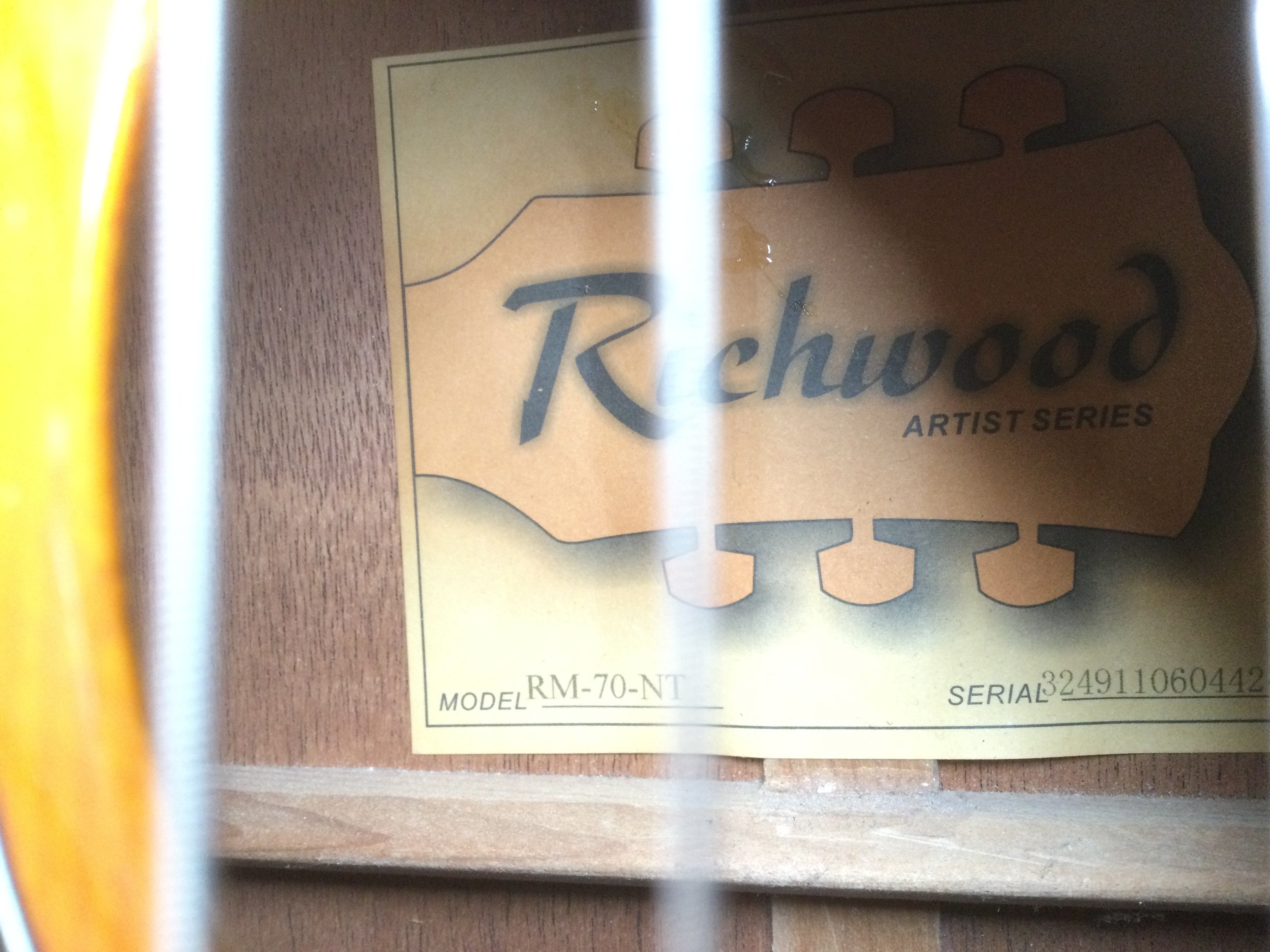 A Richwood RM70-NT Artist series electro acoustic guitar. Comes with a soft carry case.