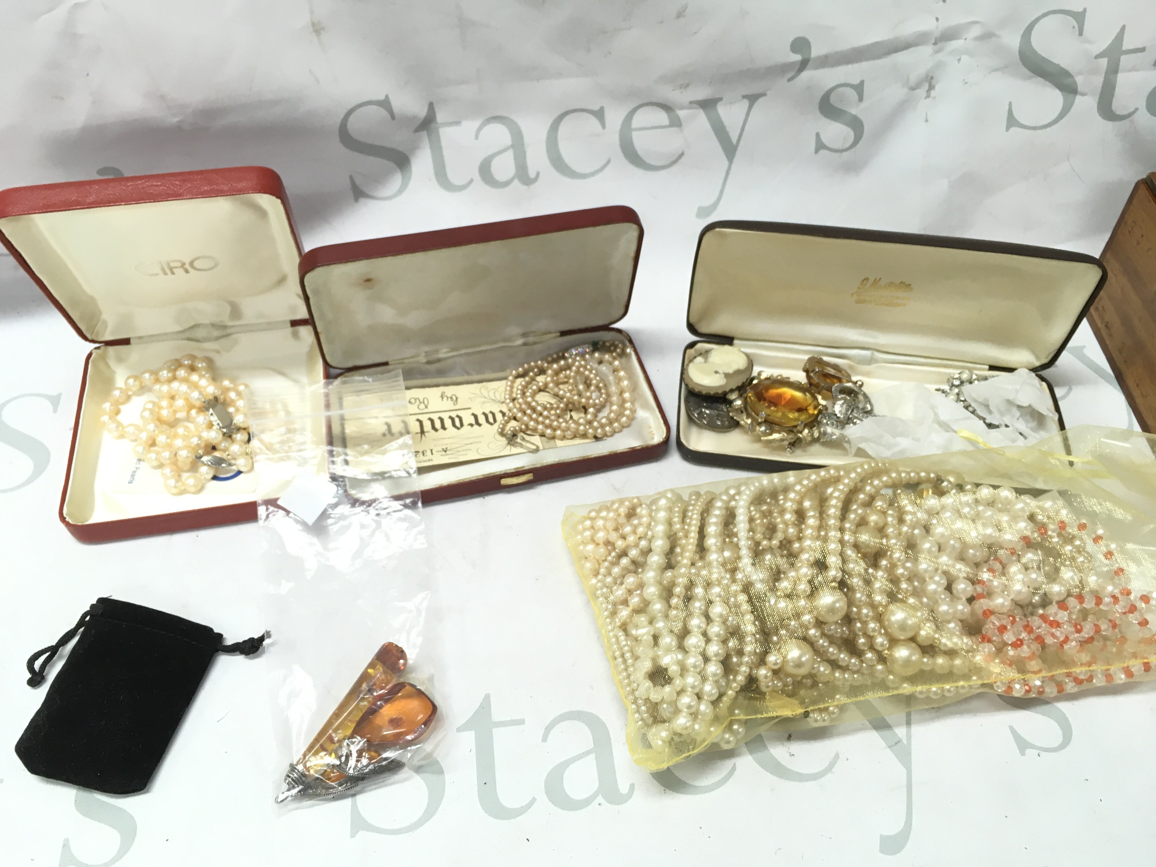 A mixed collection of costume jewellery including necklaces, brooches etc