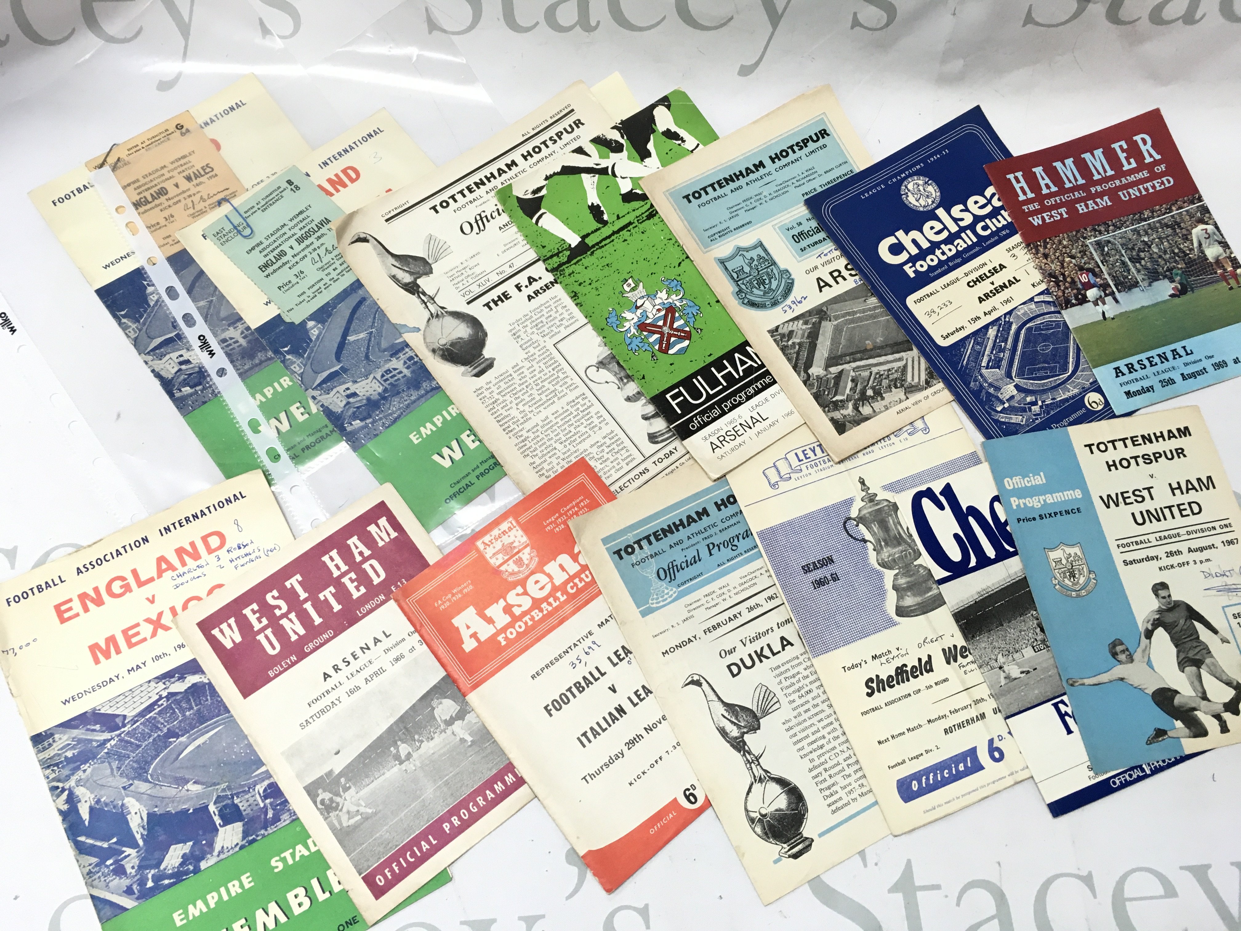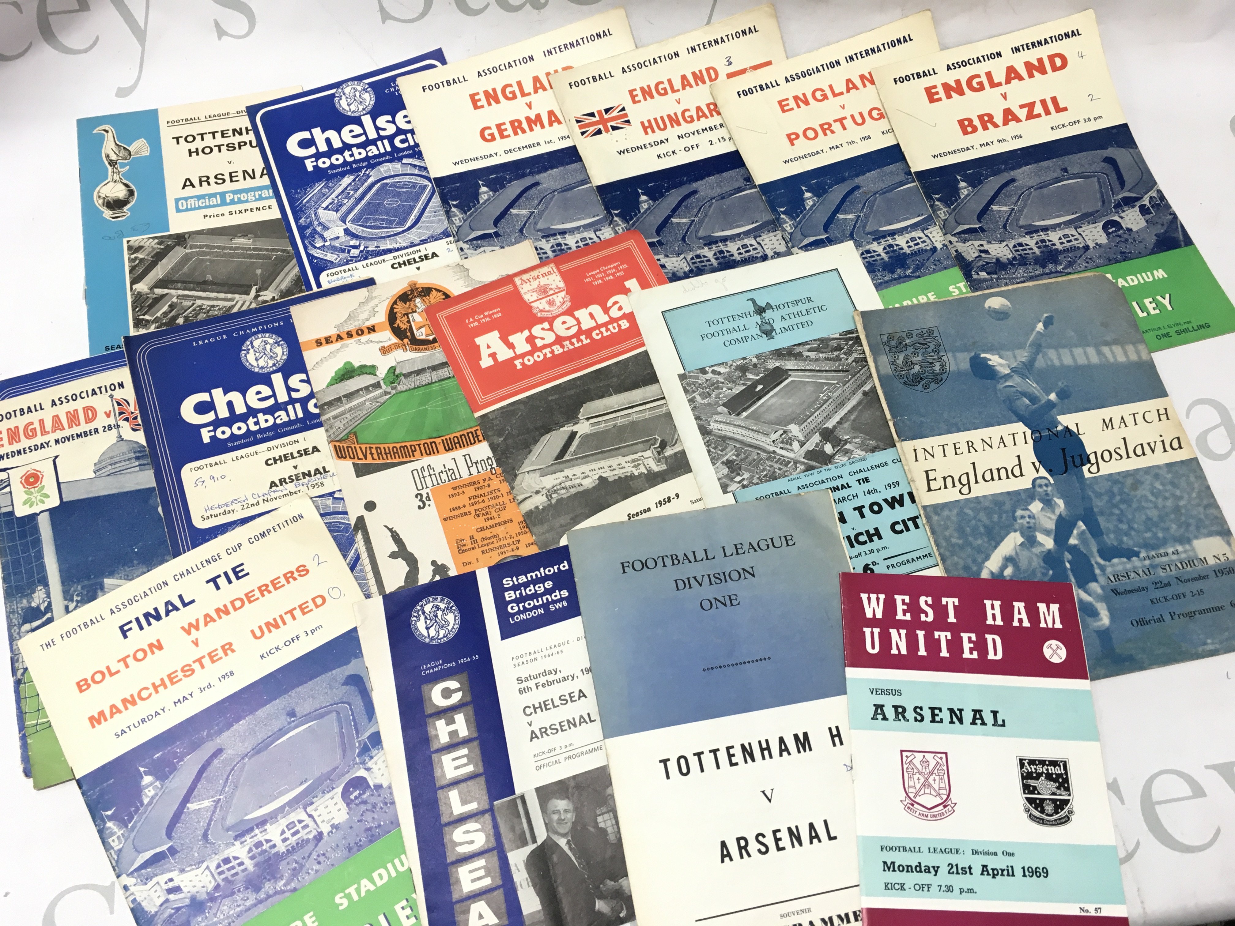 Vintage Football programmes including England, West Ham, Tottenham, Chelsea etc. postage catb