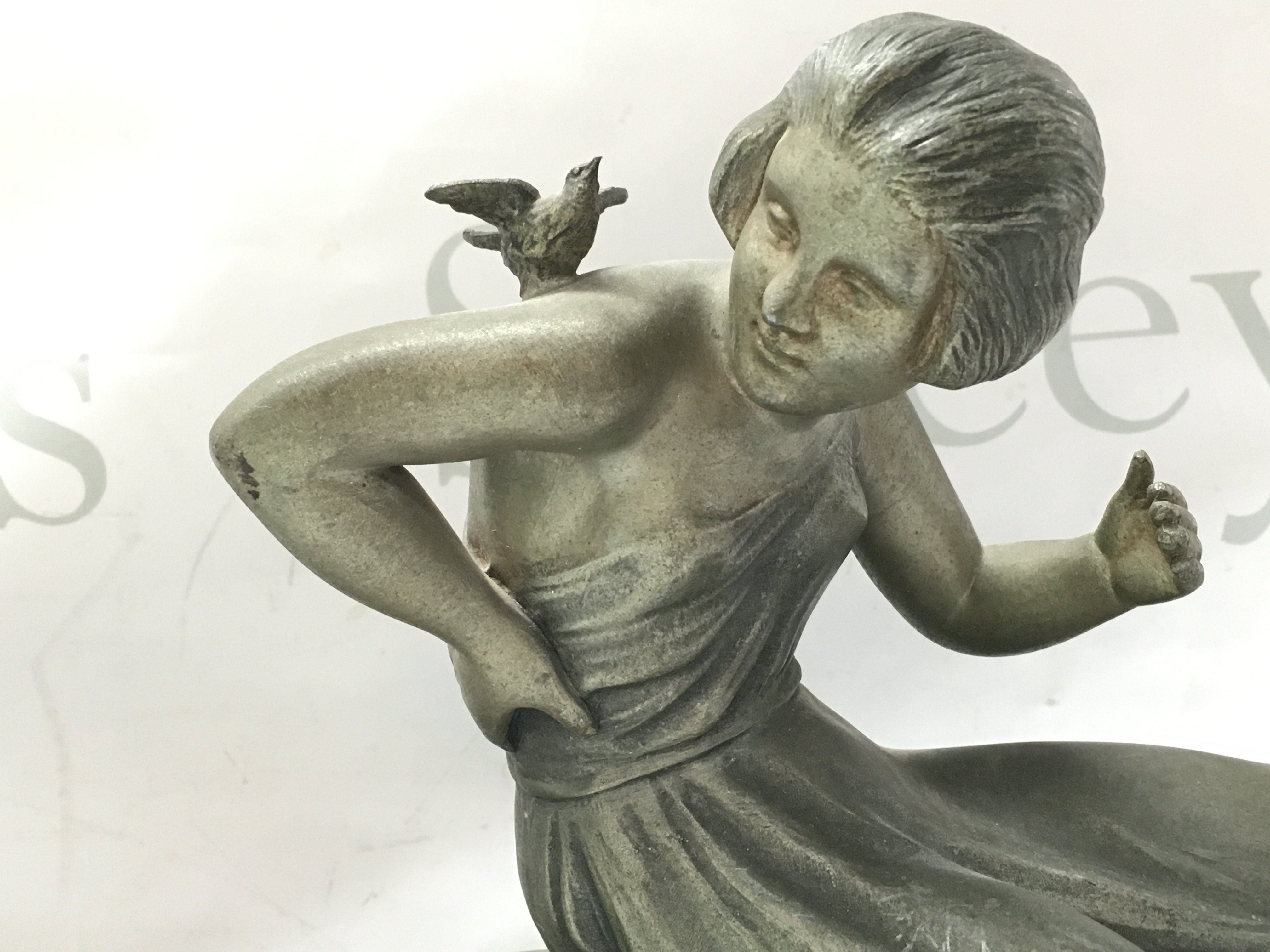 A French spelter art deco figure Georges Van De Voorde, Le Prefere Jaloux .24cm tall 50cm wide . This lot cannot be posted