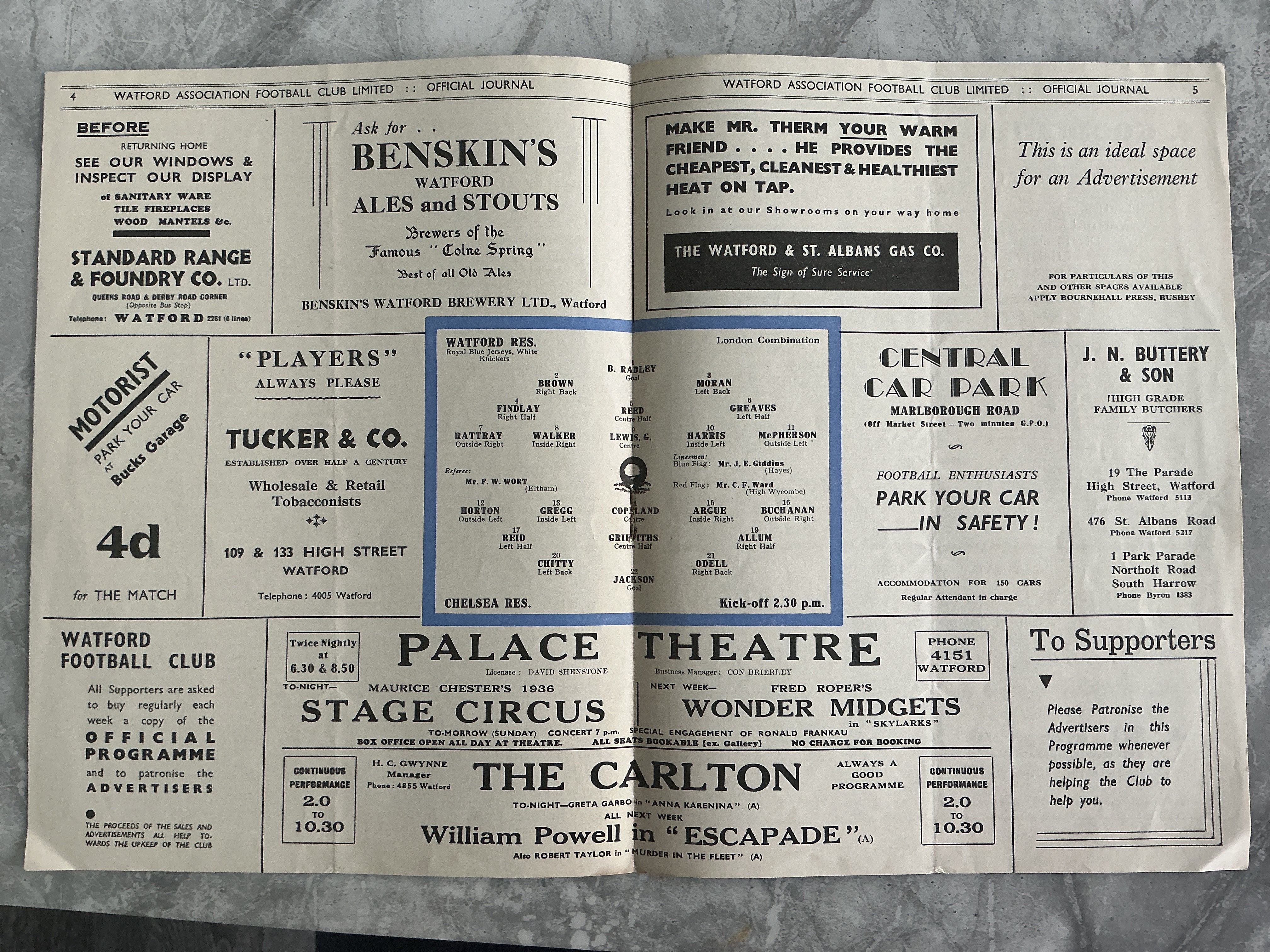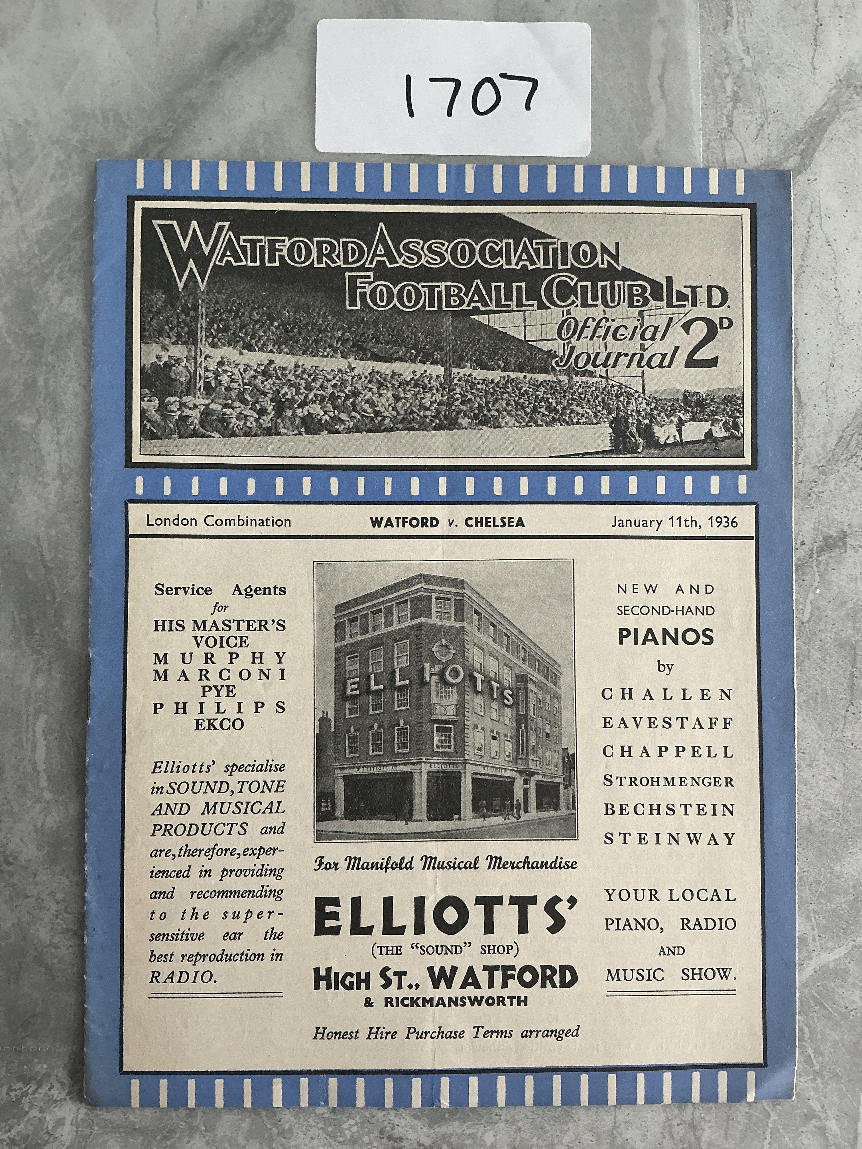 35/36 Watford v Chelsea London Combination Football Programme: Excellent condition with no team changes.