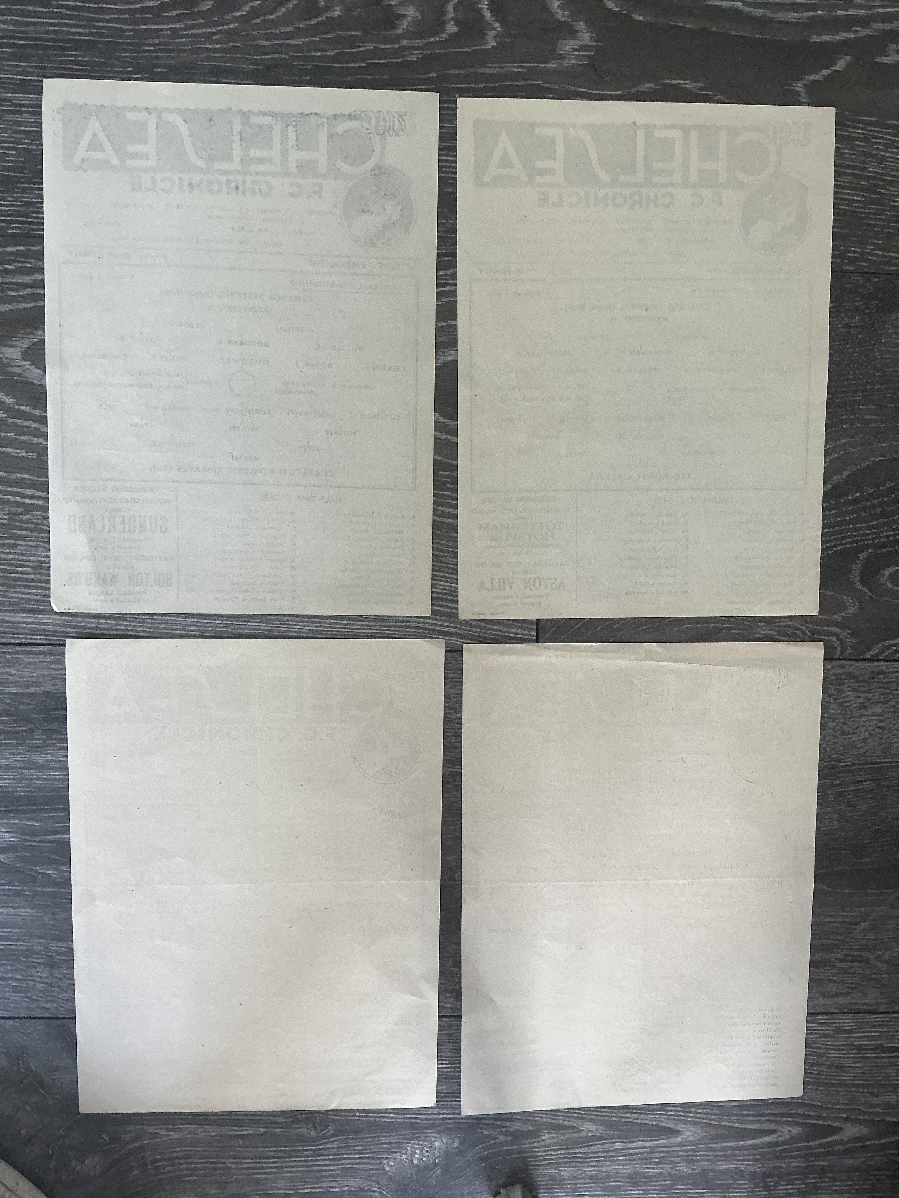 47/48 Chelsea Home Reserve Football Programmes: Excellent condition single sheets for Football Combination matches v Leicester Fulham Aldershot and Charlton. Never seen them in such superb condition with no writing. (4)