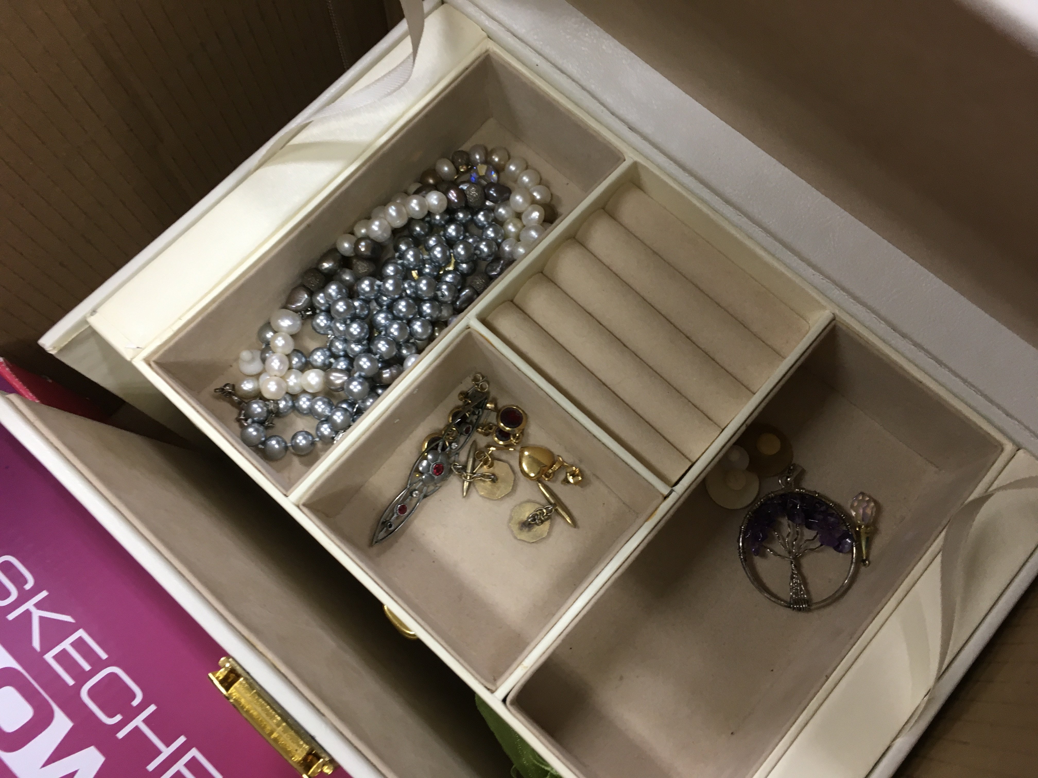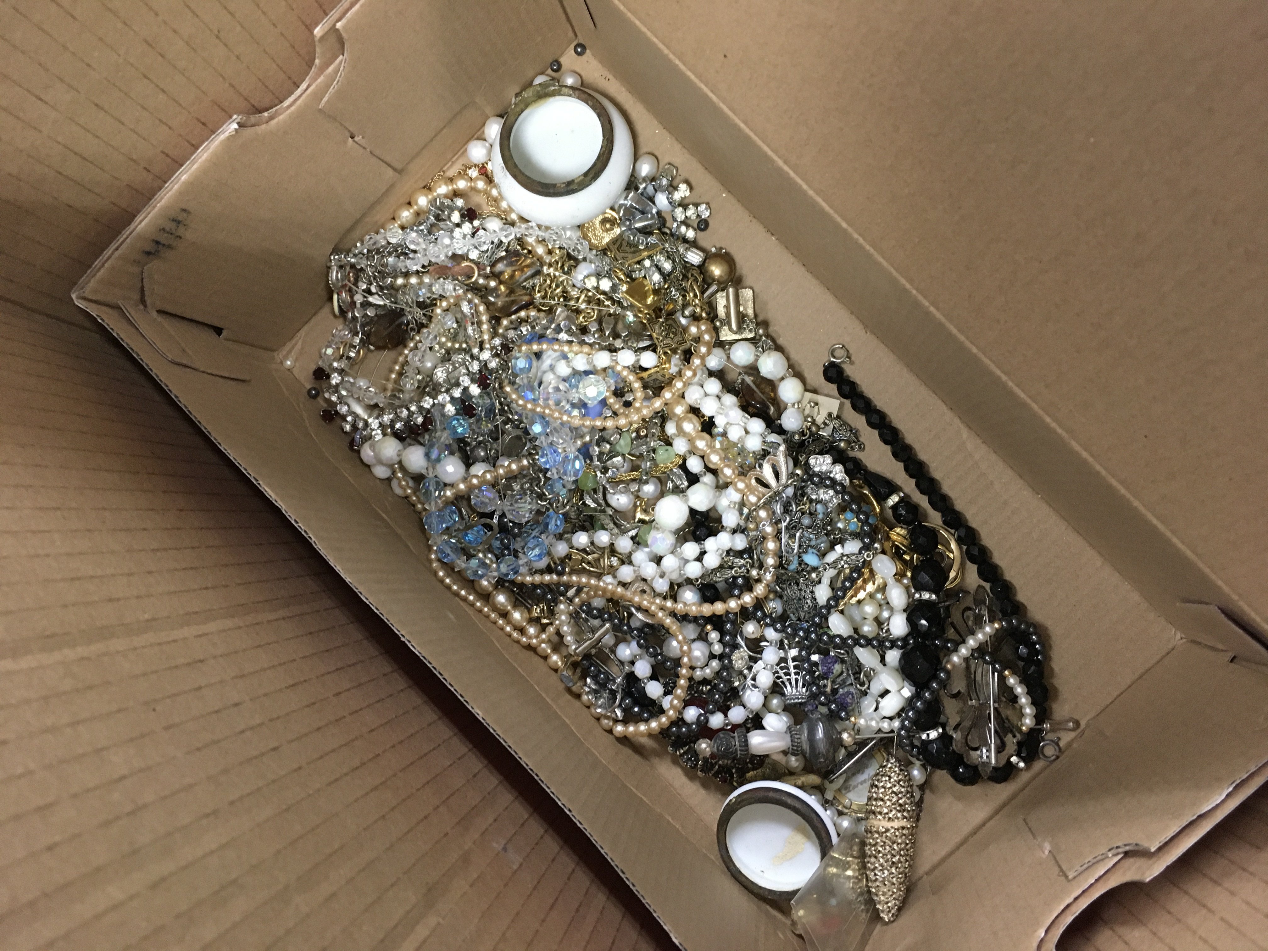 A large box of costume jewellery including brooches , cufflinks etc . Postage catC