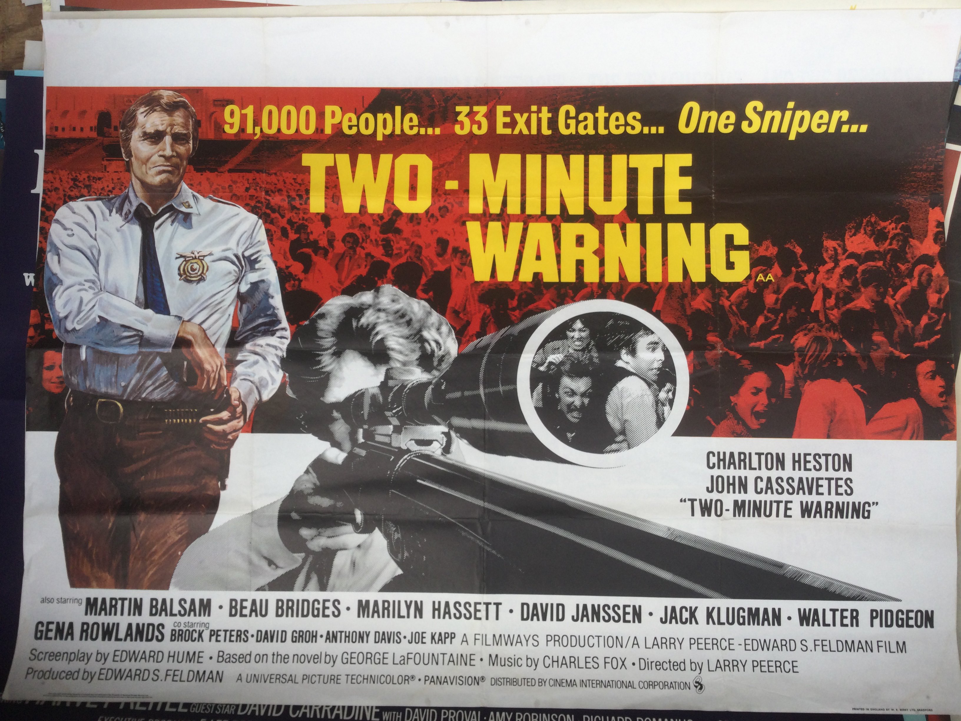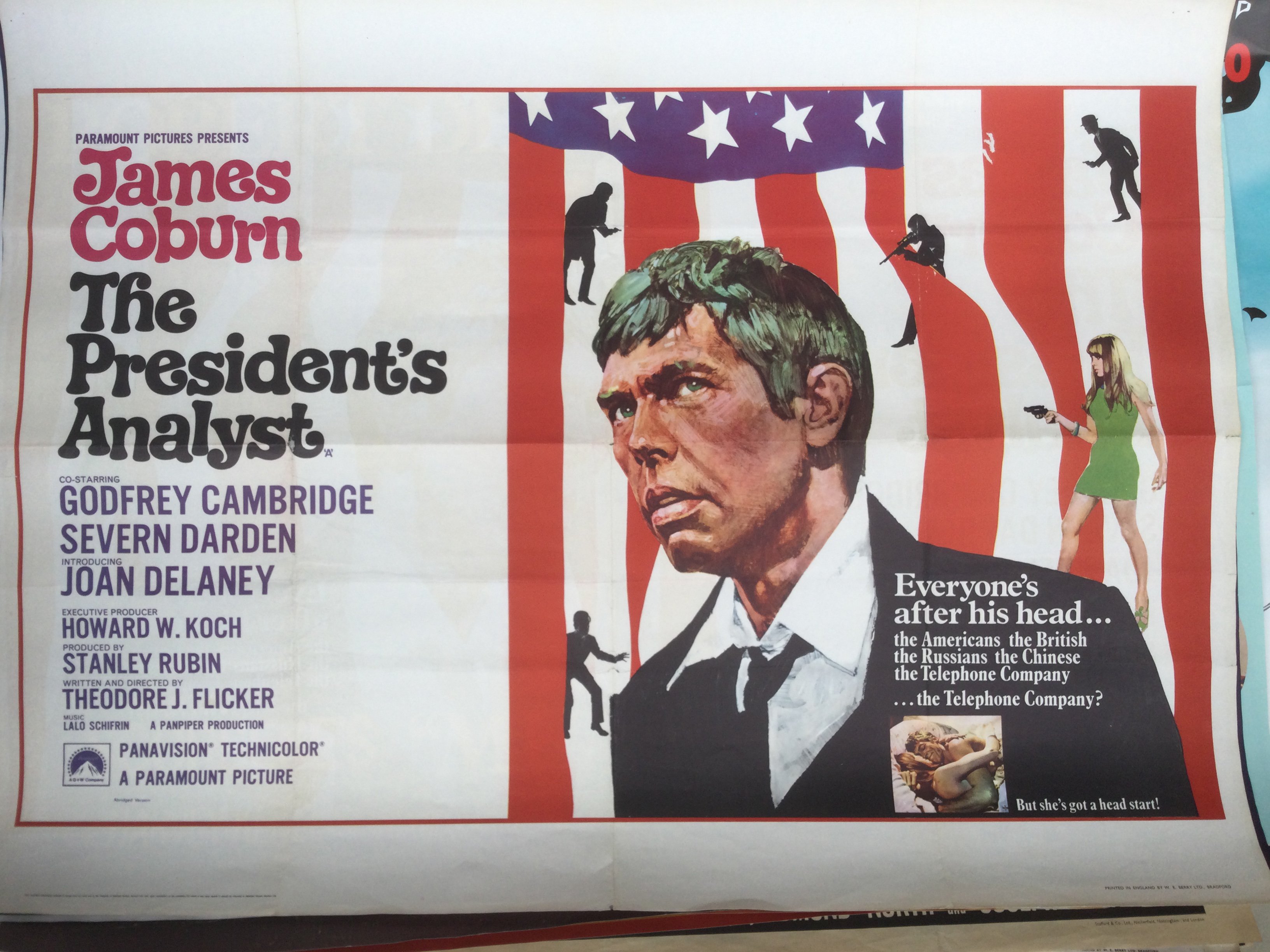 Four original UK quad film posters for JFK, Two Minute Warning, Deadfall and The President's Analyst. Rolled with folds, minimal damage.