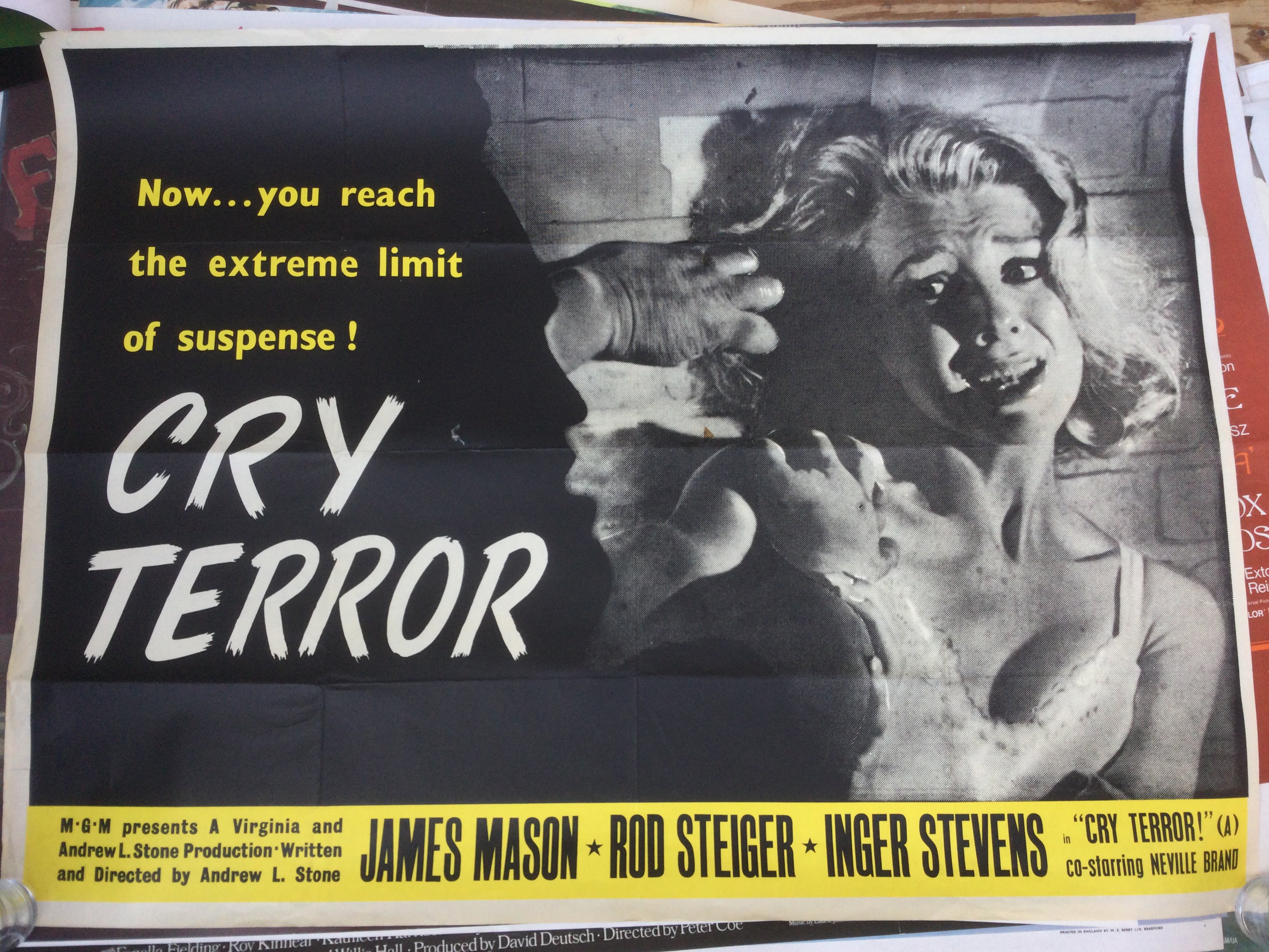Four horror film posters comprising Dead & Buried, Cry Terror, Blind Terror and Demons Of The Mind (bus stop poster). All folded.