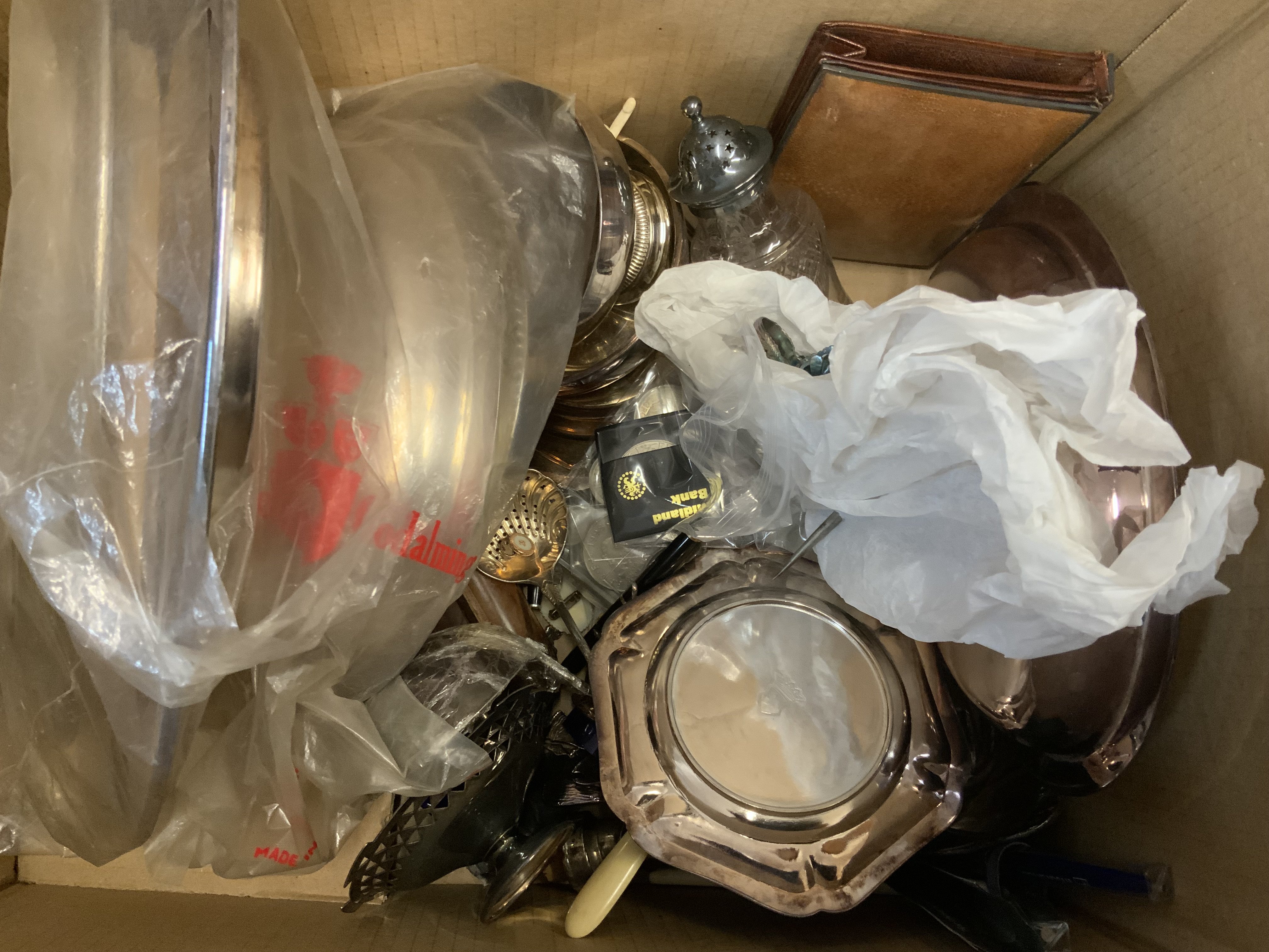 A large collection of silver plated items. (D)
