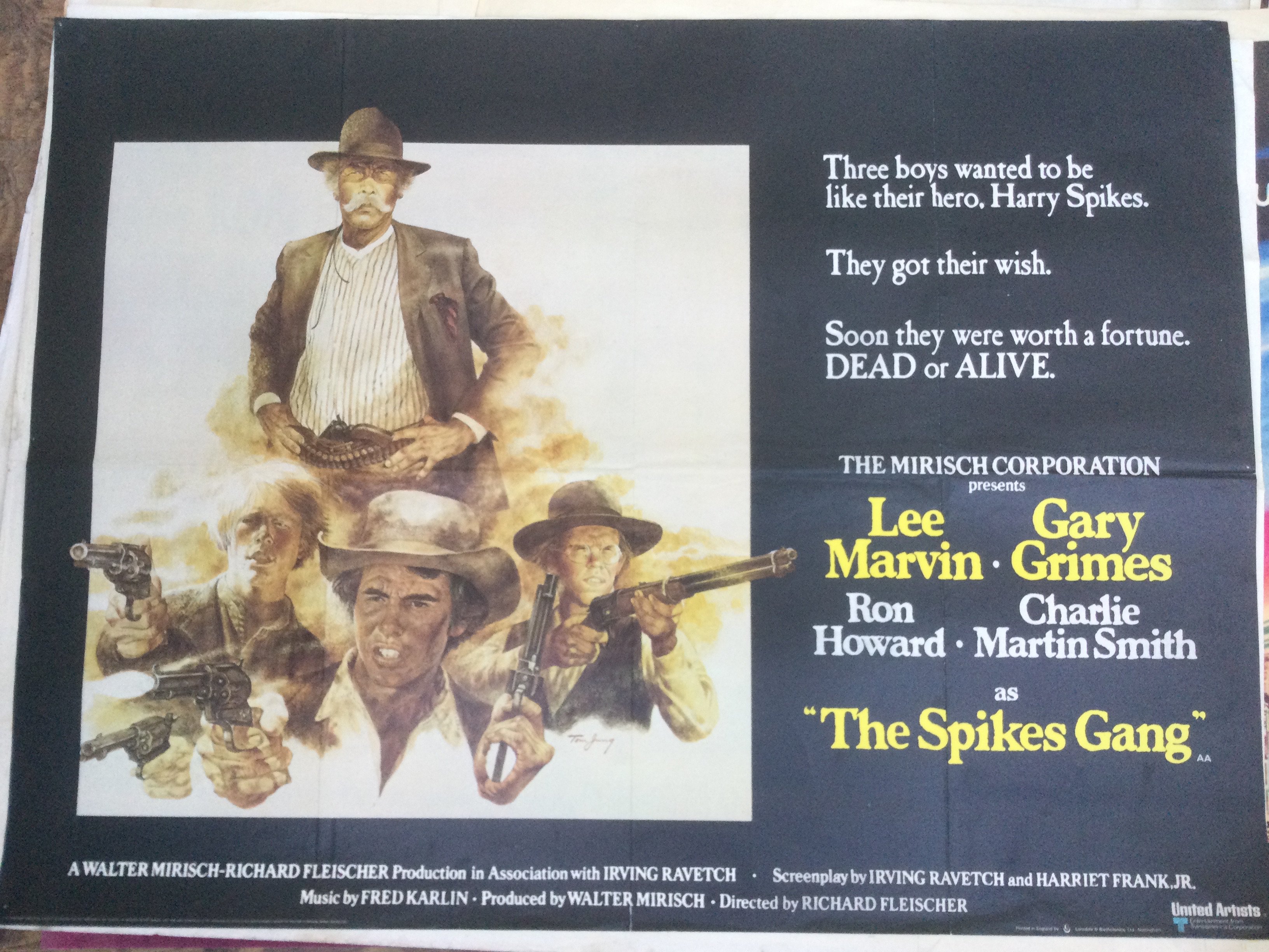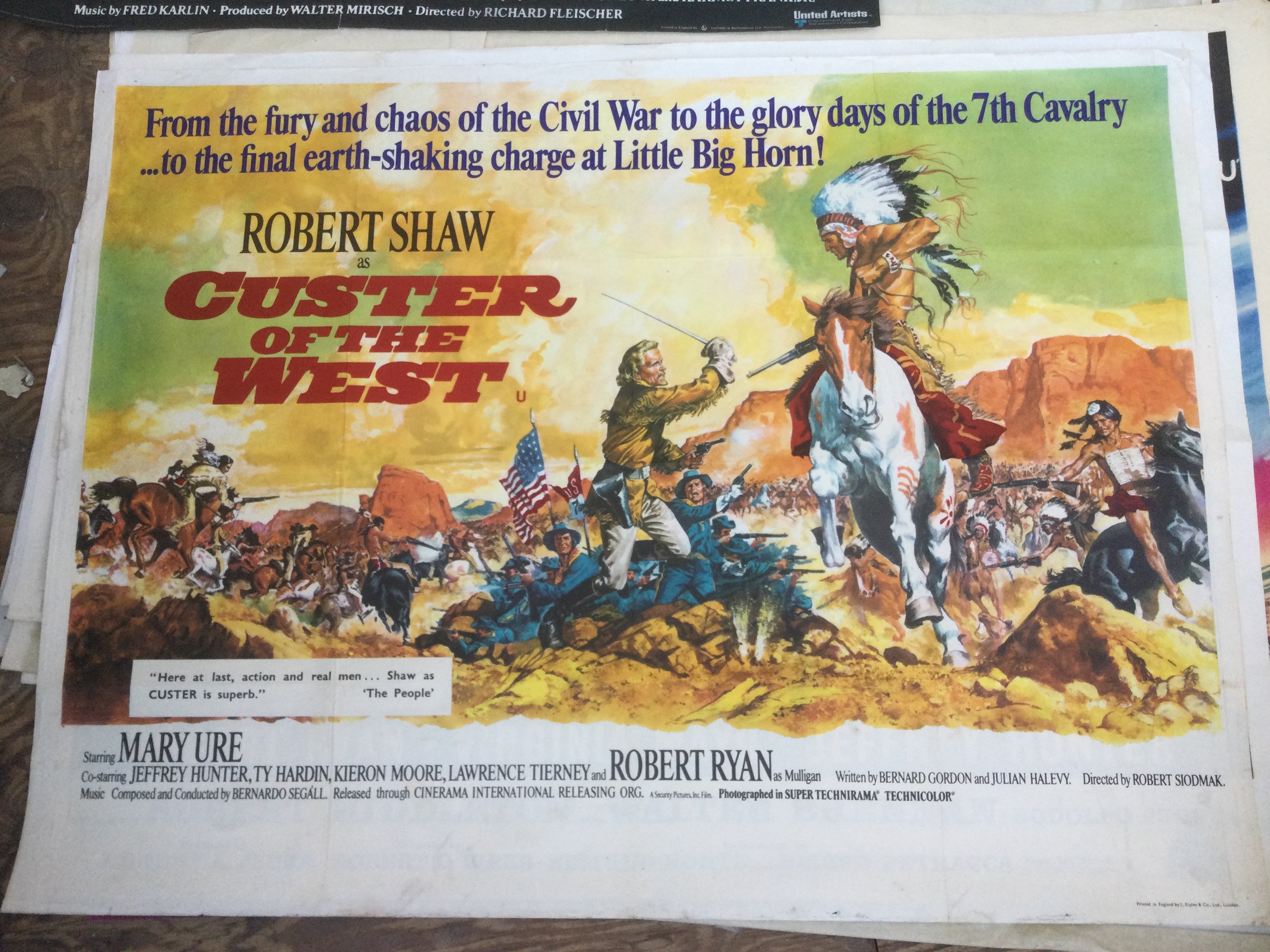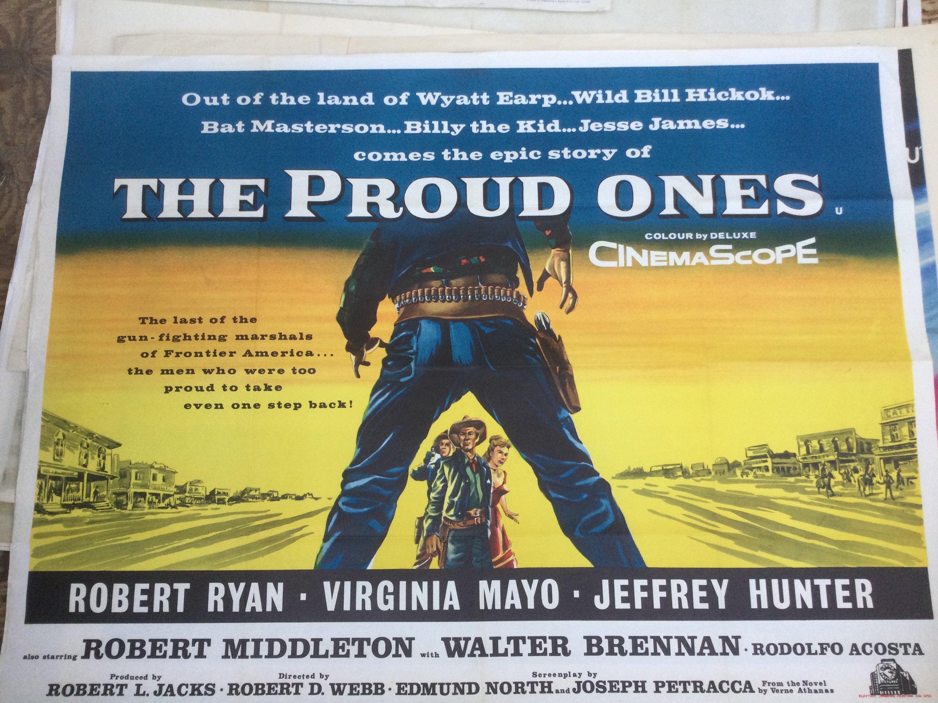 Four Western movie posters comprising two for The Proud Ones, Custer Of The West and The Spikes Gang. All folded with pin holes.