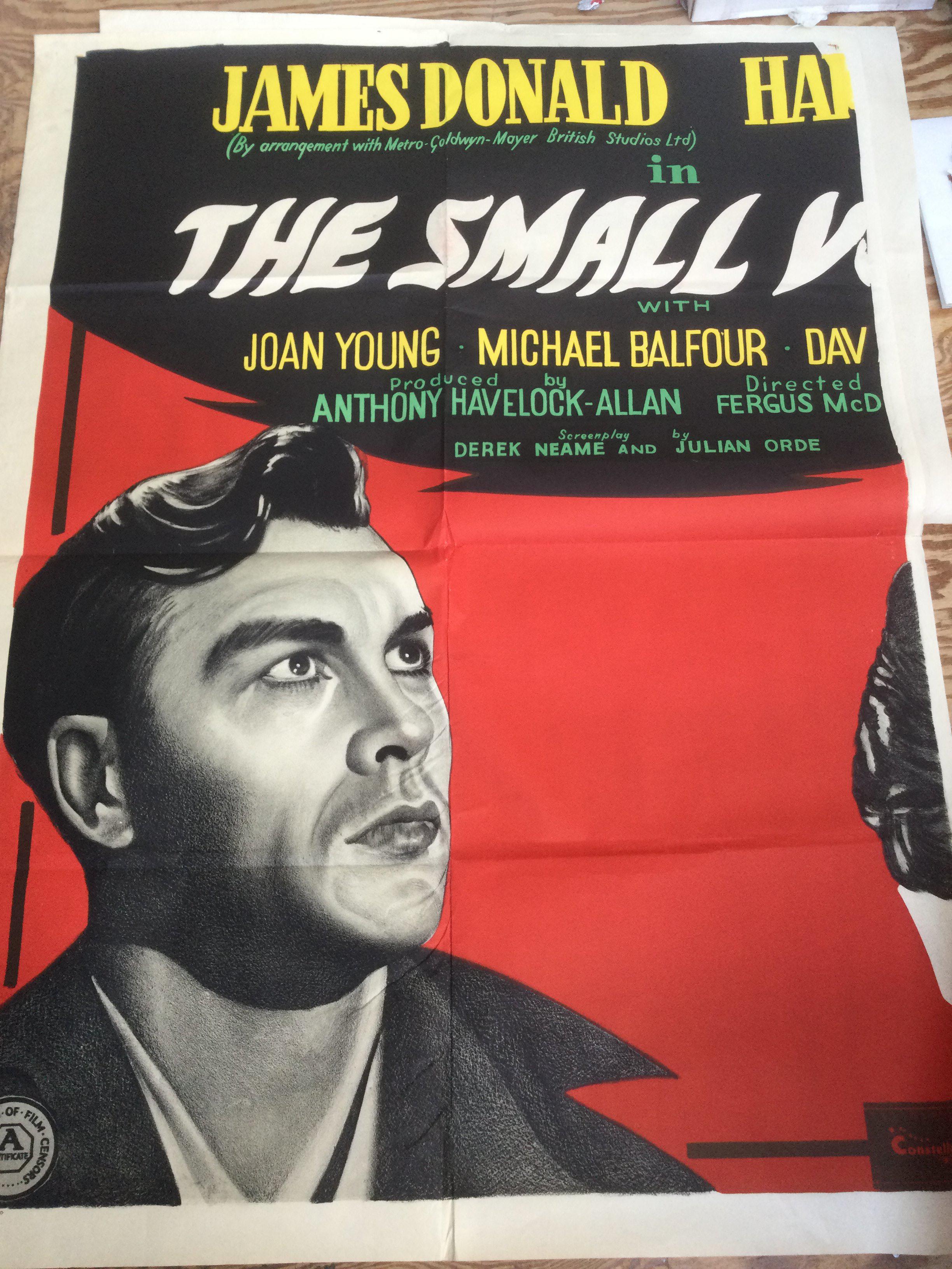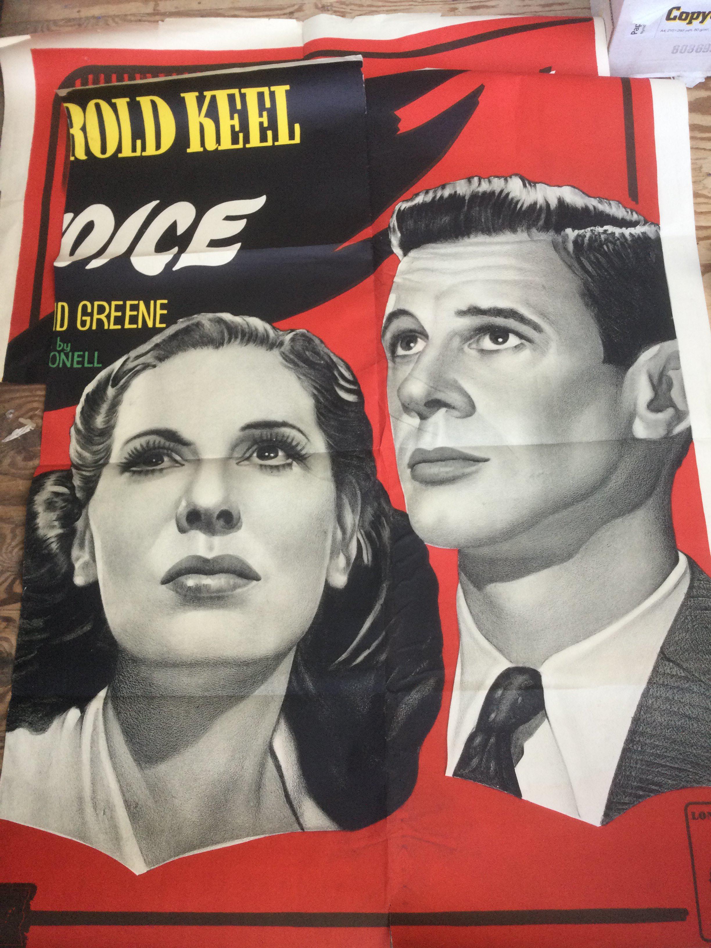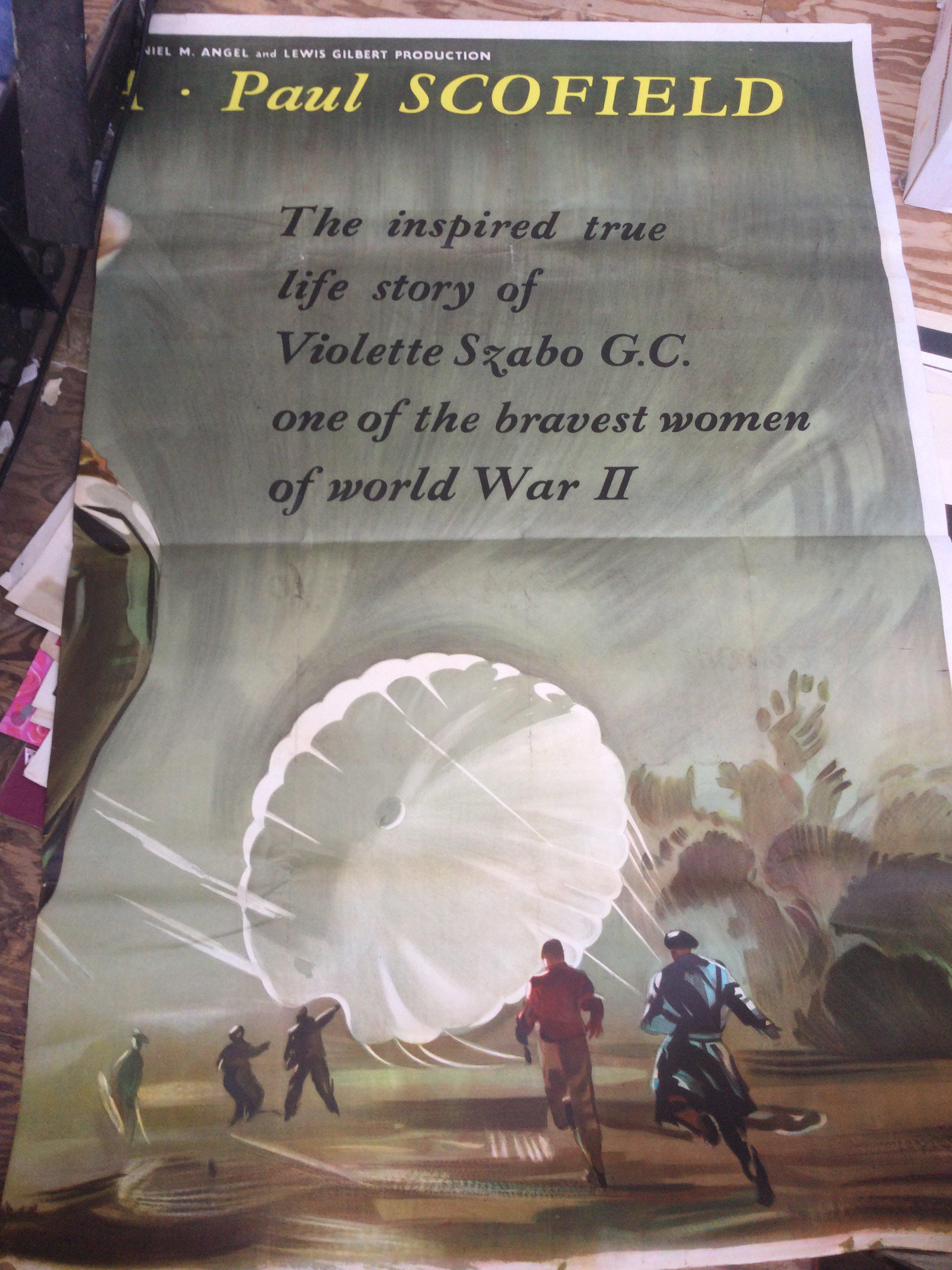 A collection of vintage film posters including various sections of billboard posters including Carve Her Name With Pride, Never Let Go and others.