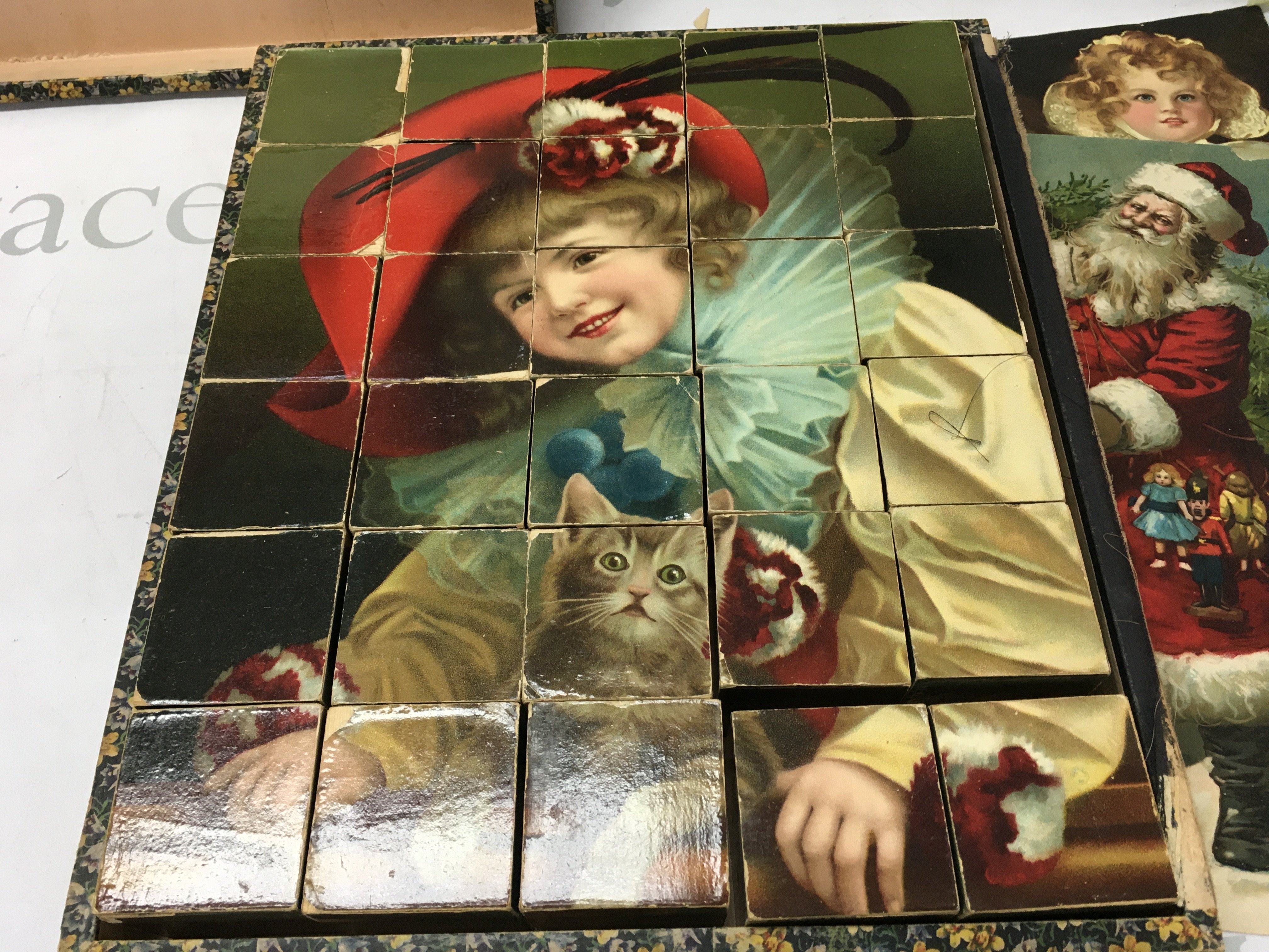 A Victorian block puzzle box, 30 pieces with 5 designs. Postage category C