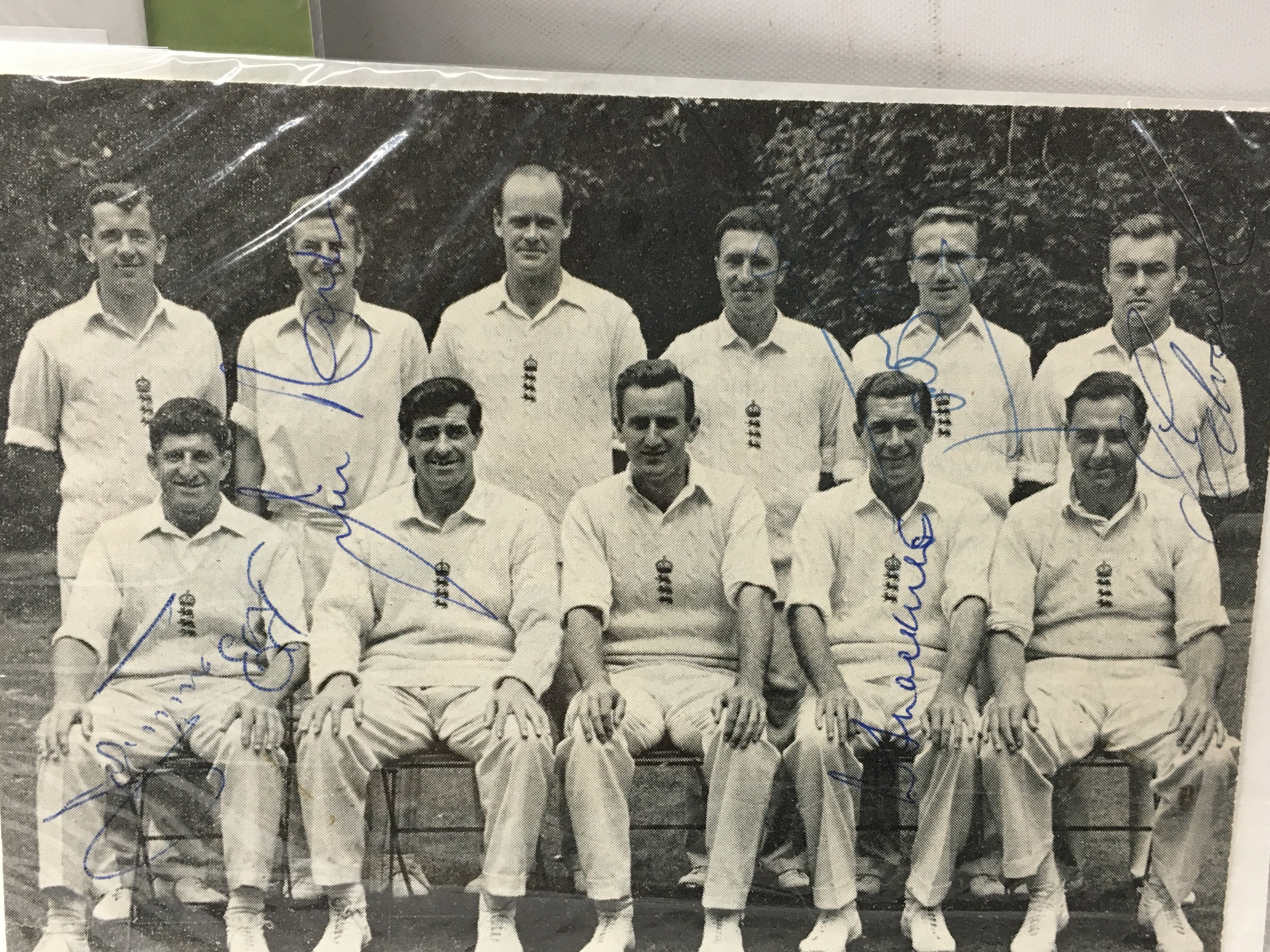 An England 1958 football team signed photograph including players Cowdrey, Trueman etc and a Johnny Wilkinson rugby autograph. Postage catA