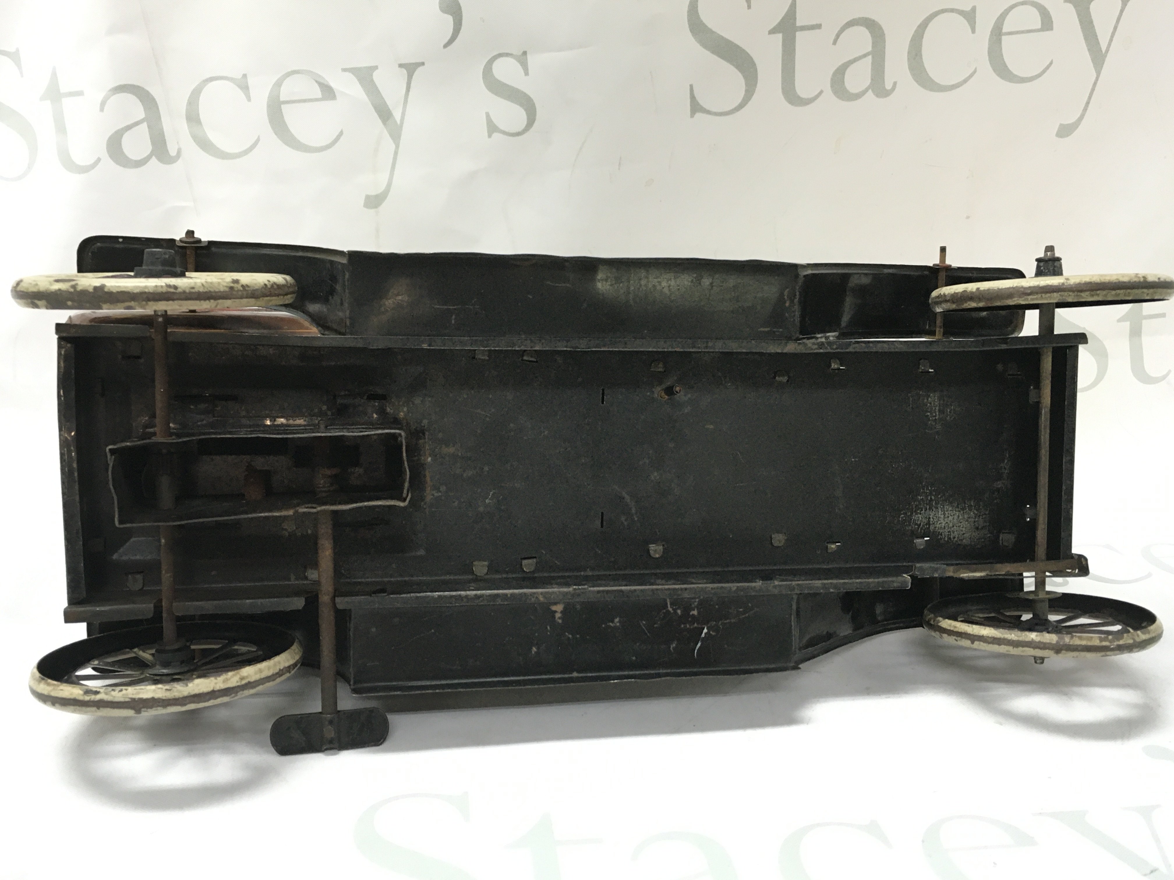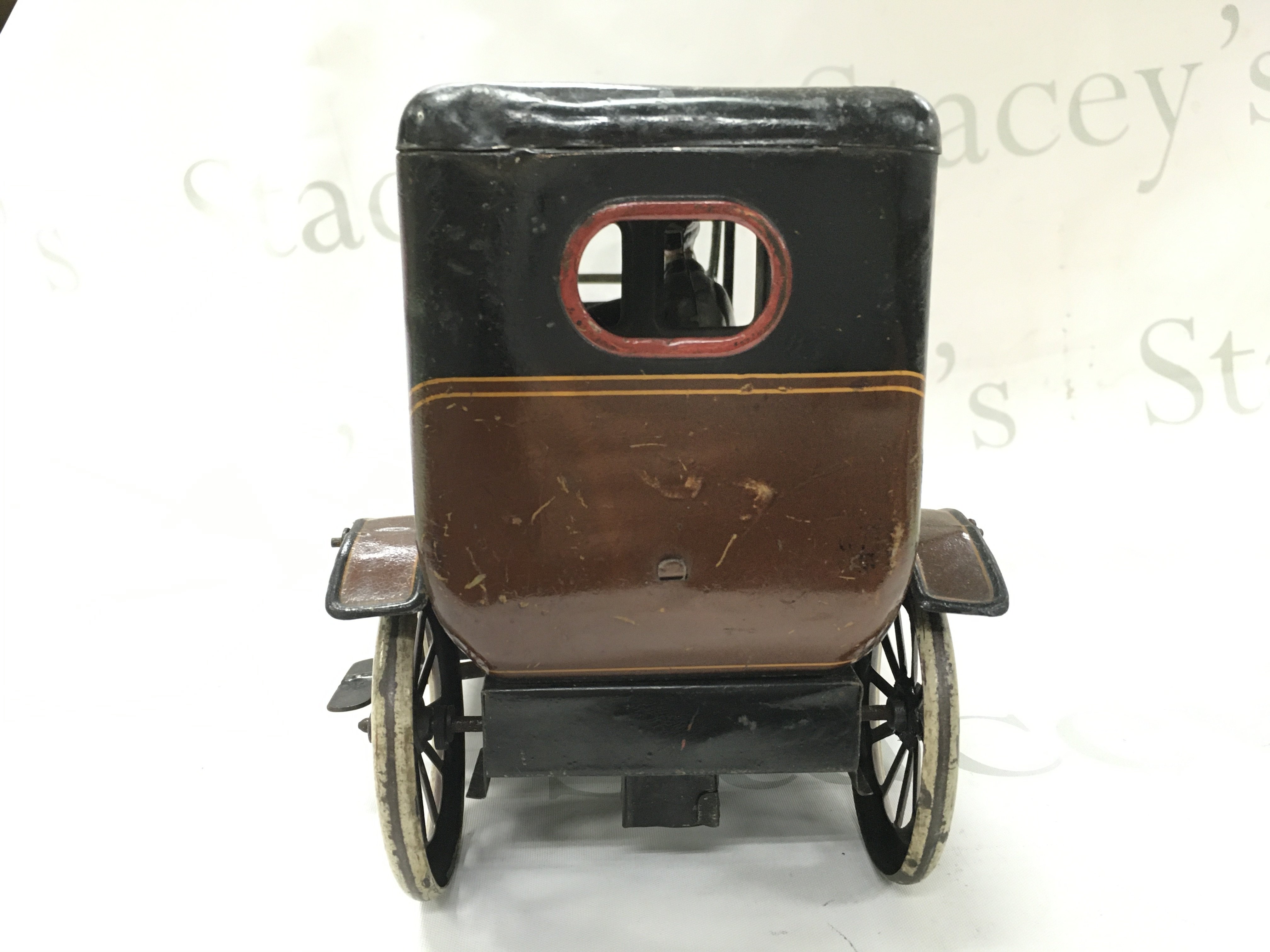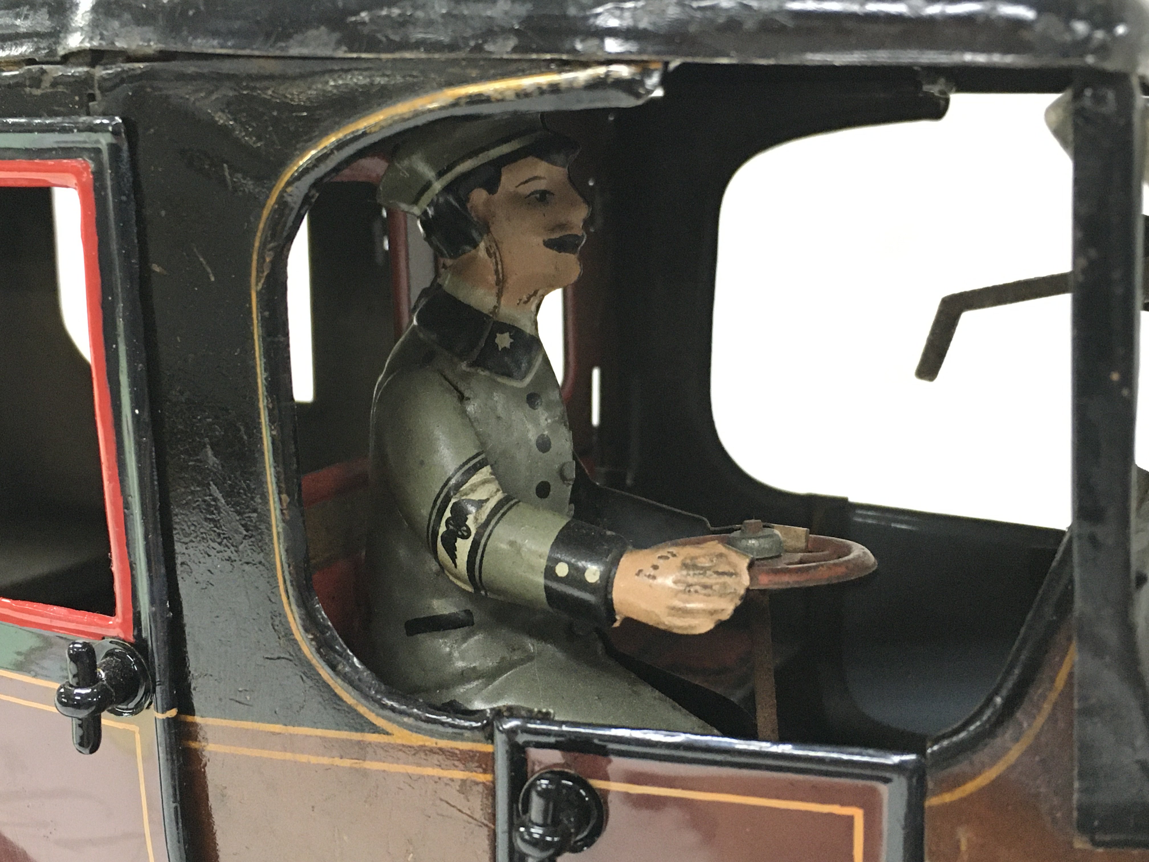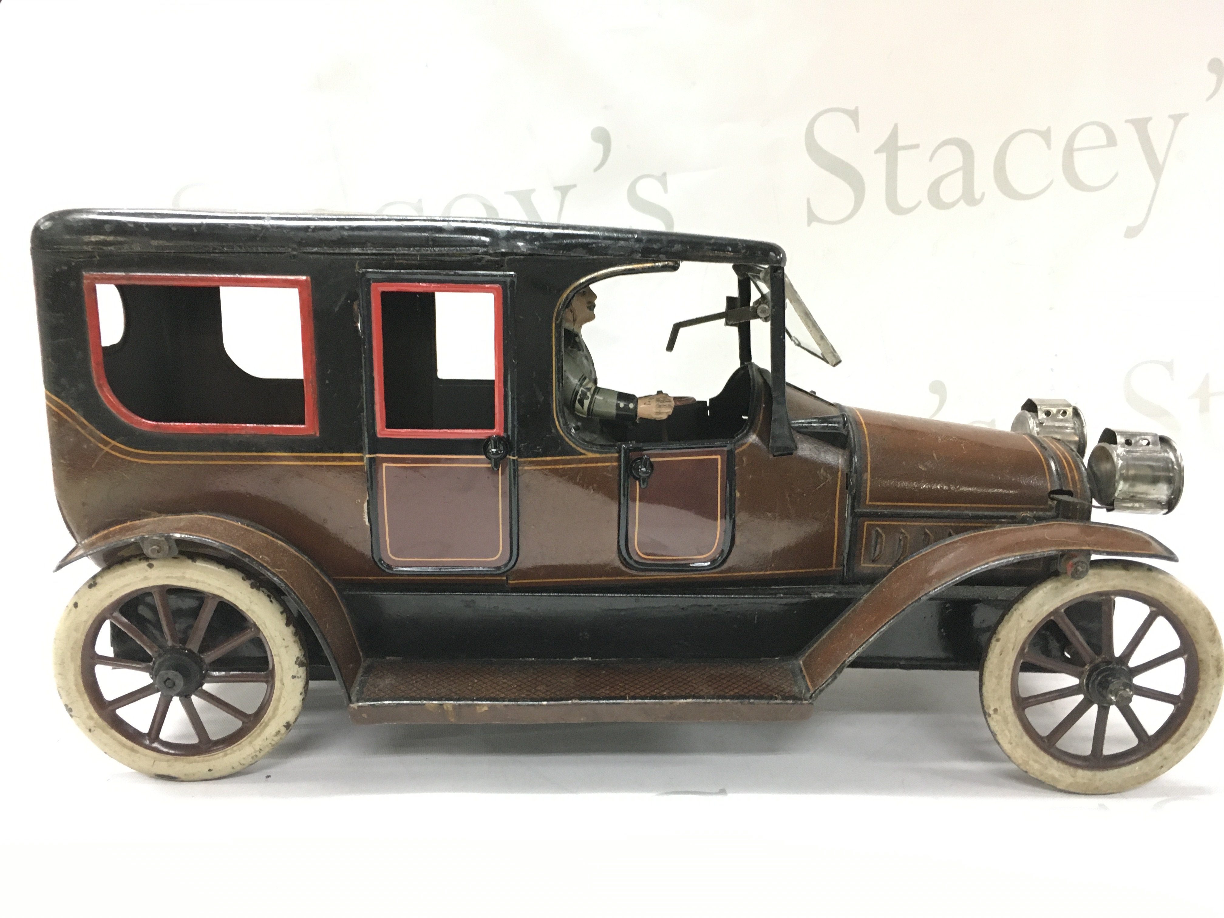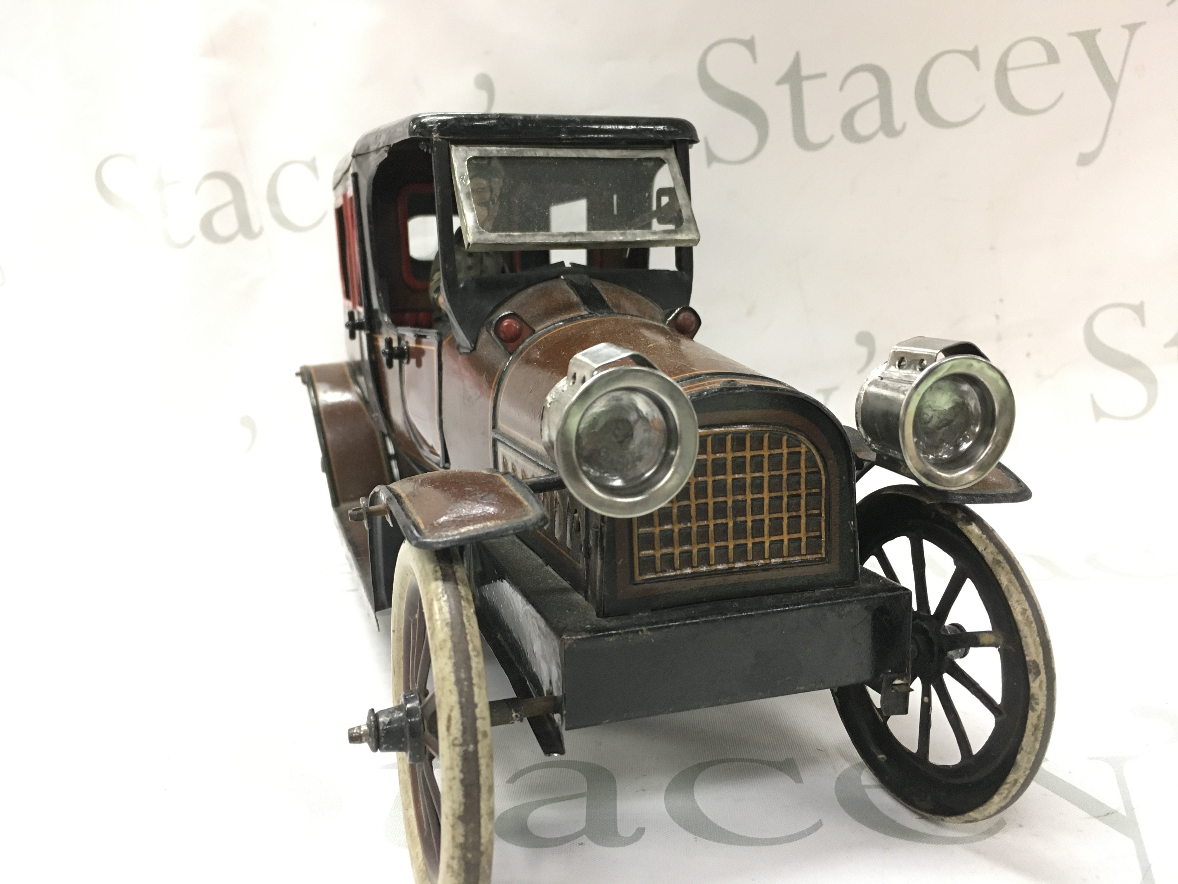 A Vintage clockwork tin model of a 6-light limousine. 35cm long 17.5cm tall Postage cat B