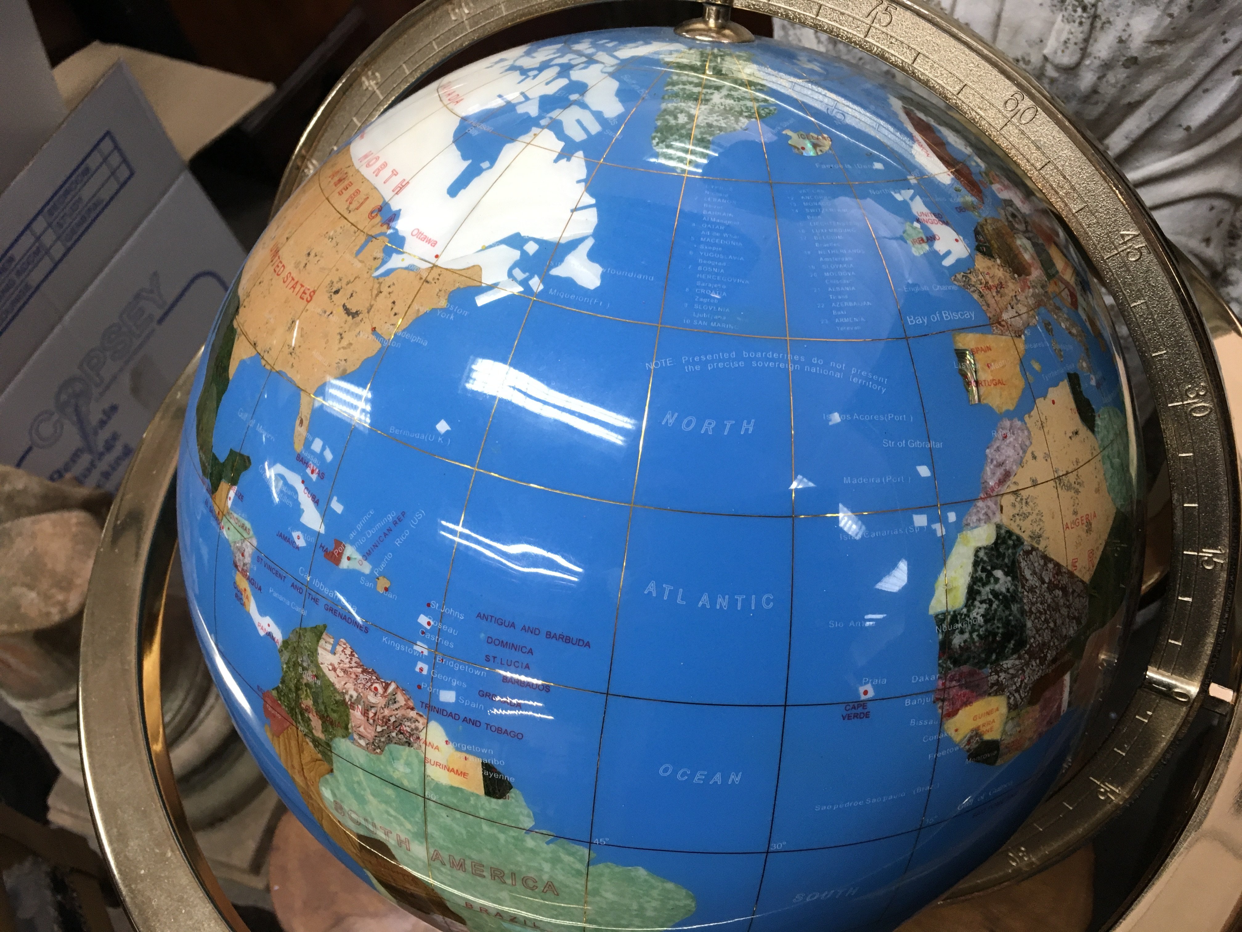 A gemstone globe, 50cm tall approximately . This lot cannot be posted