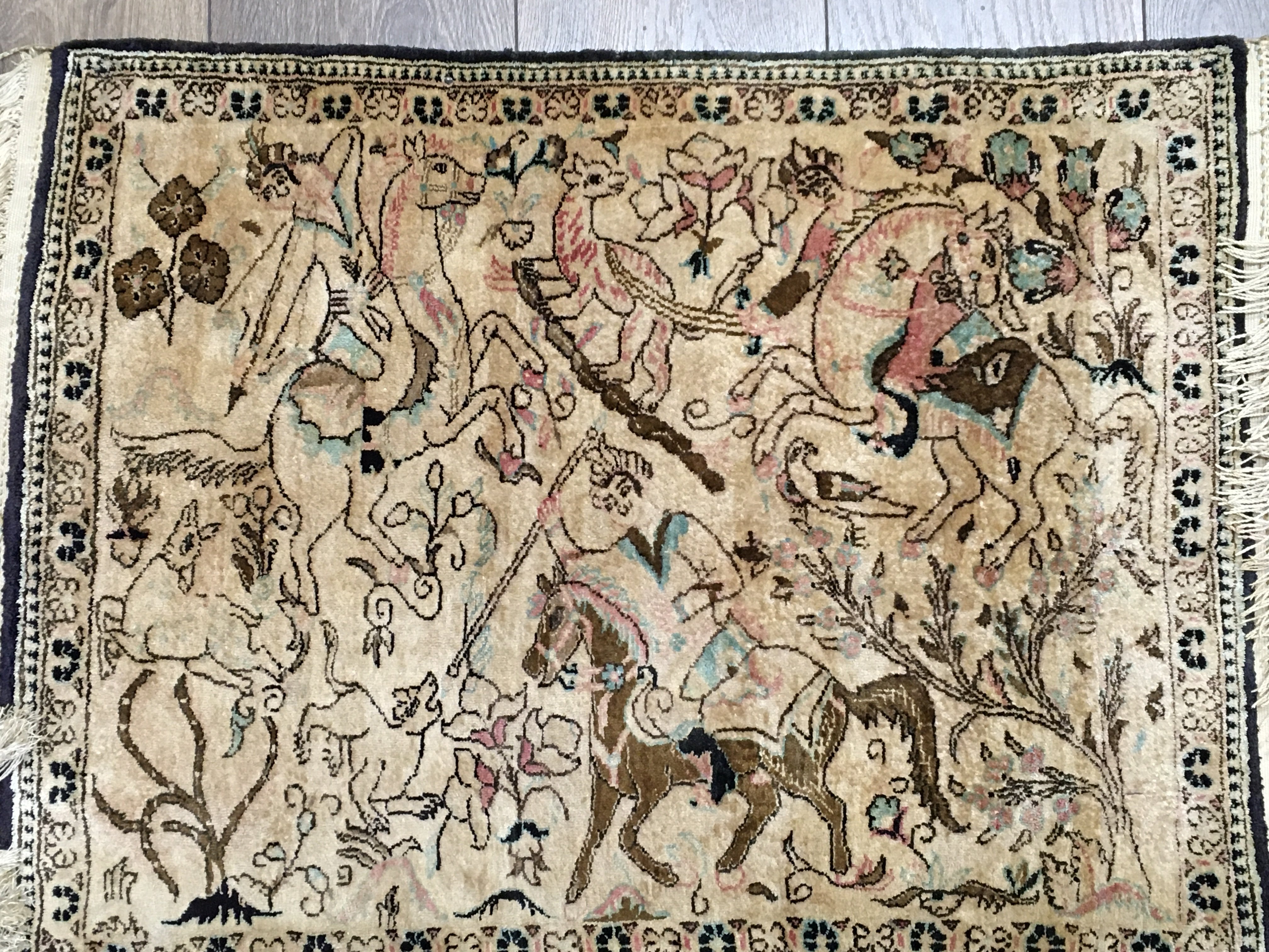 Two small part silk prayer rugs . Dimensions 78x58cm
