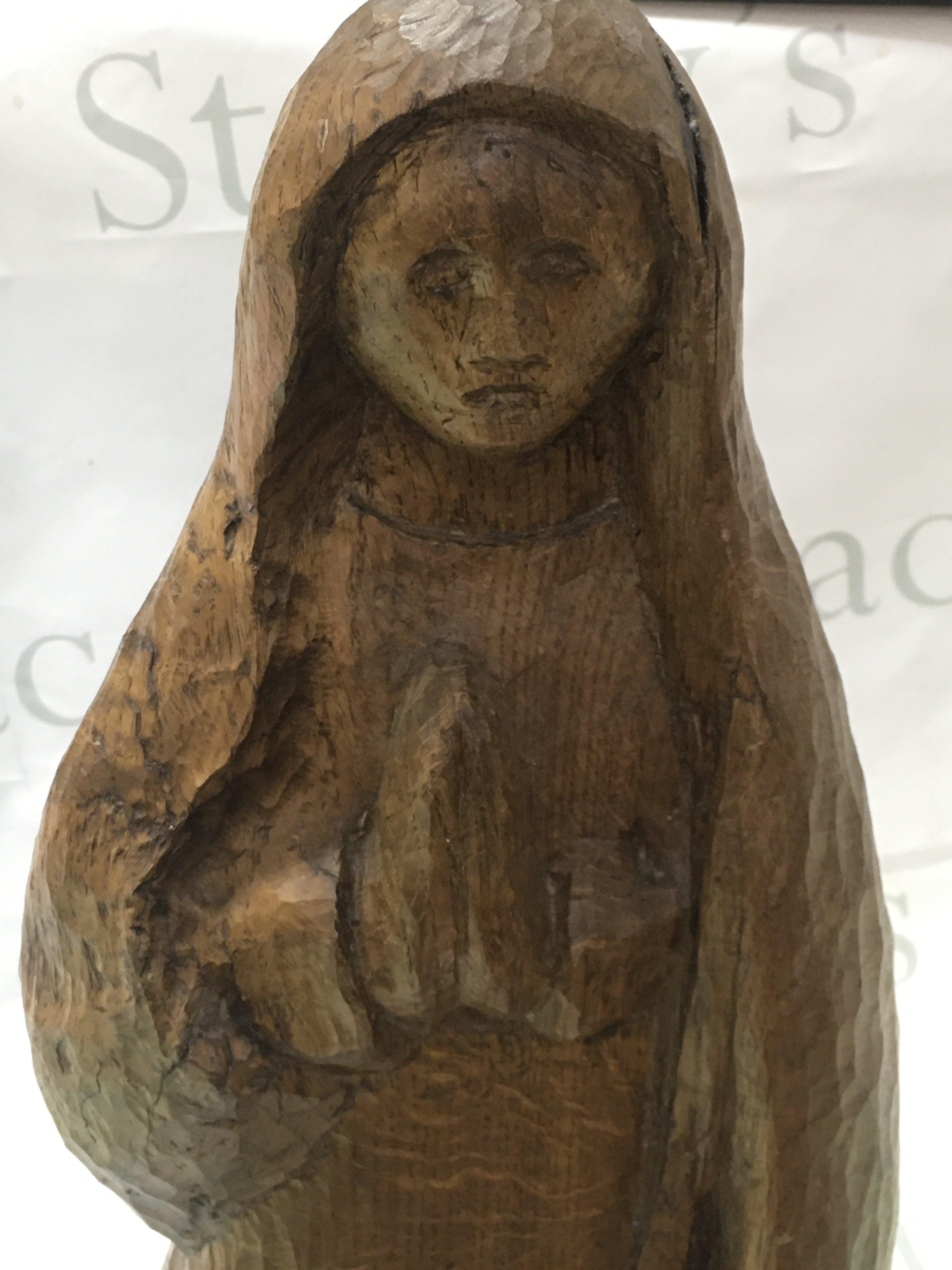 A 19th century oak figure of Mary ,46cm tall . This lot cannot be posted