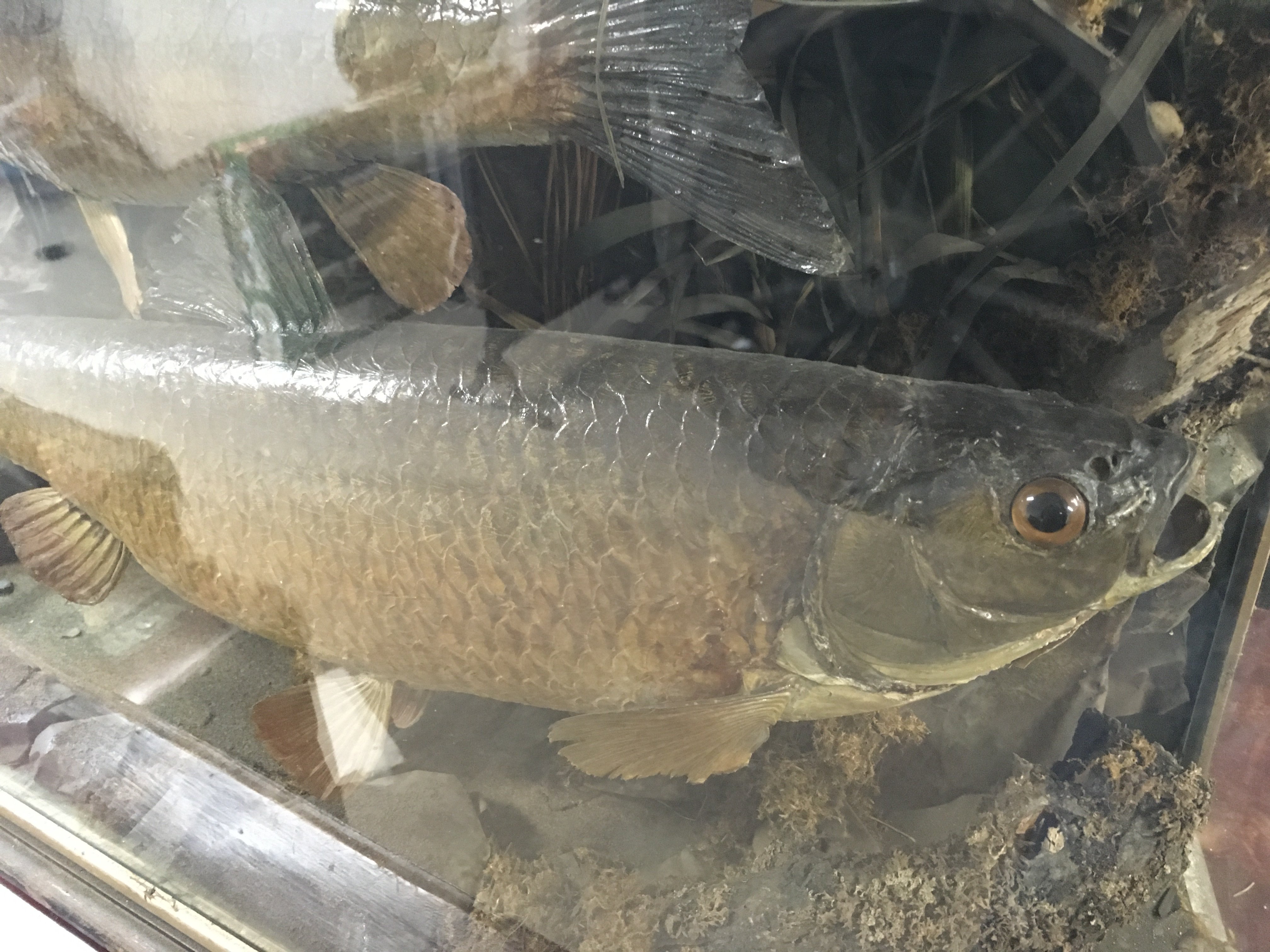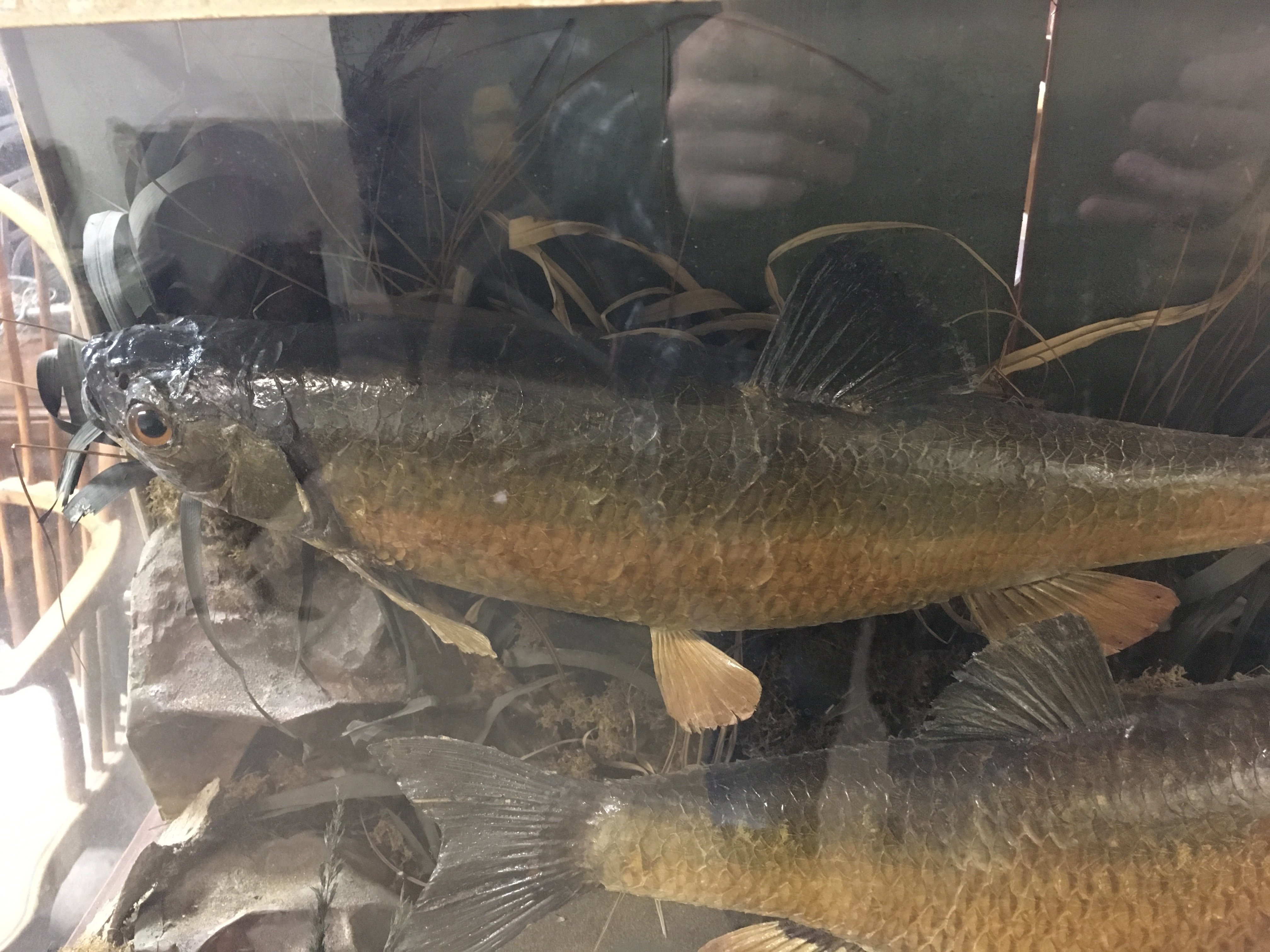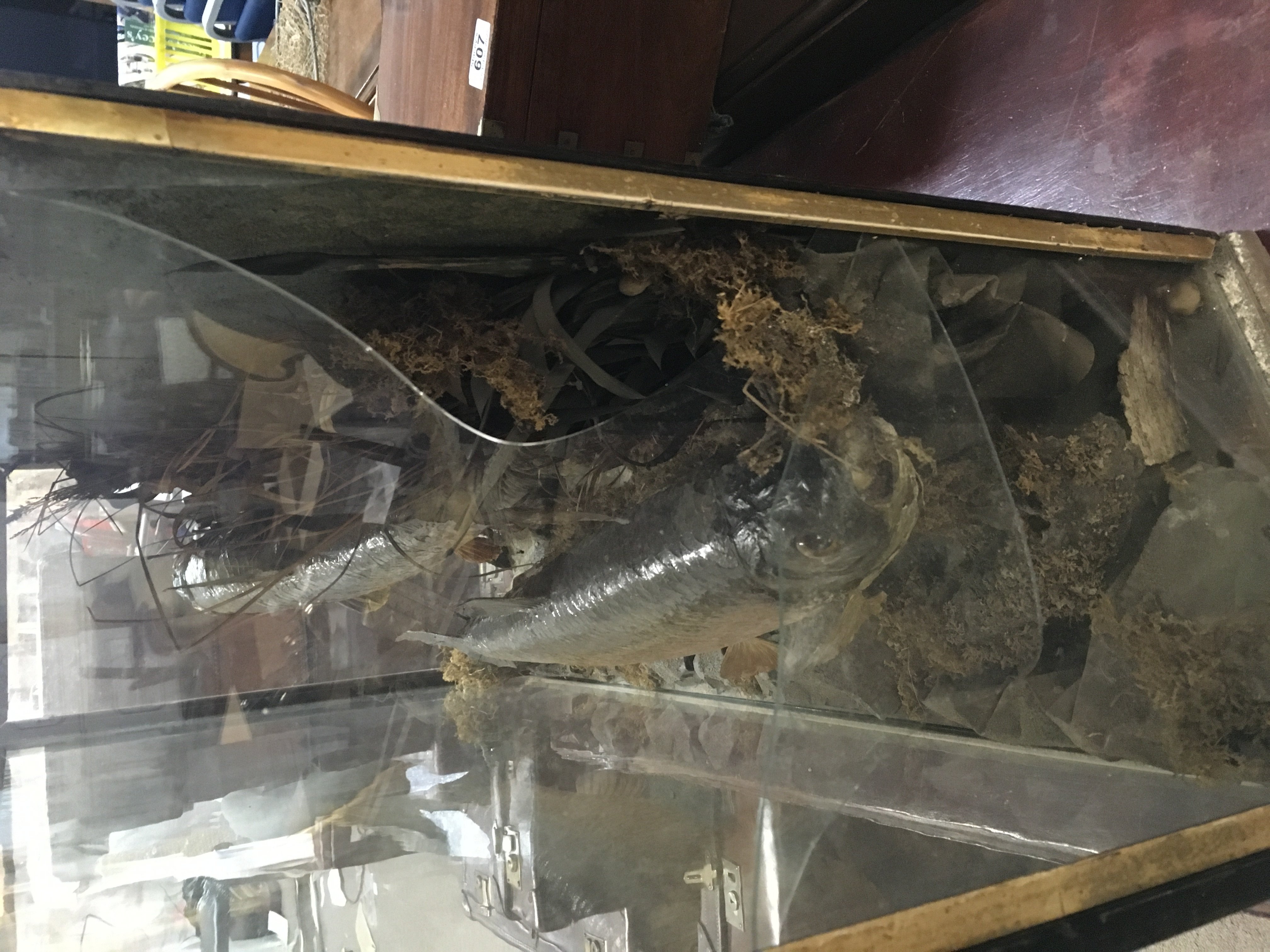 Two taxidermy cased Chubs. Case size 92cm wide 53cm tall. This lot cannot be posted