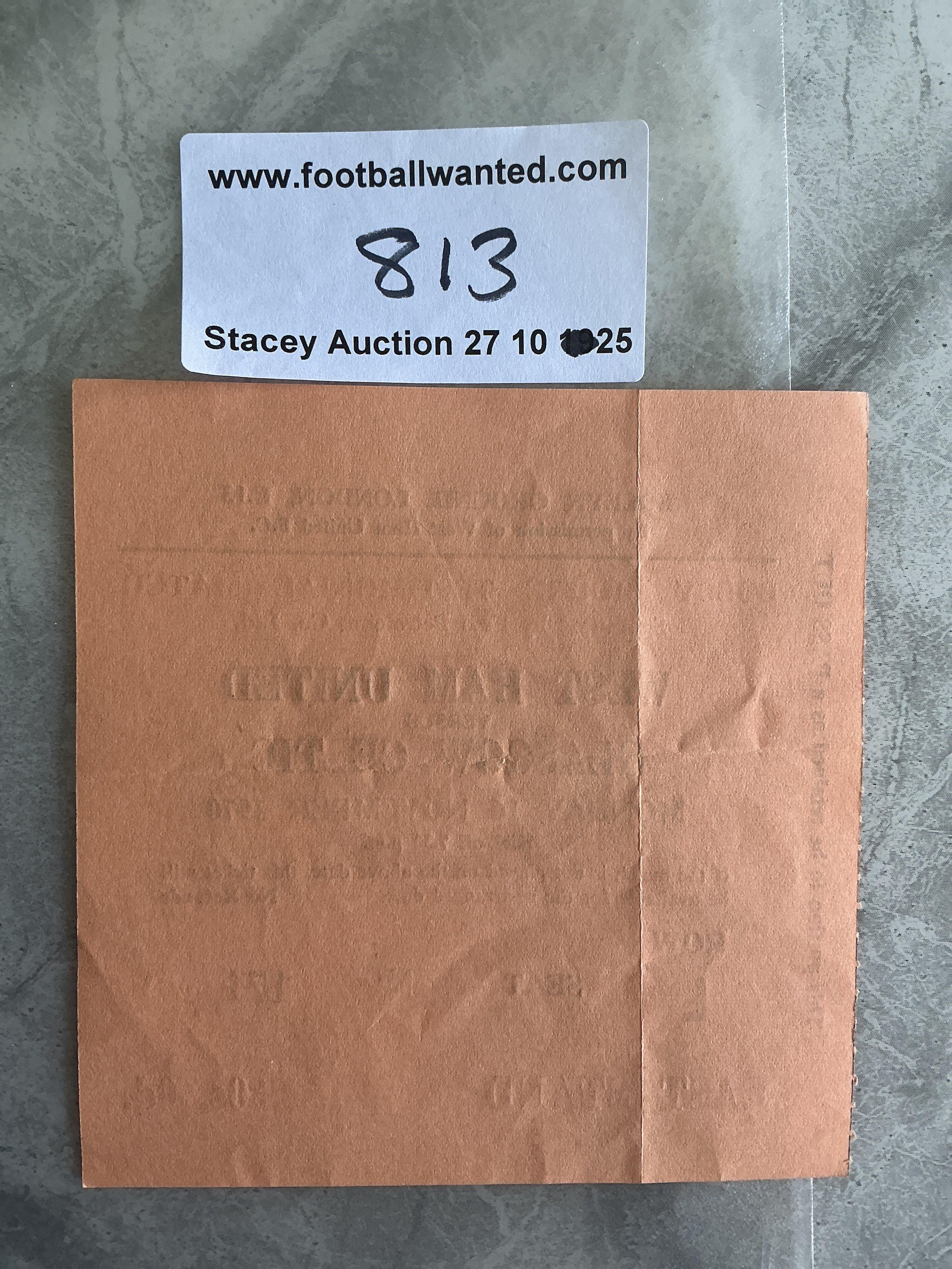 1970 Bobby Moore Testimonial Football Ticket: West Ham v Celtic played at Upton Park. Very good condition with lightest fold.
