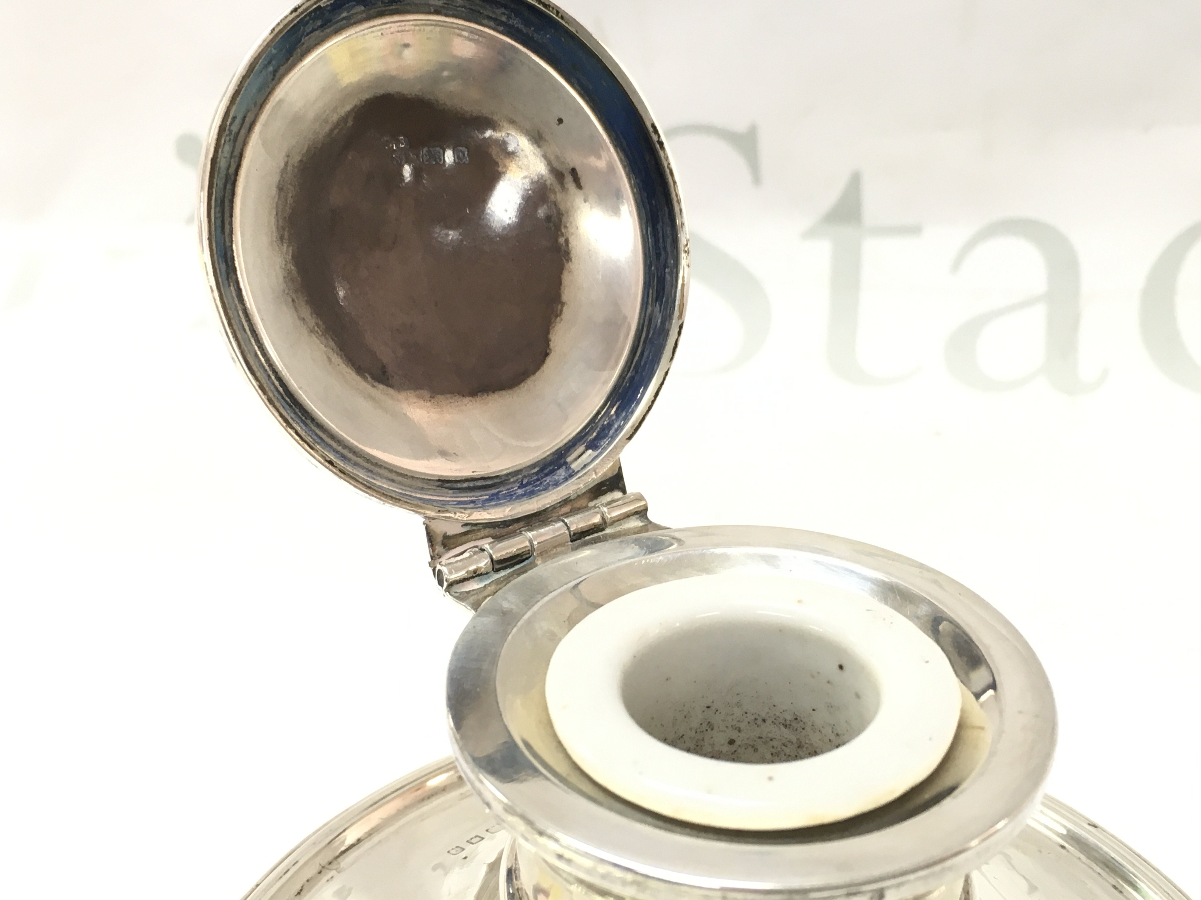 A silver capstan inkwell, 7cm tall. postage catB