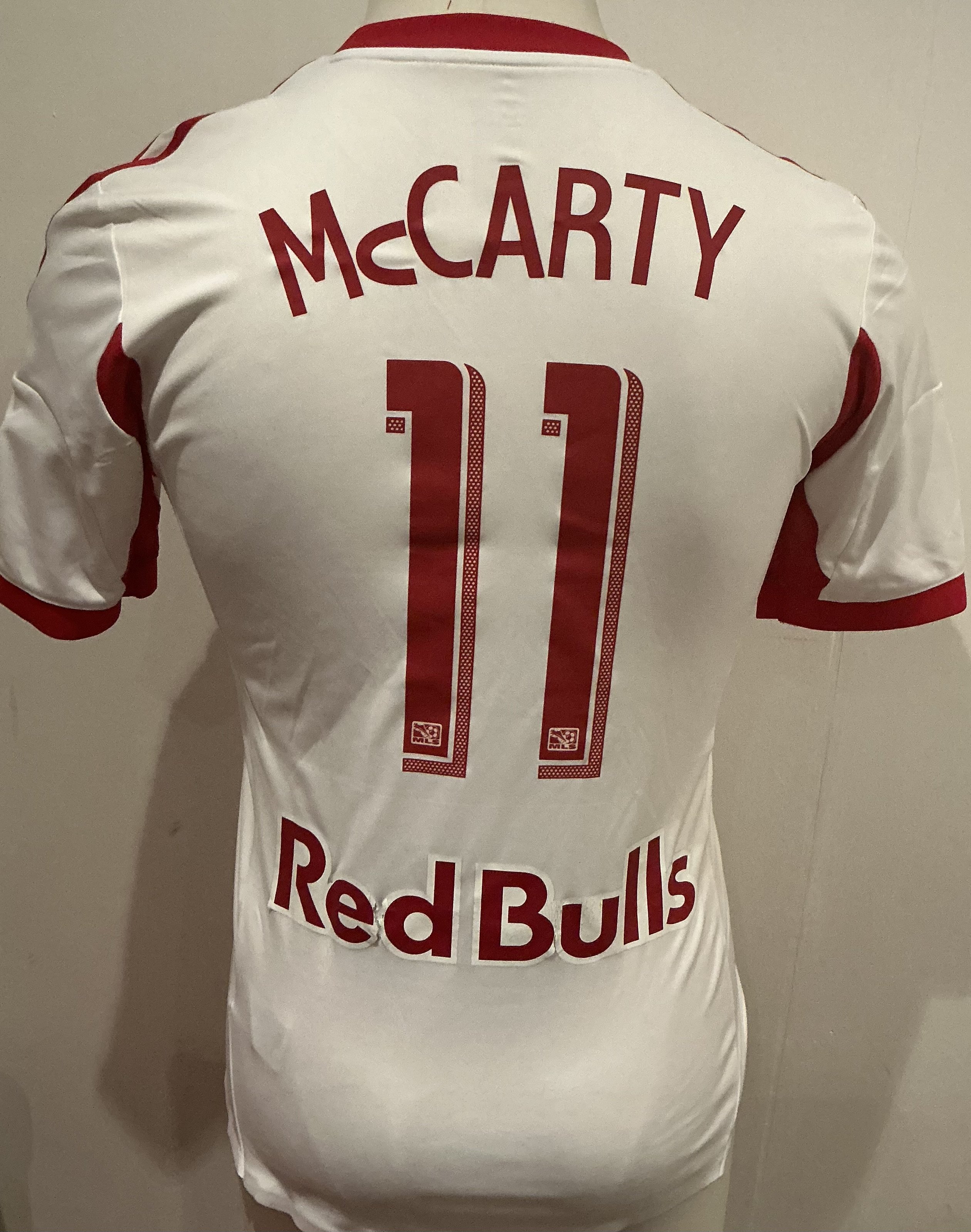 New York Red Bulls 2014 Match Worn Football Shirt v Arsenal: Worn in New York Cup v Arsenal and on the badging that states that, it has small badges of both teams. Short sleeve number 11 with McCarty to rear. Rare shirt.