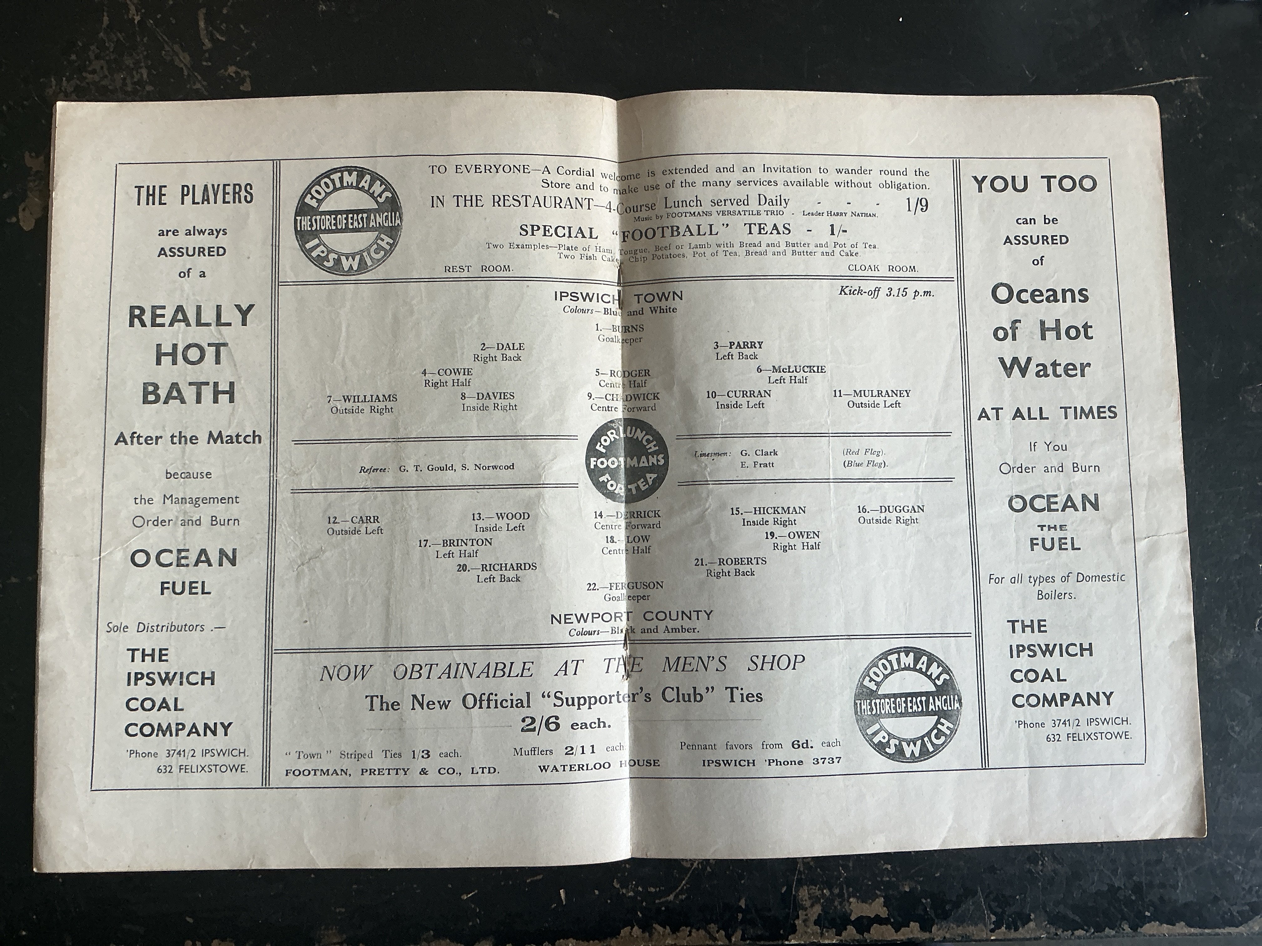 38/39 Ipswich Town v Newport County Football Programme: Very good condition 3rd division programme with no team changes.