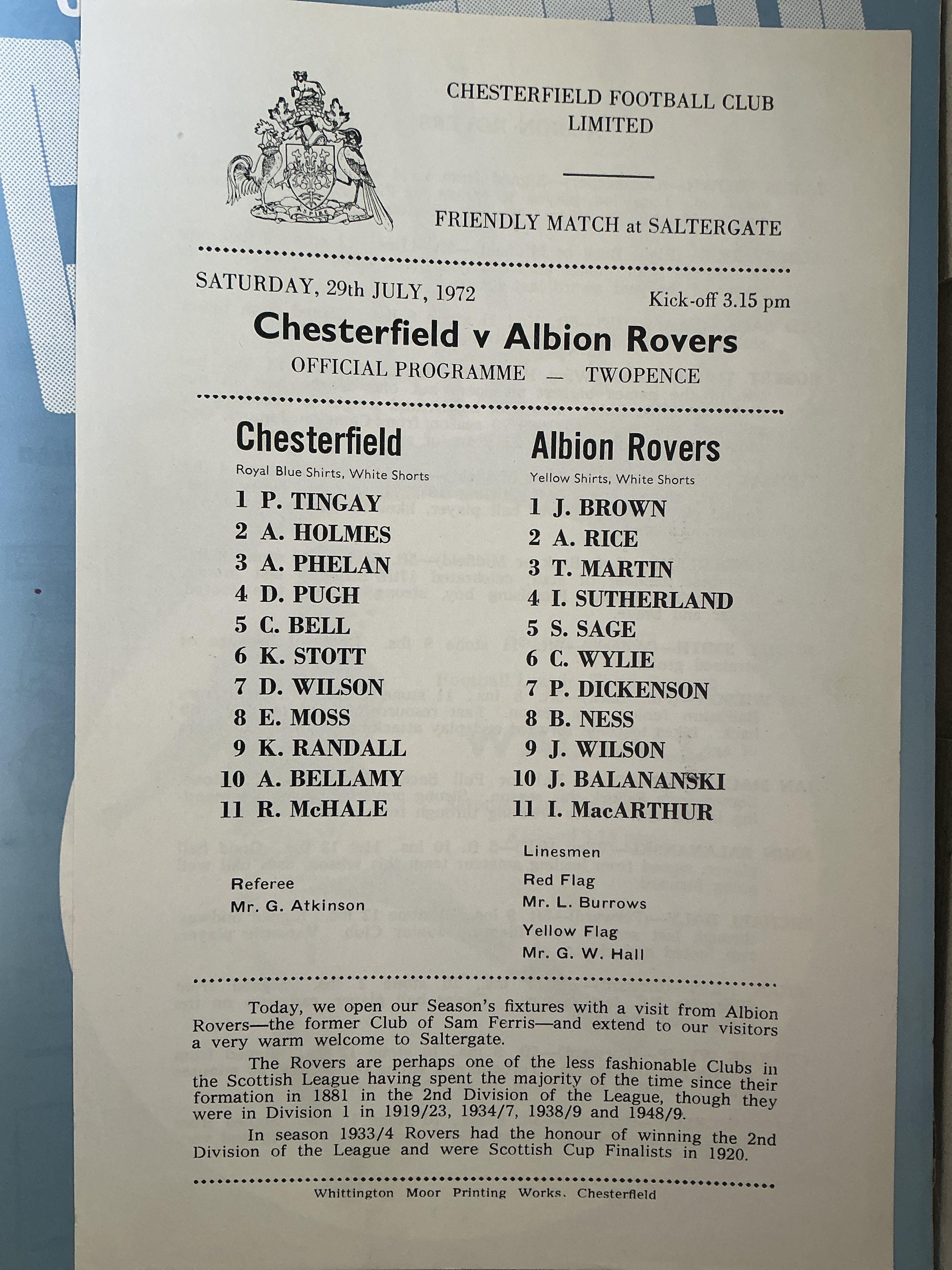 Chesterfield Home Football Programmes: Includes 49/50 Leicester writing to cover, Middlesbrough FA Cup, 50/51 Birmingham, 21 from 56/57 to 59/60. A further 124 spanning the 60s de ade plus some early 70s. Very good with duplication. (est 170)