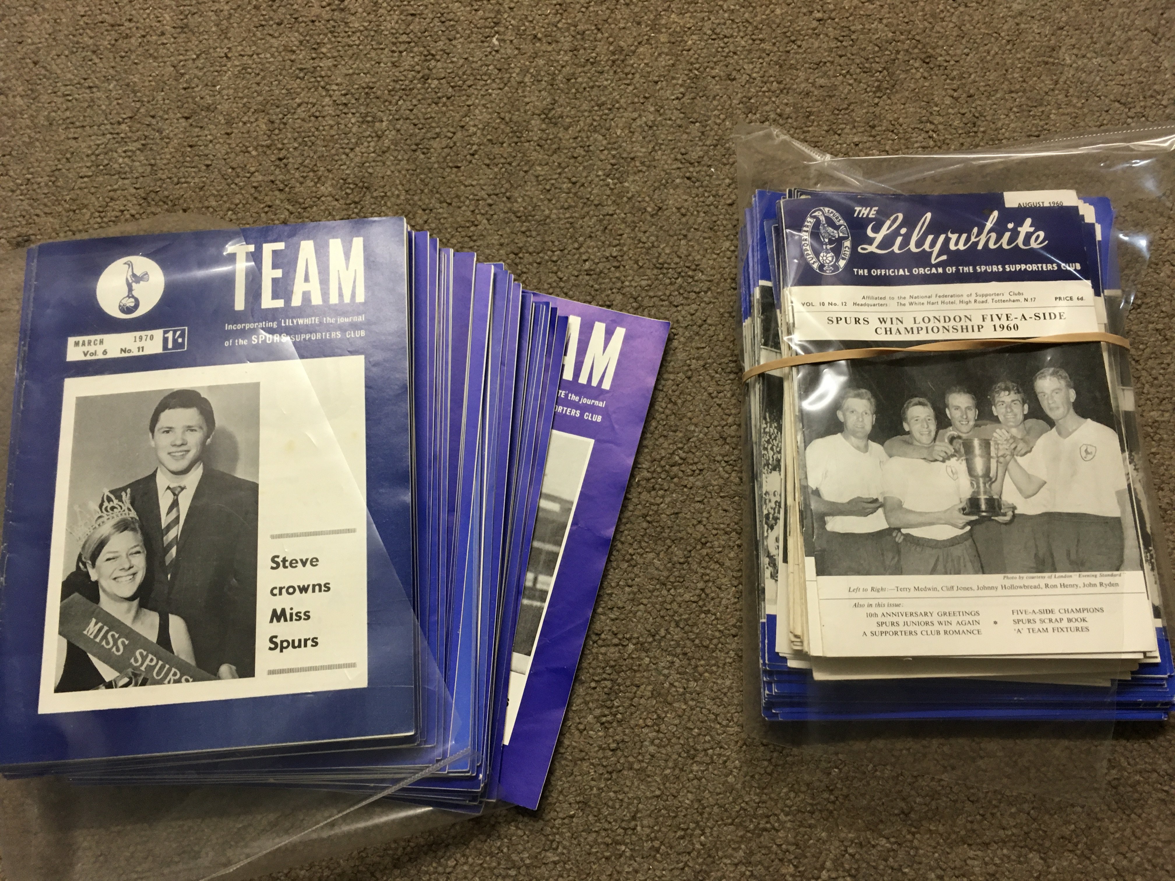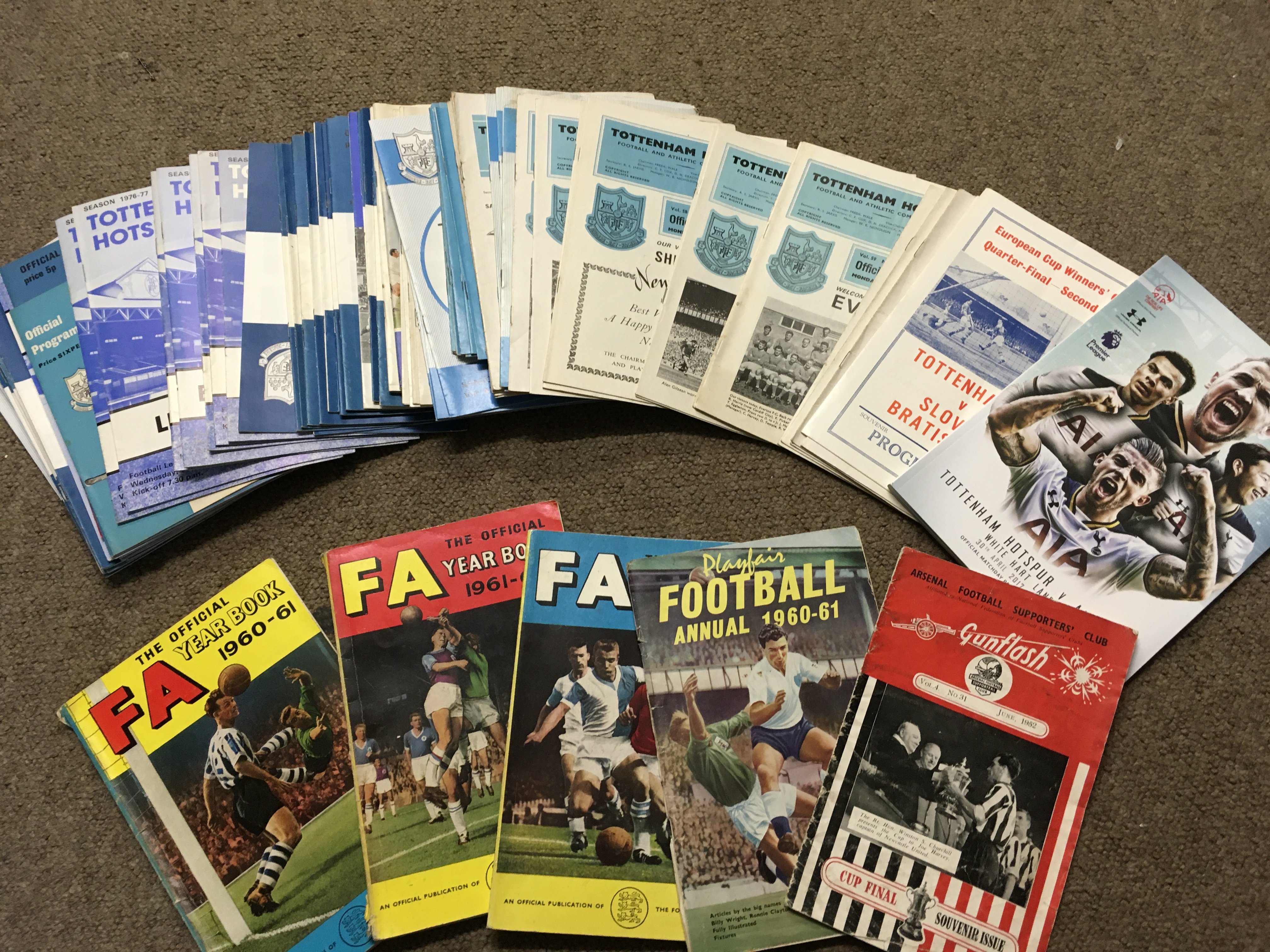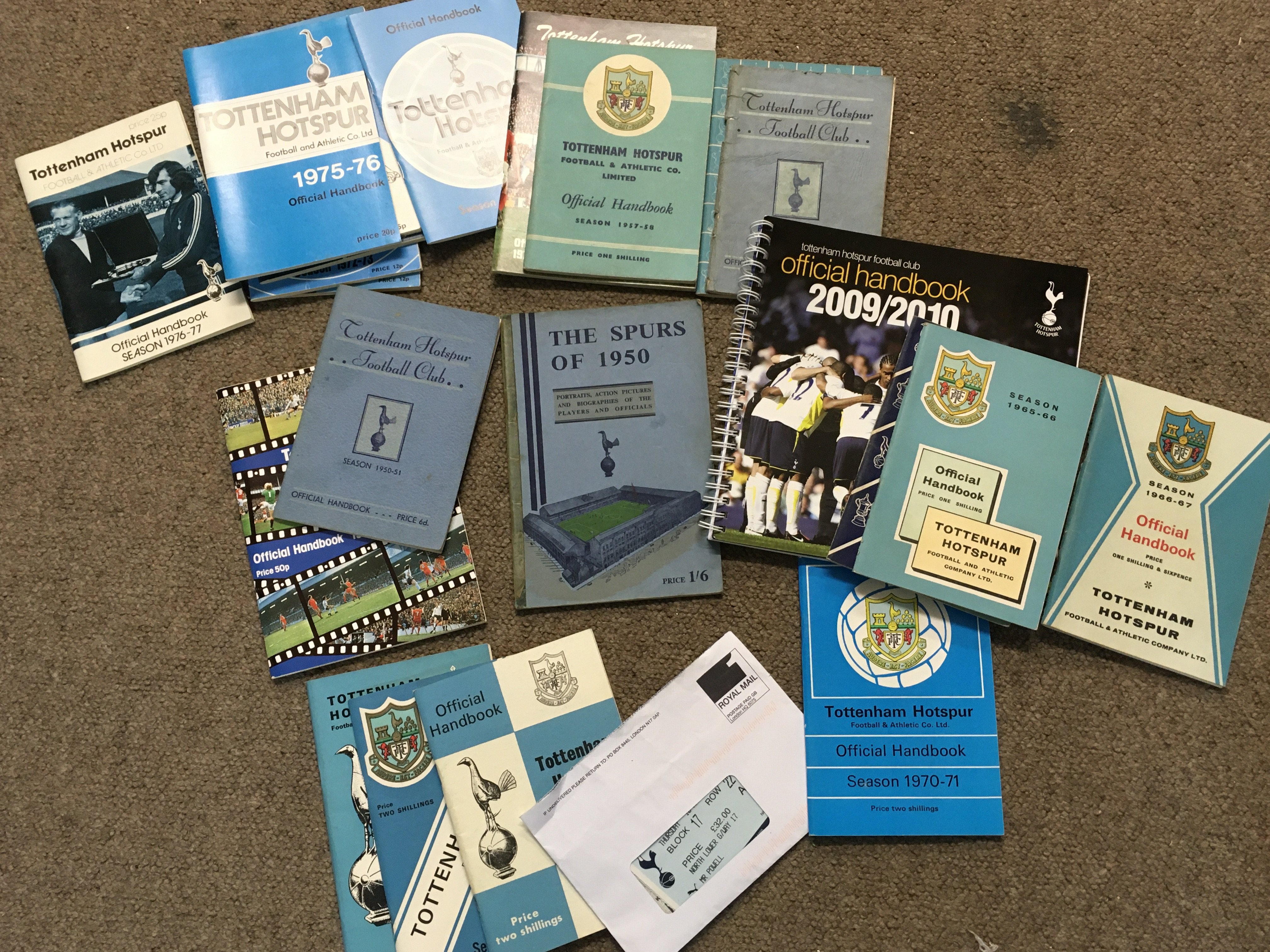 A collection of Tottenham programmes , Lily whites magazines , Hand books and ticket stubs , football yearbooks .postage category C