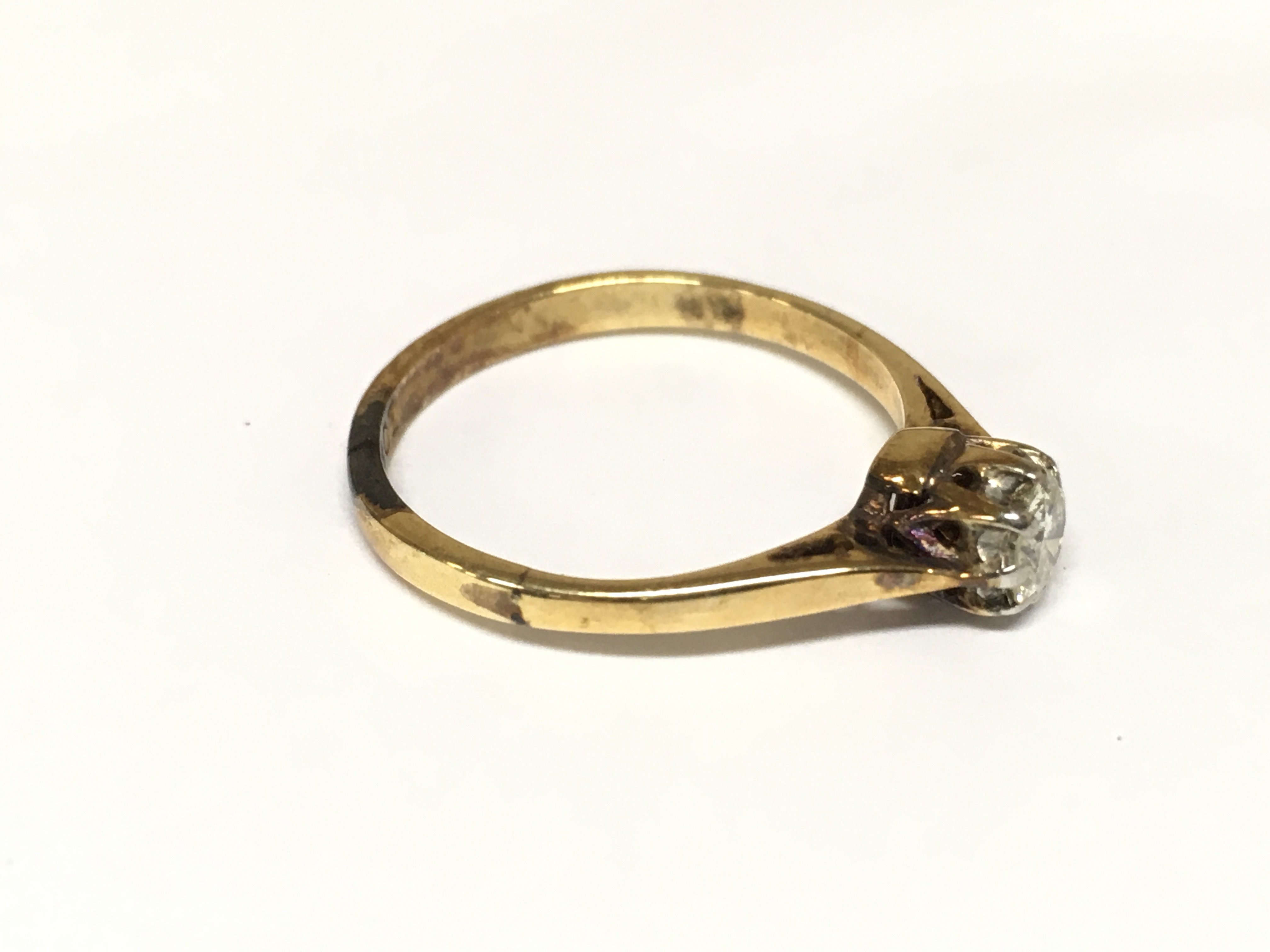 An 18ct gold ring set with diamond. Size L 1/2 and 2.38g