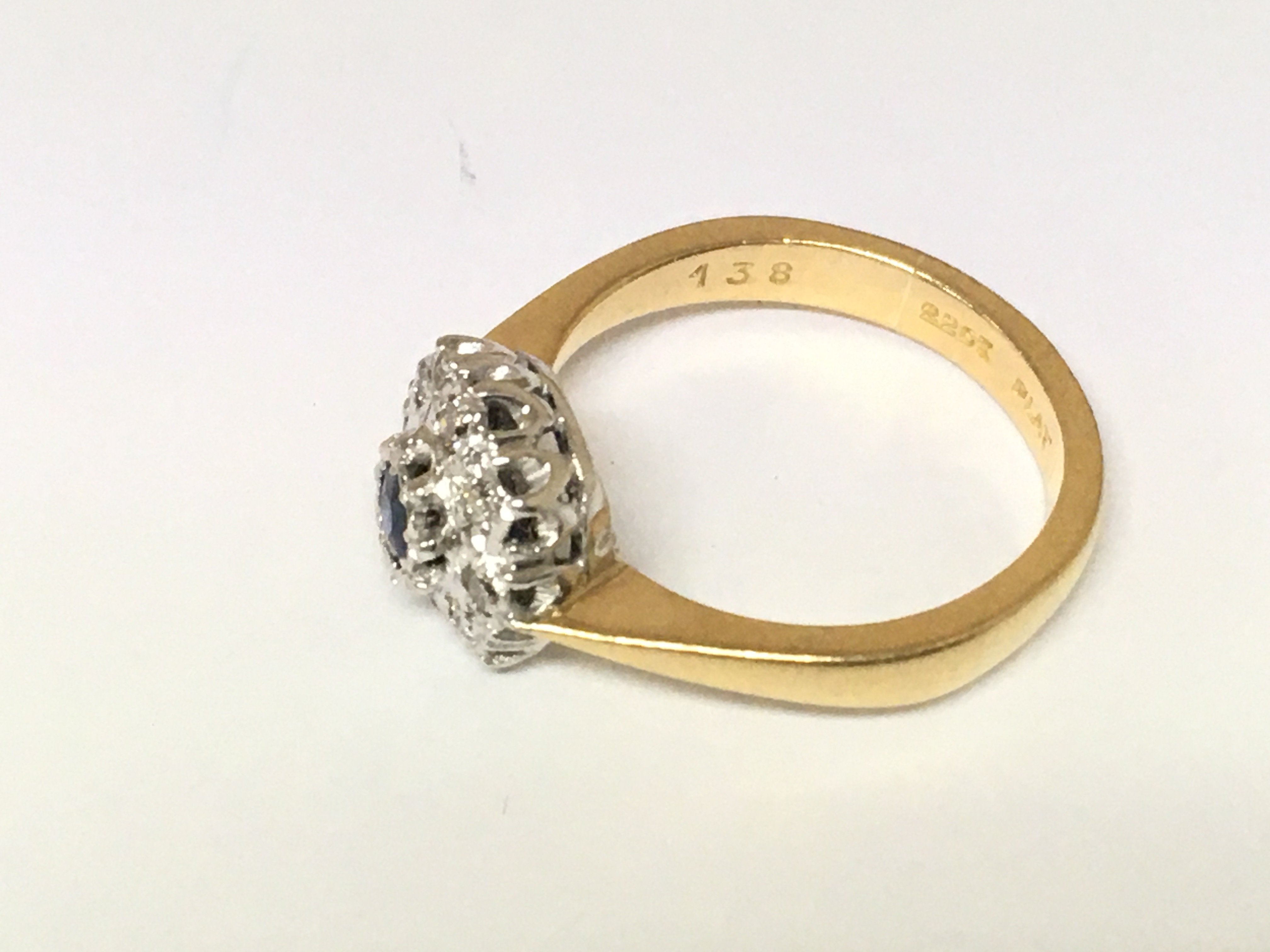A 22ct gold ring set with sapphire and diamonds. Approx Size N and 6g