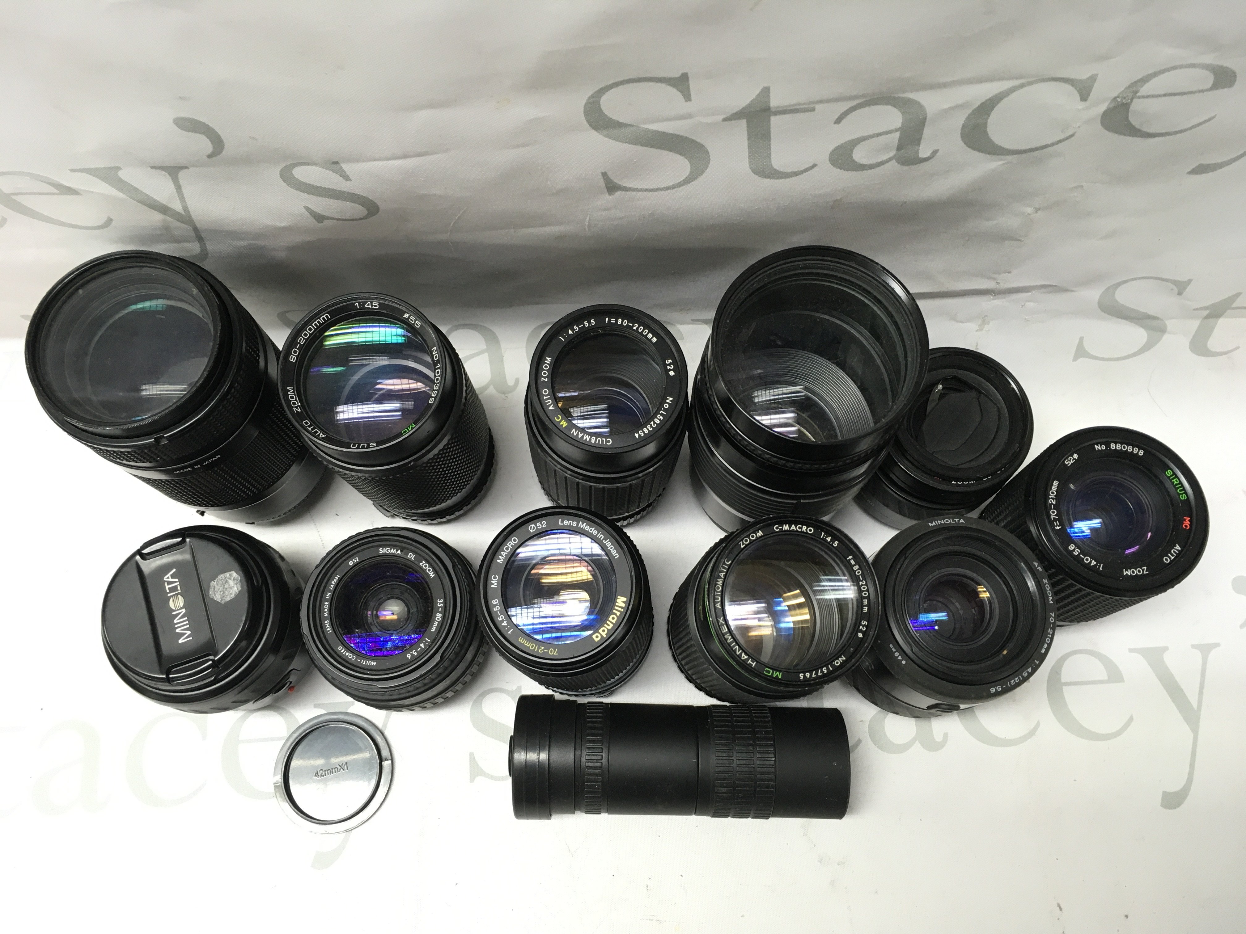A Collection of various cameras lenses including Nikon , Sigma, Miranda , Hanimex etc . This lot cannot be posted