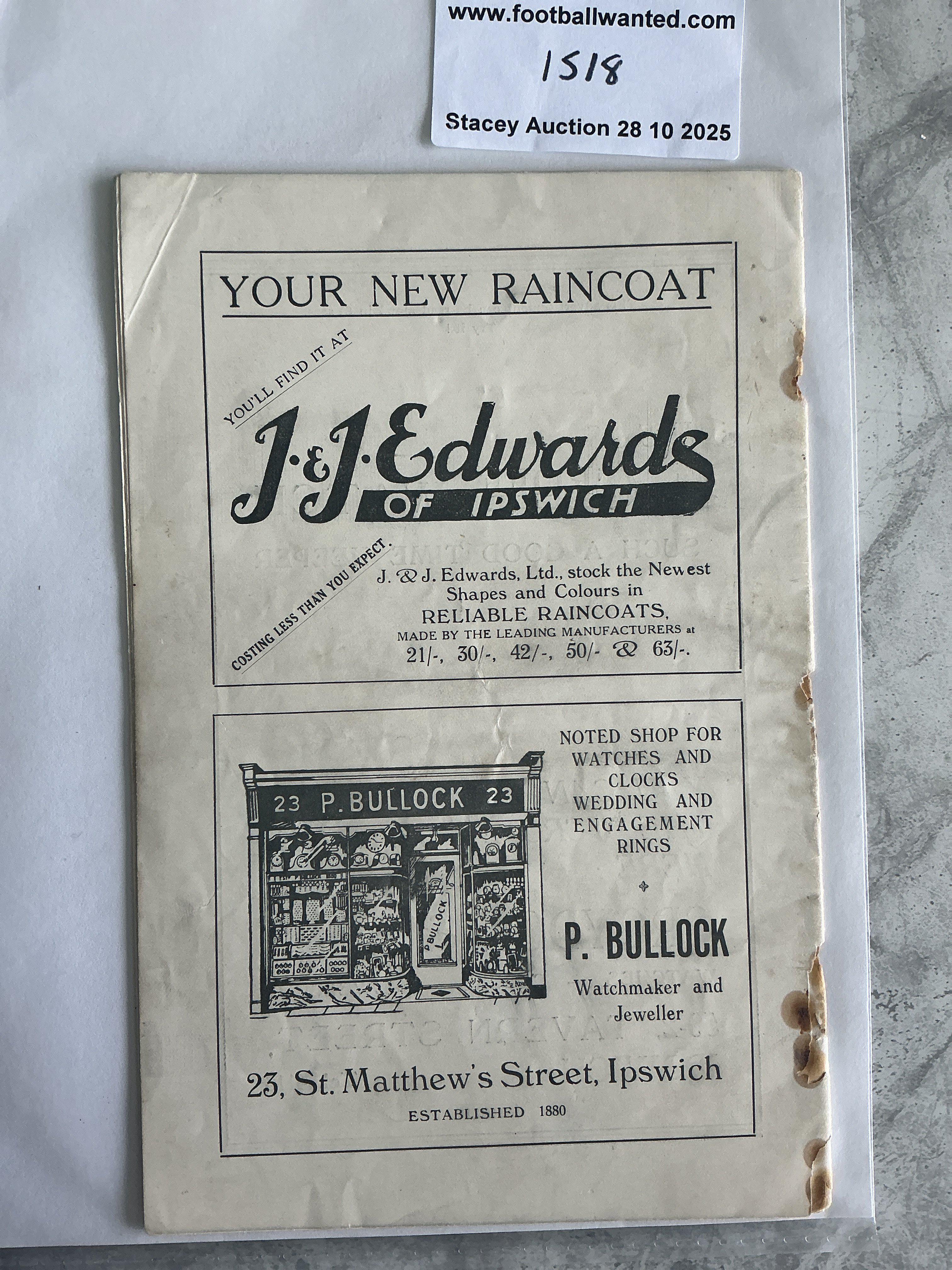 36/37 Ipswich Town v Eastern Counties FA Cup Football Programme: Staples have rusted away leaving holes and marks. Spine is nearly completely split. Programme is complete with no other faults so overall fair. FA Cup preliminary round.