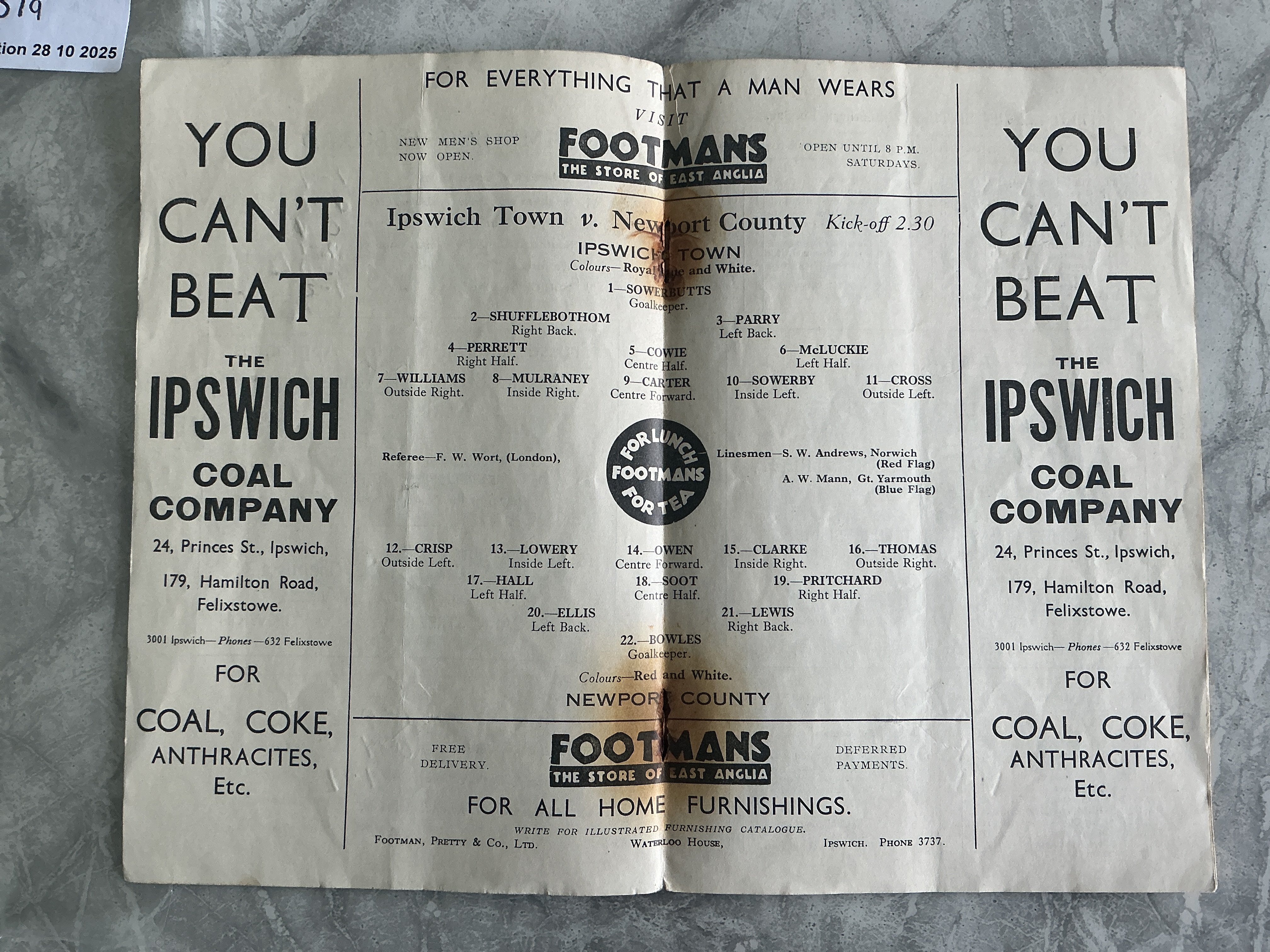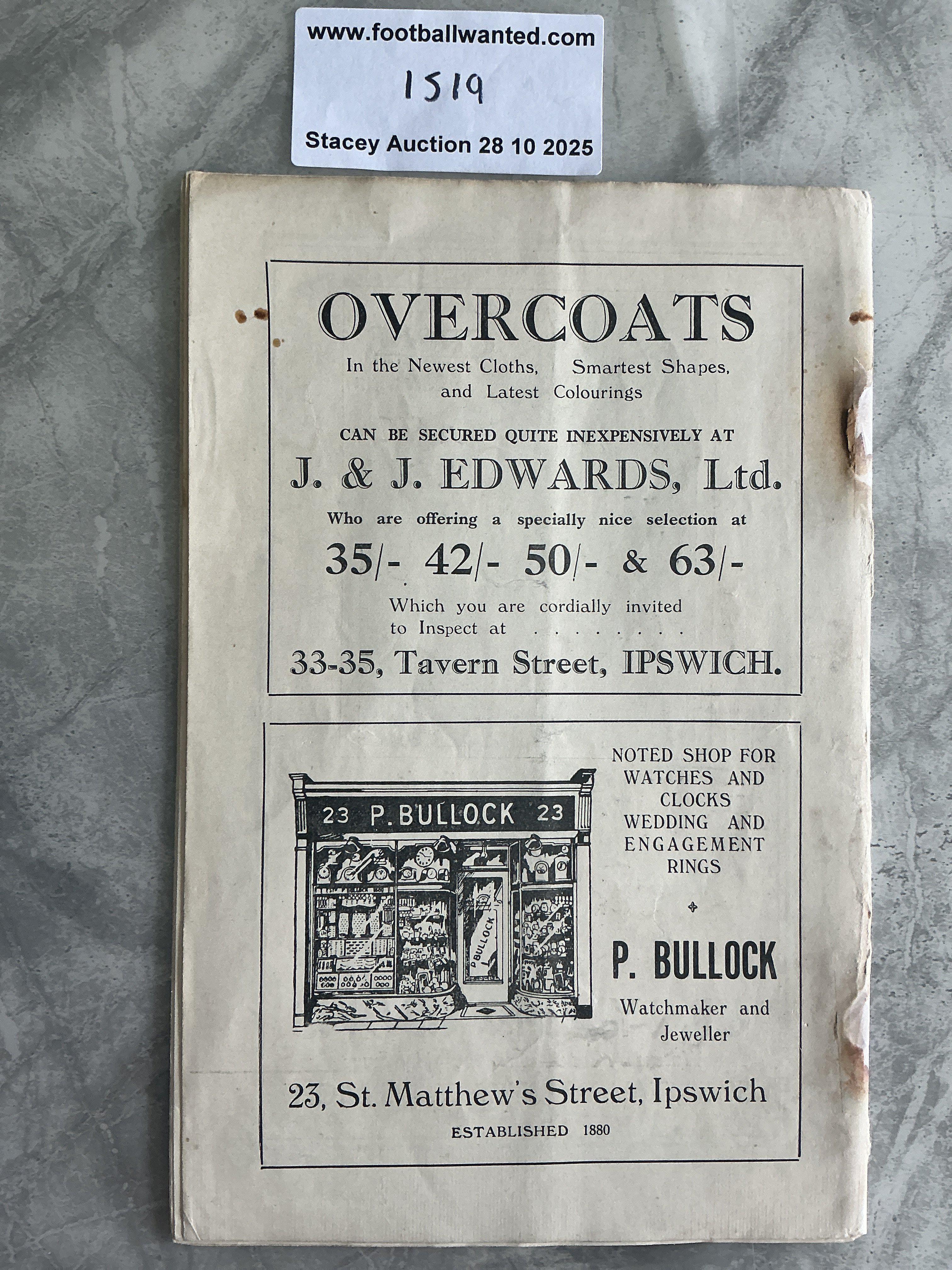 36/37 Ipswich Town v Newport County Football Programme: Staples have rusted away leaving holes and marks even after repair. Southern League programme is complete with no other faults.