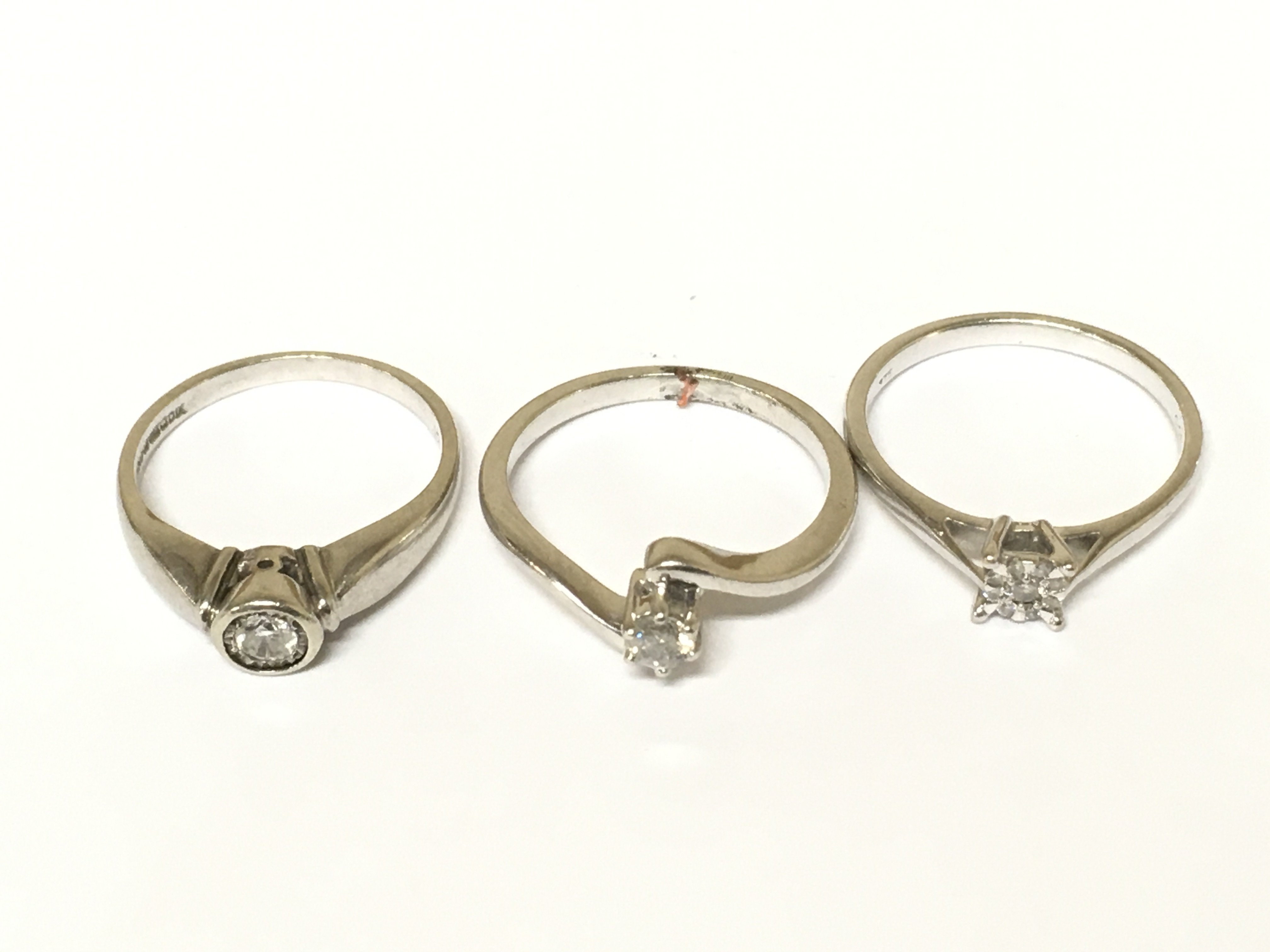 Three 9ct white gold diamond rings. Approximately 6.9g and sizes L and N