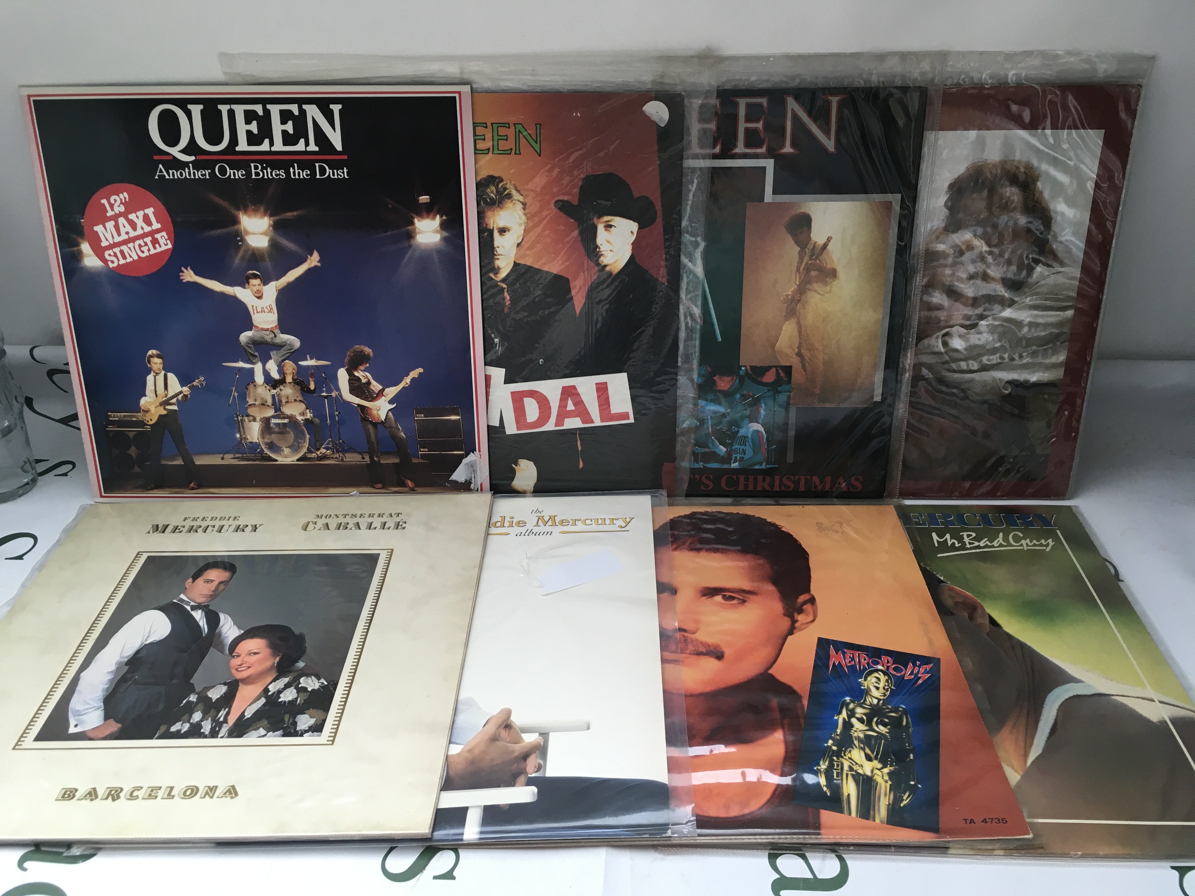 Fifteen Queen and related 12" and 7" singles including a Great Pretender shaped disc, Barcelona picture disc and others.