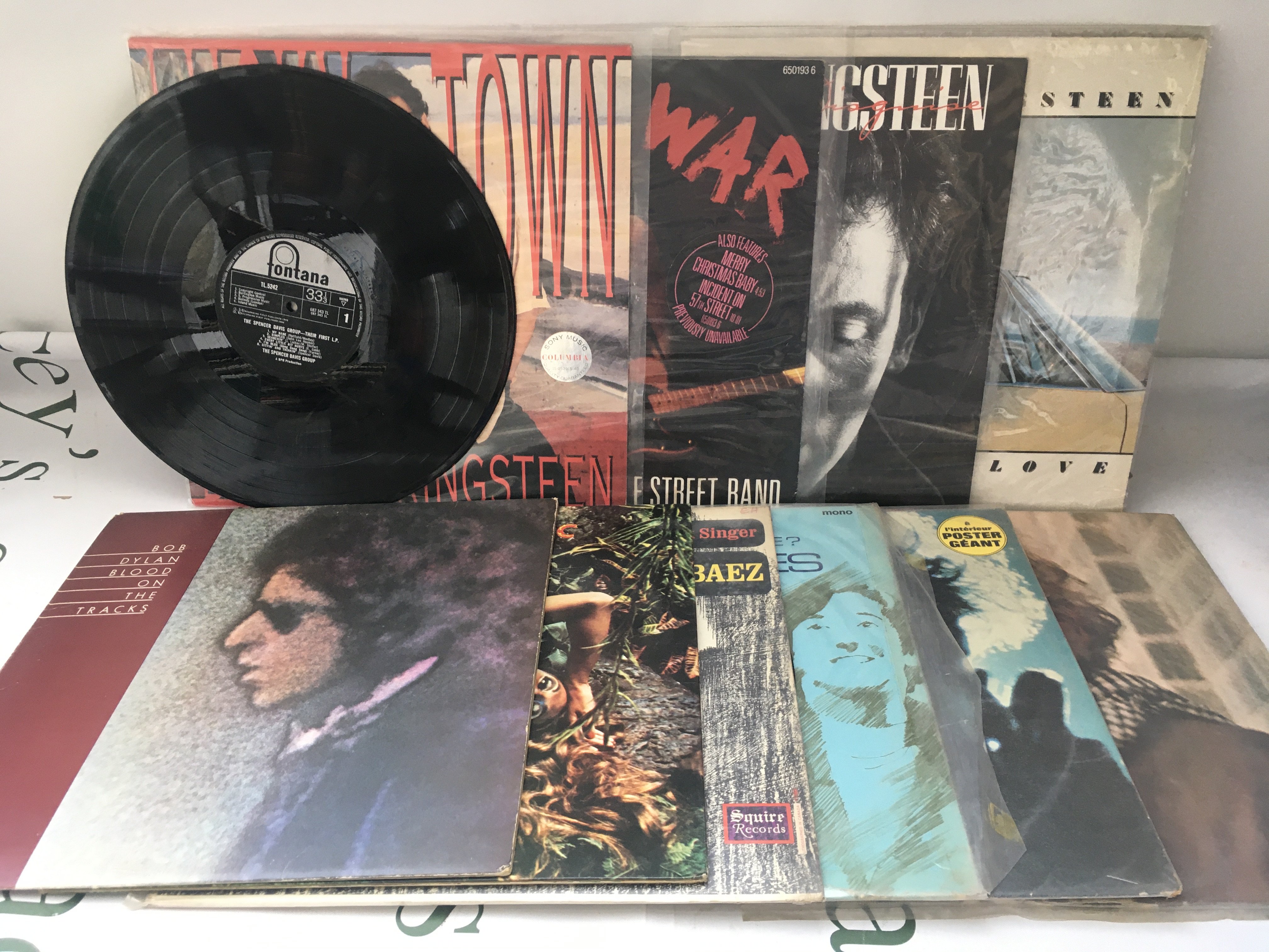 Two bags containing 21 rock and pop LPs and 12" singles by various artists including The Rolling Stones, The Kinks, The Ramones and others.