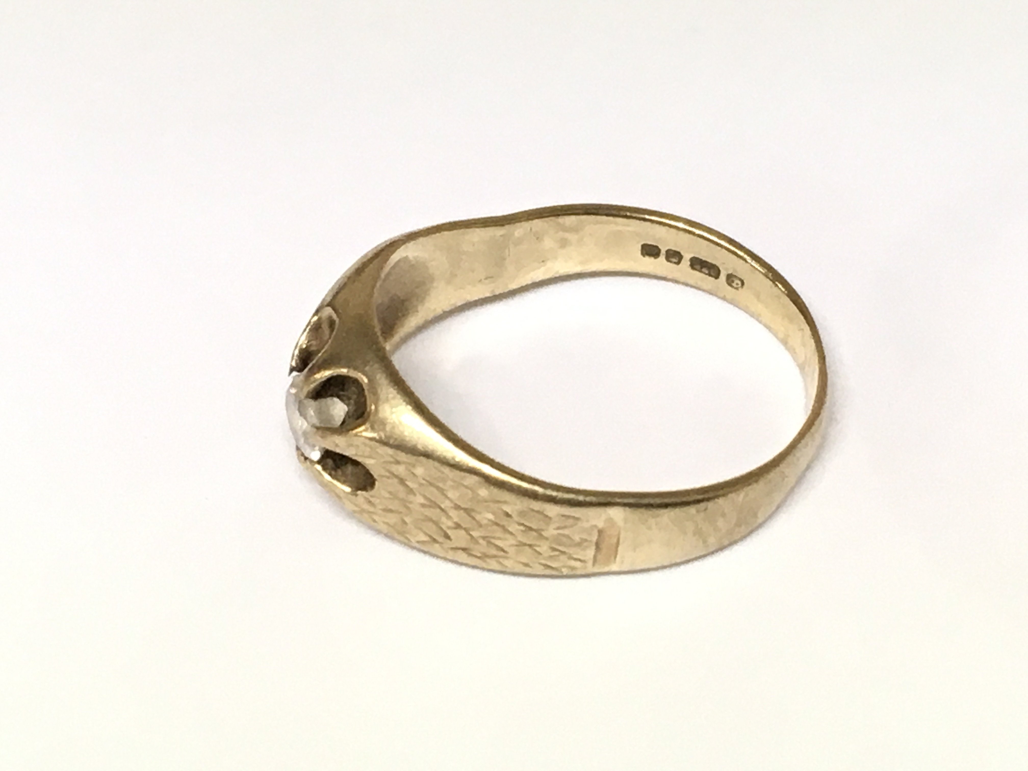 9ct gold gents gypsy style diamond ring. Size M and 3.5g