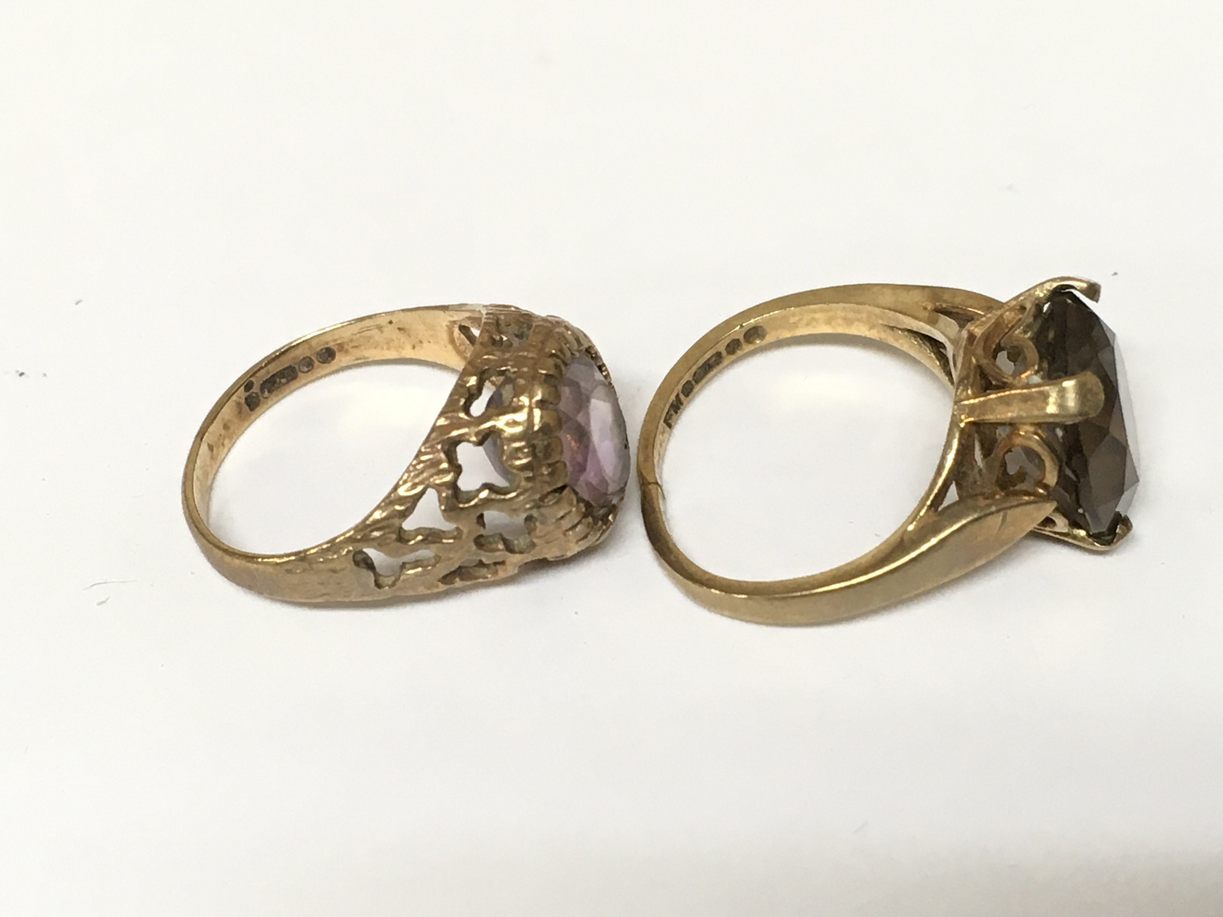 Two 9ct rings one set with quartz. Size G and J total weight 5.70g