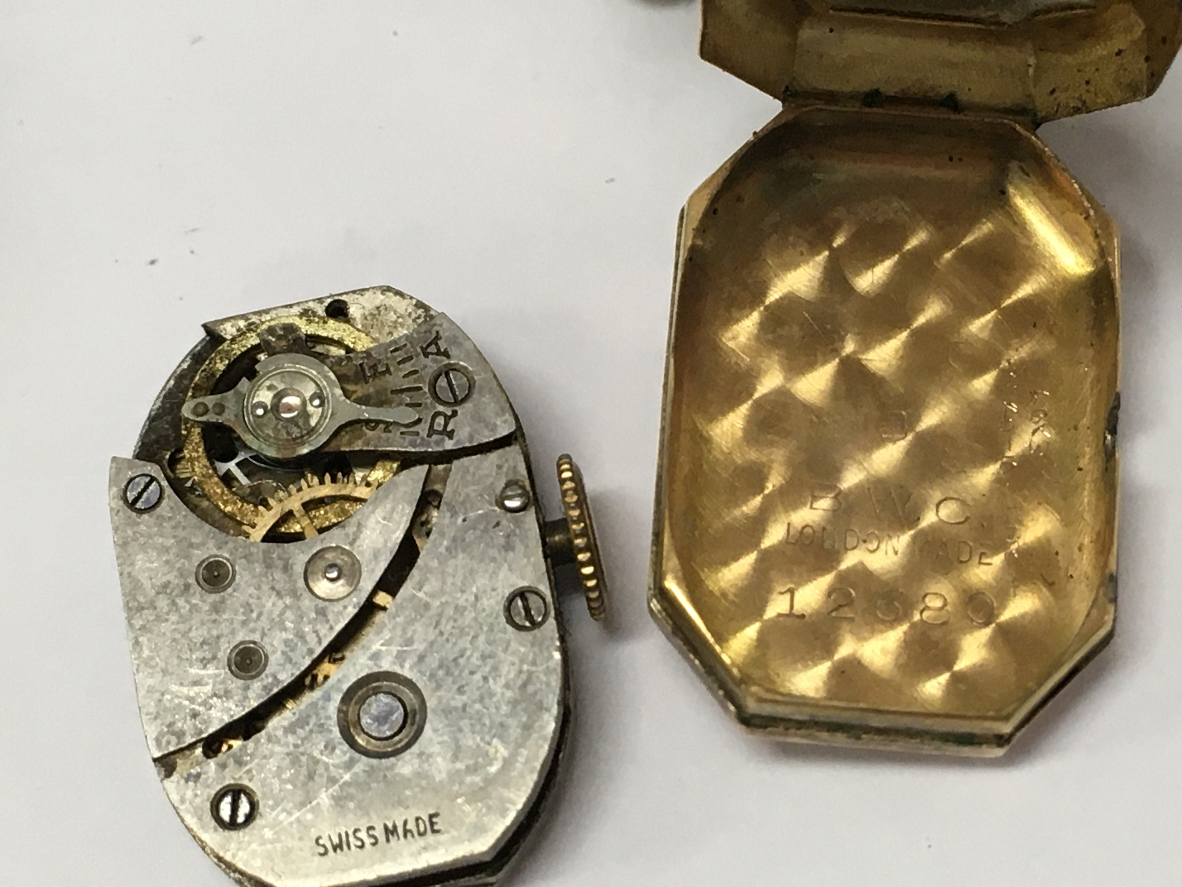 A Collection of vintage watches including An Ingersoll Triumph gents wrist watch , ladies watches - rolled gold Gervaux S.A, B.W.C London Swiss movement watch , 9 carat gold cased Elco London watch