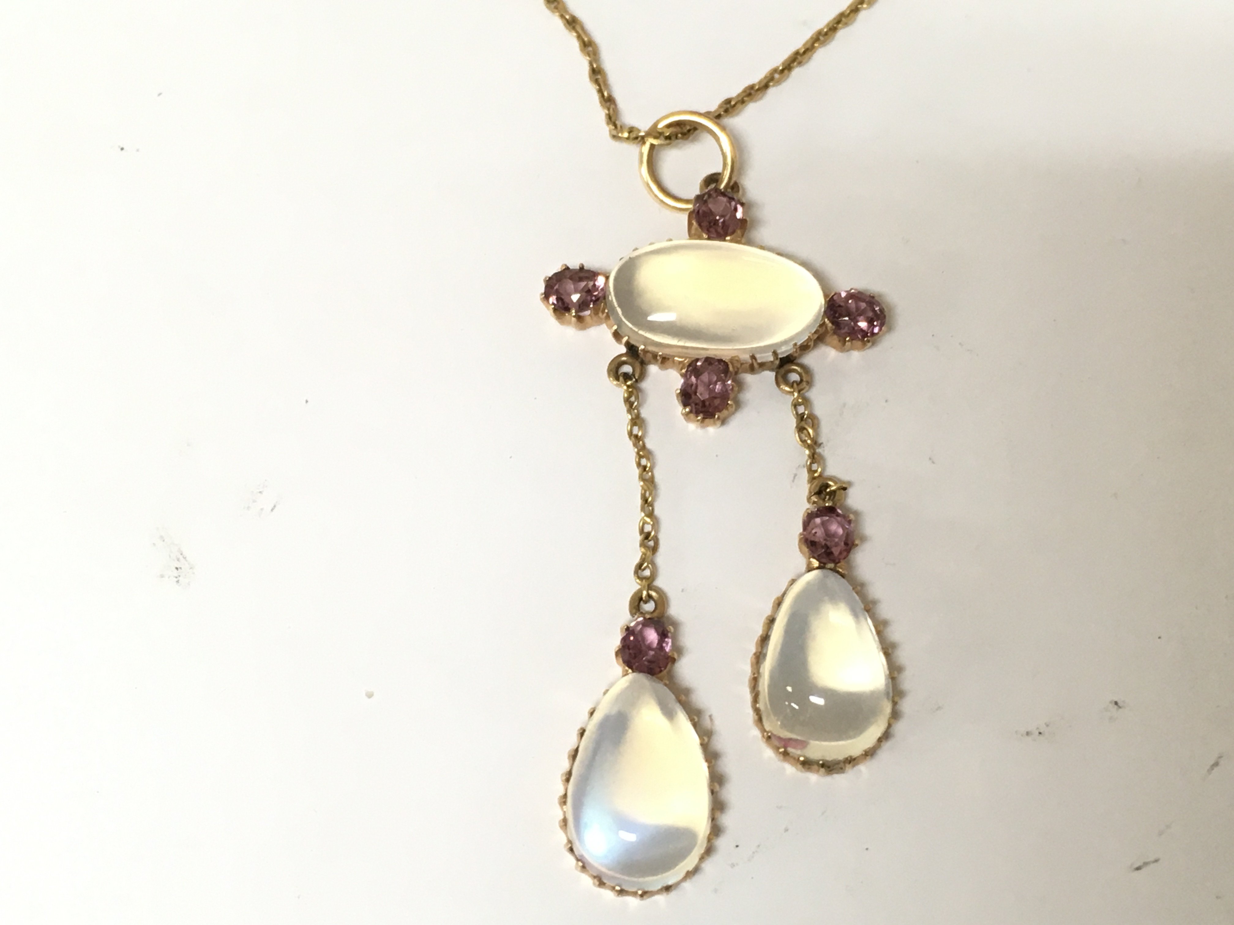 A 15ct amethyst and moonstone pendant necklace. 7.79g