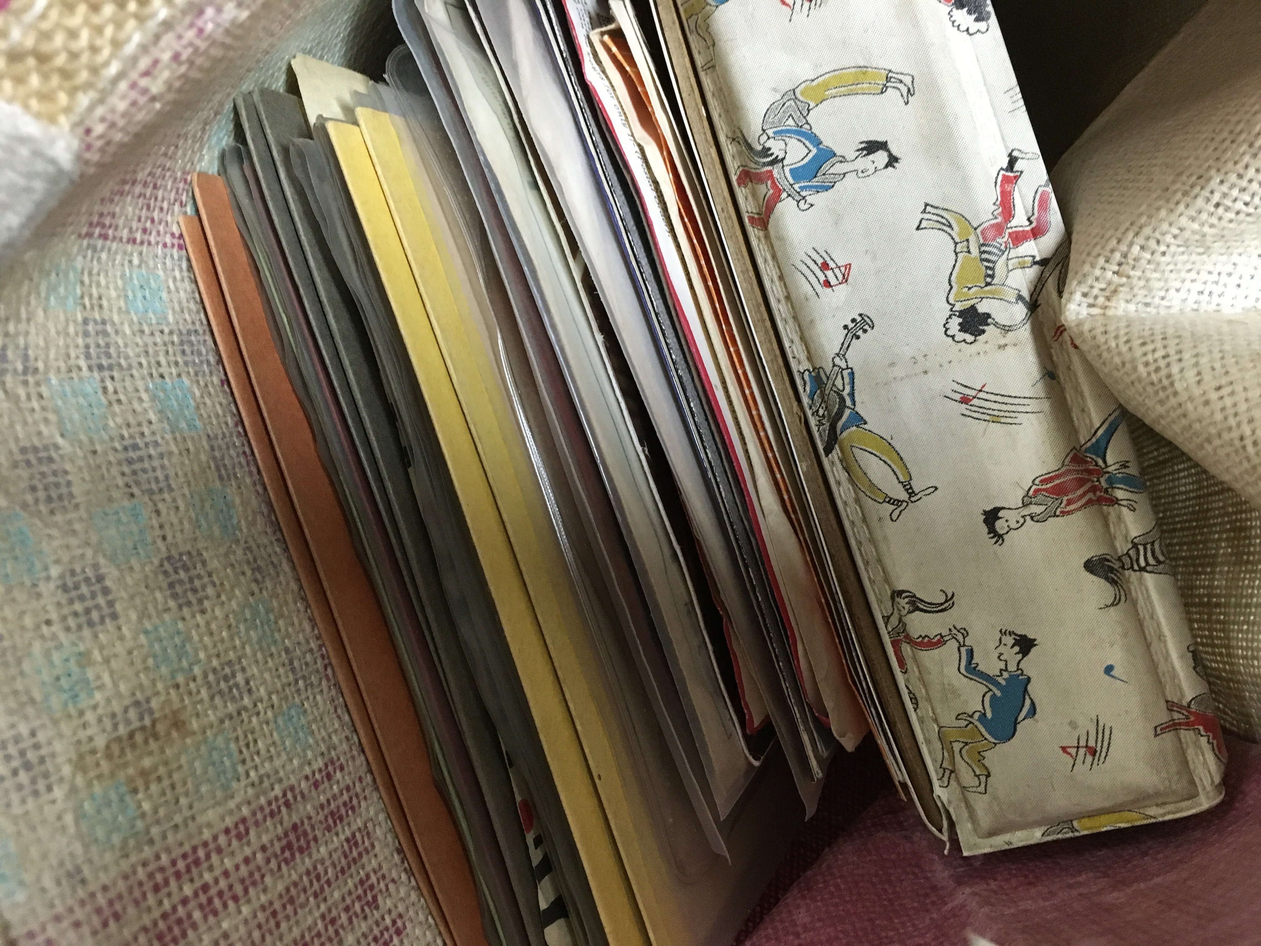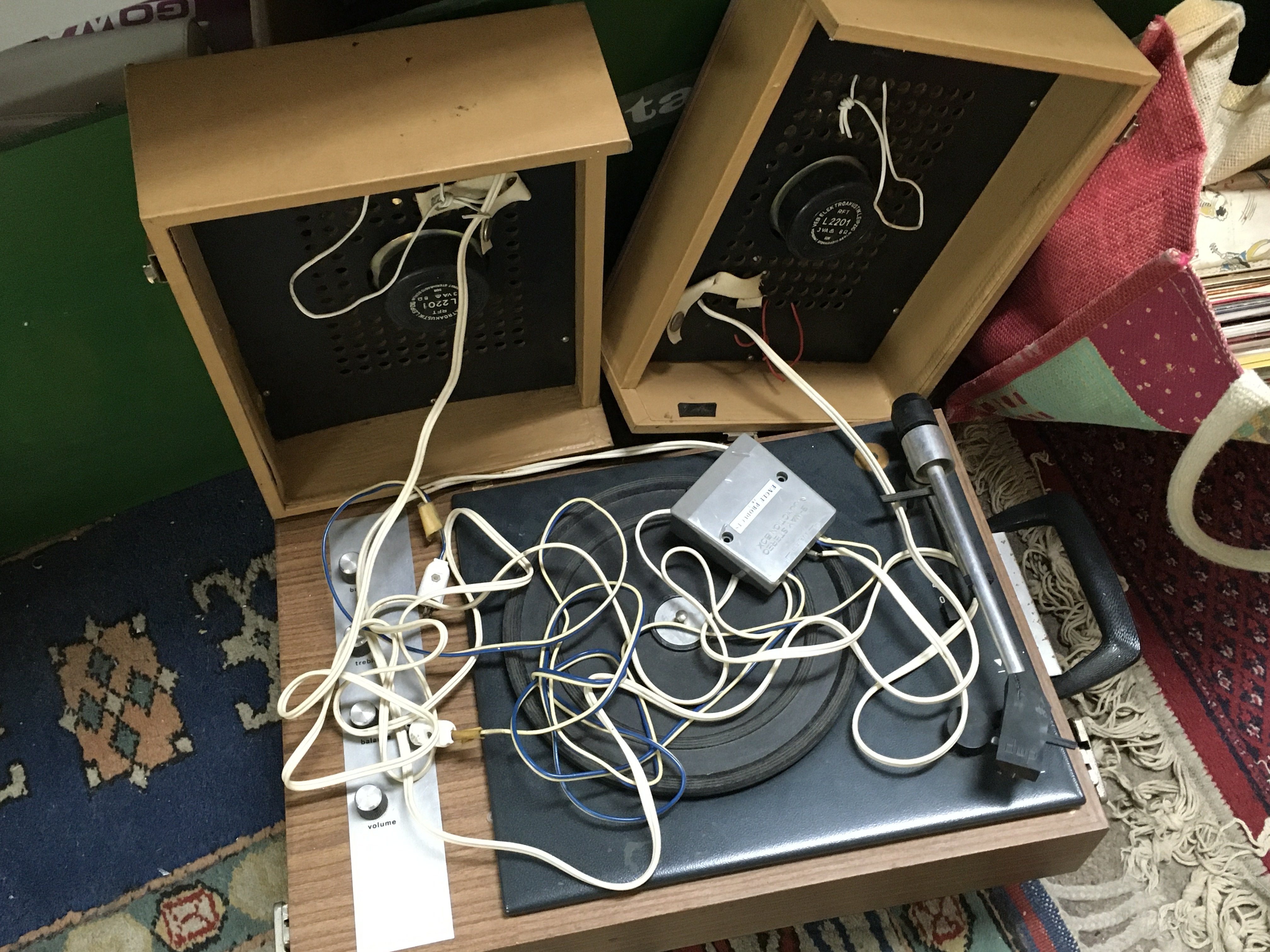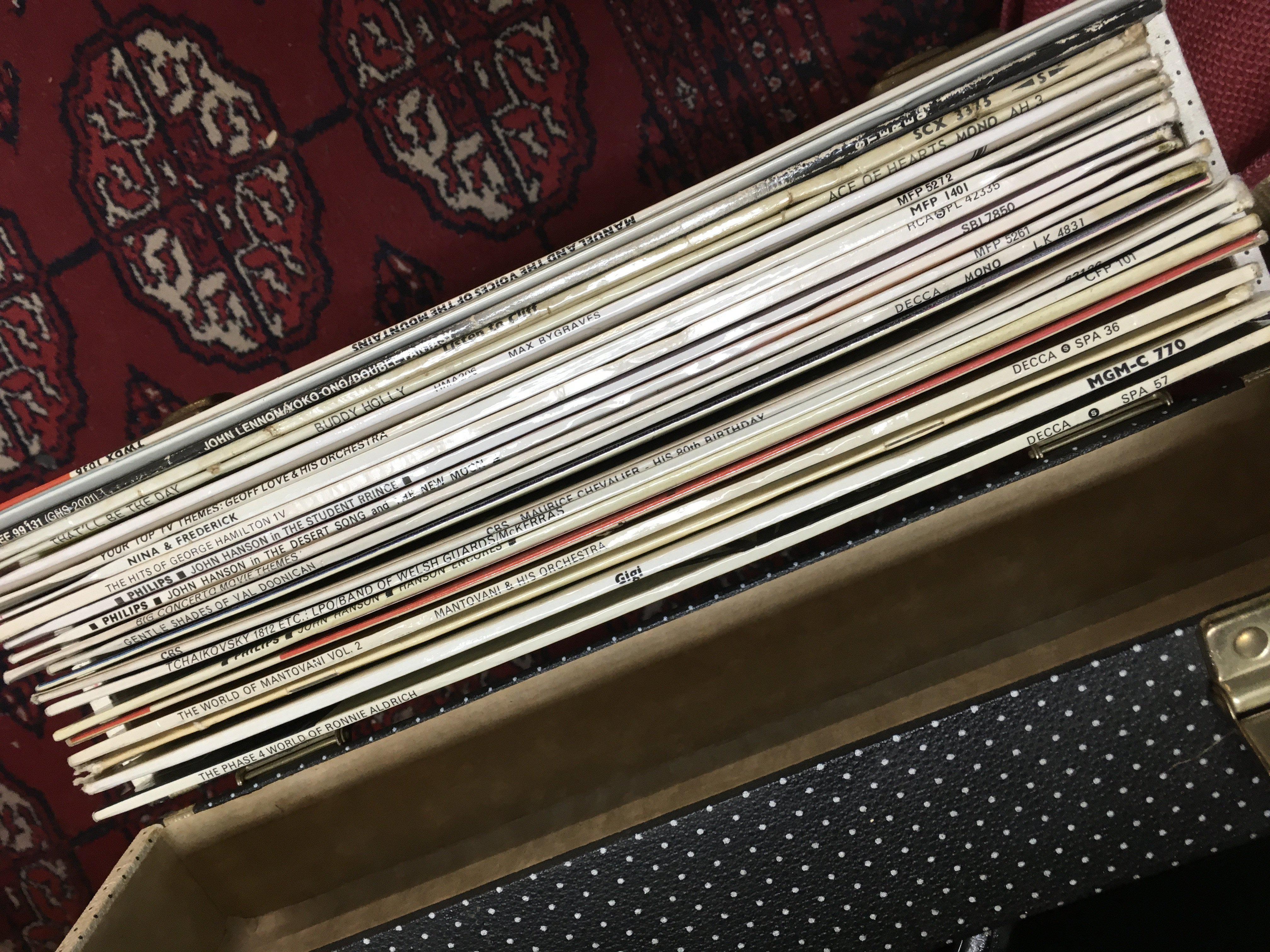 LPs and albums including David Bowie Pin Ups, Genesis Foxtrot, Beatles rock n roll music , John Lennon etc with player. No reserve