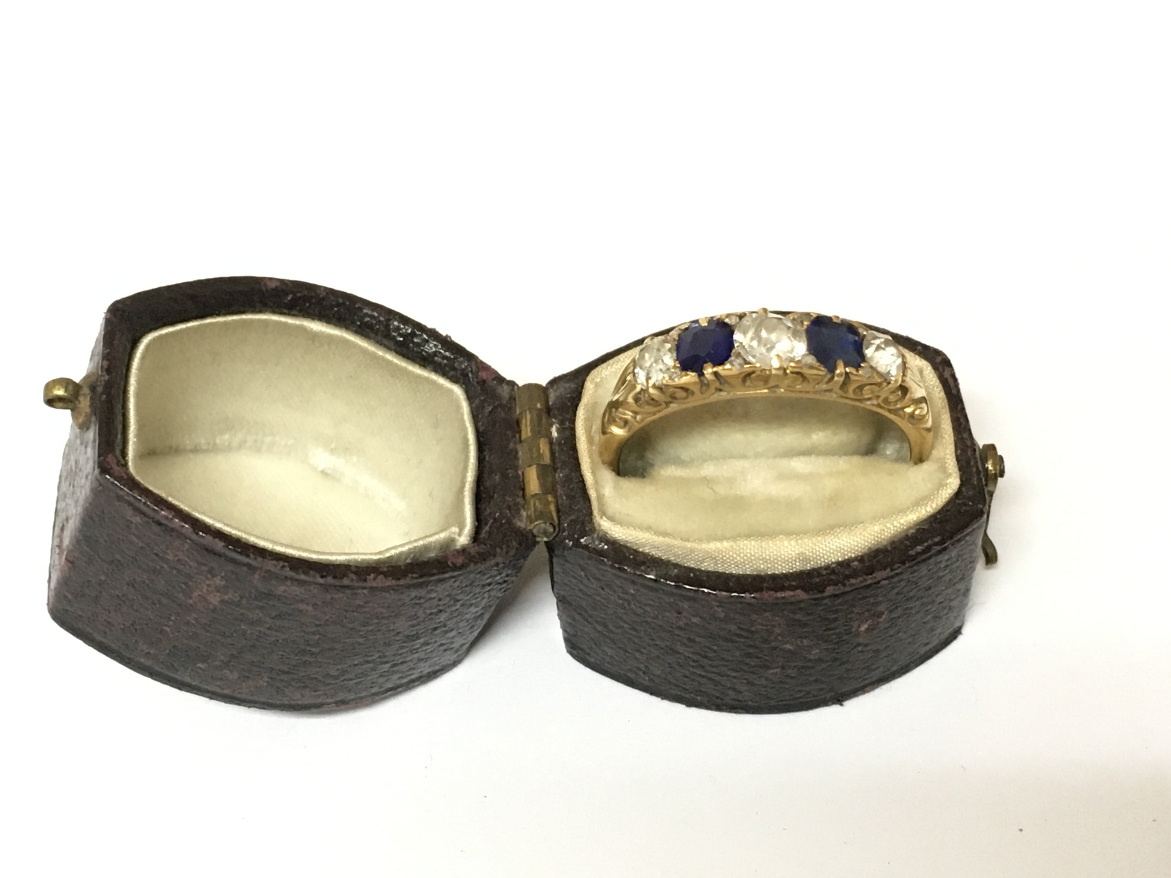 A yellow metal sapphire and diamond ring. Size R and 3.35g