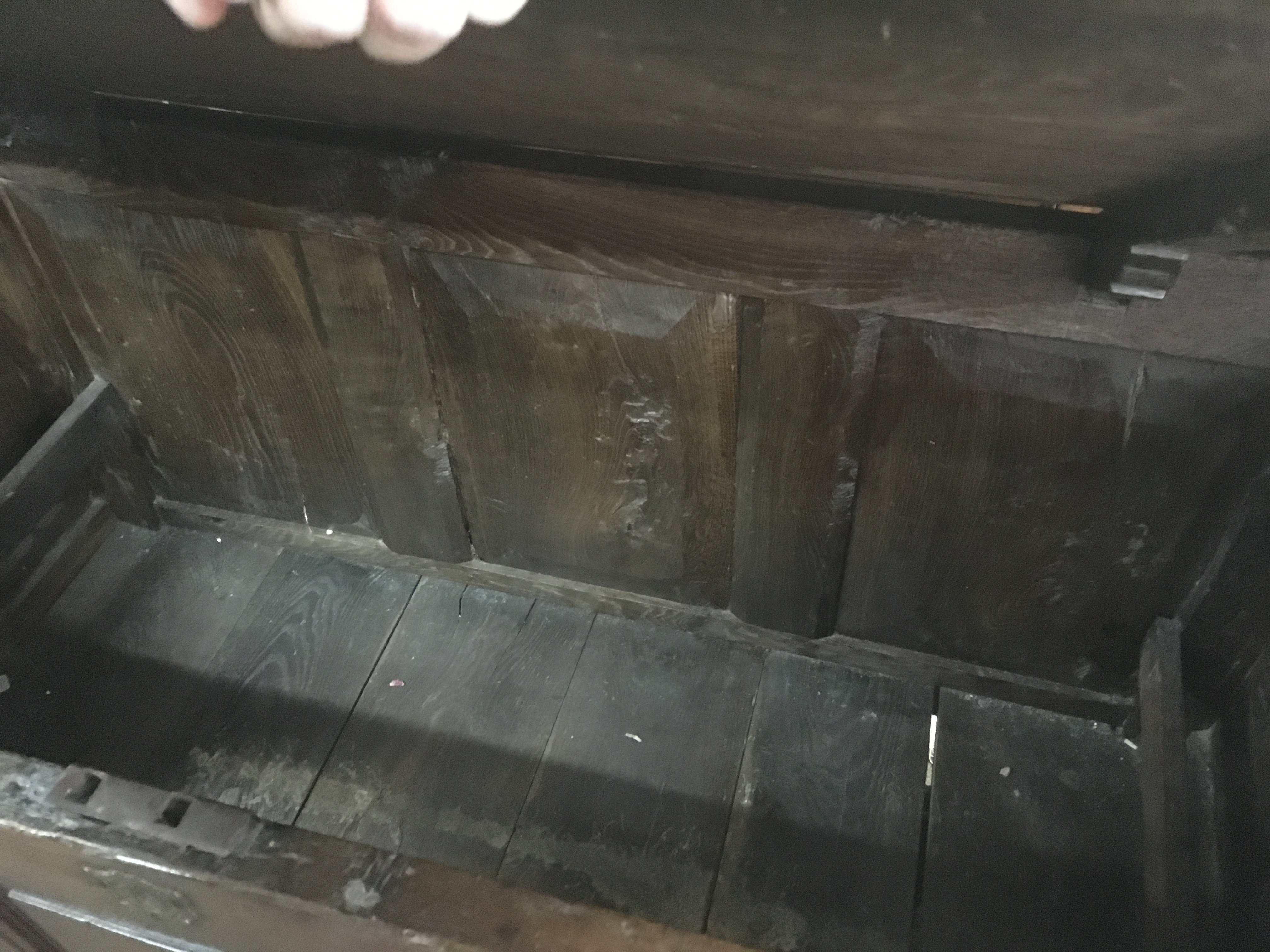 An 18th century oak chest 130cm wide 58cm long 70cm tall