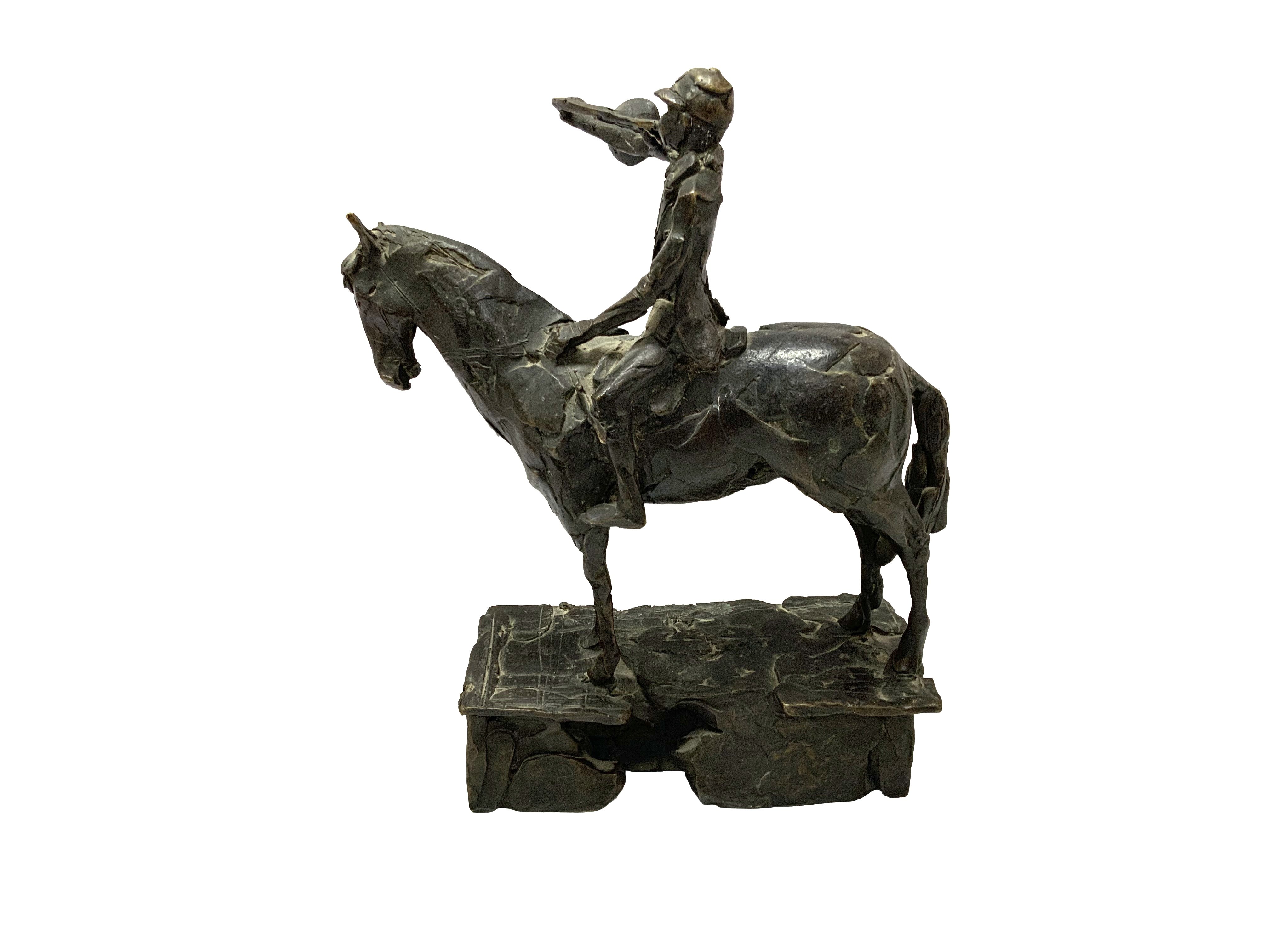 A modern studio bronze figure of Huntsman on horseback.