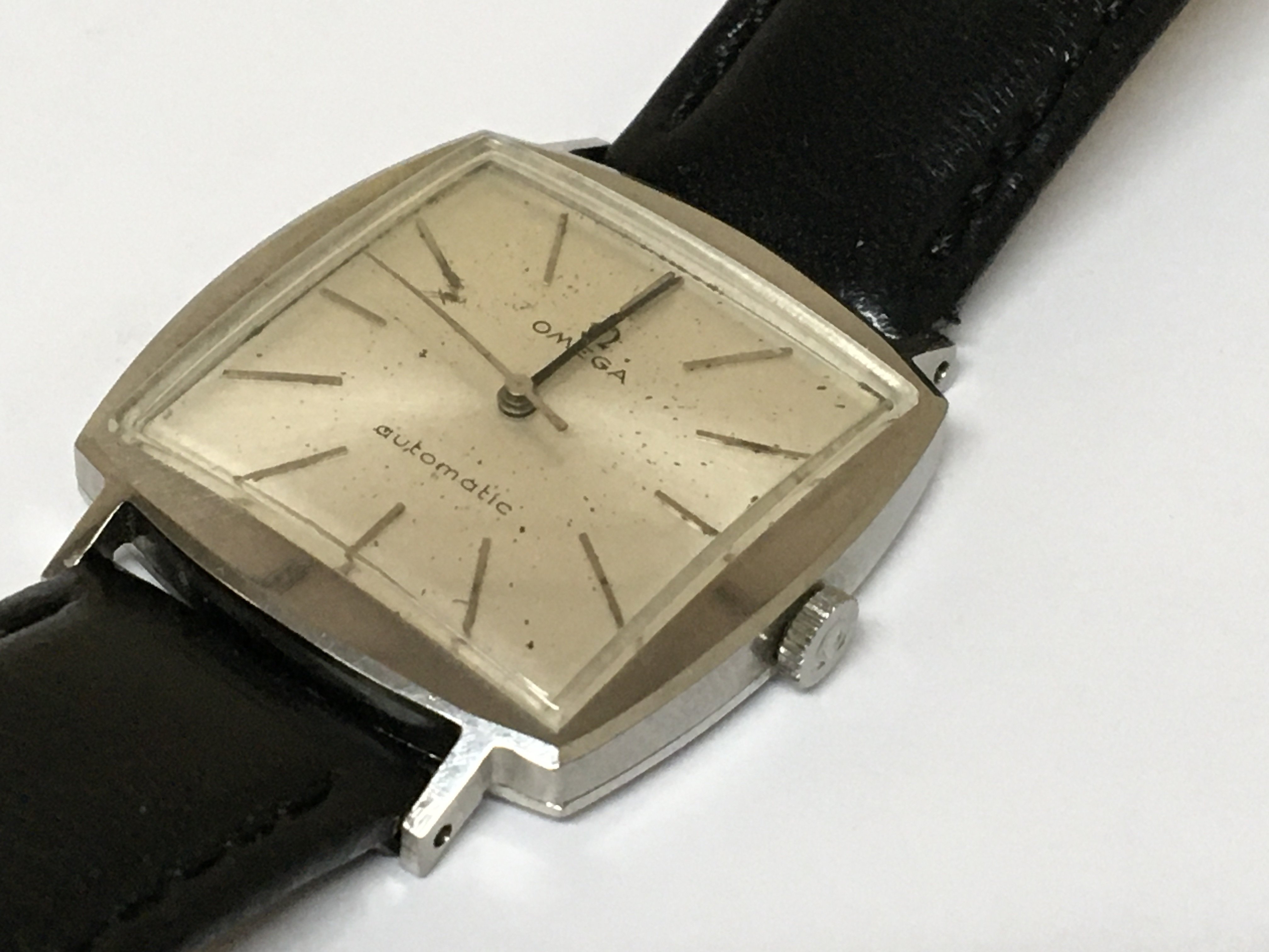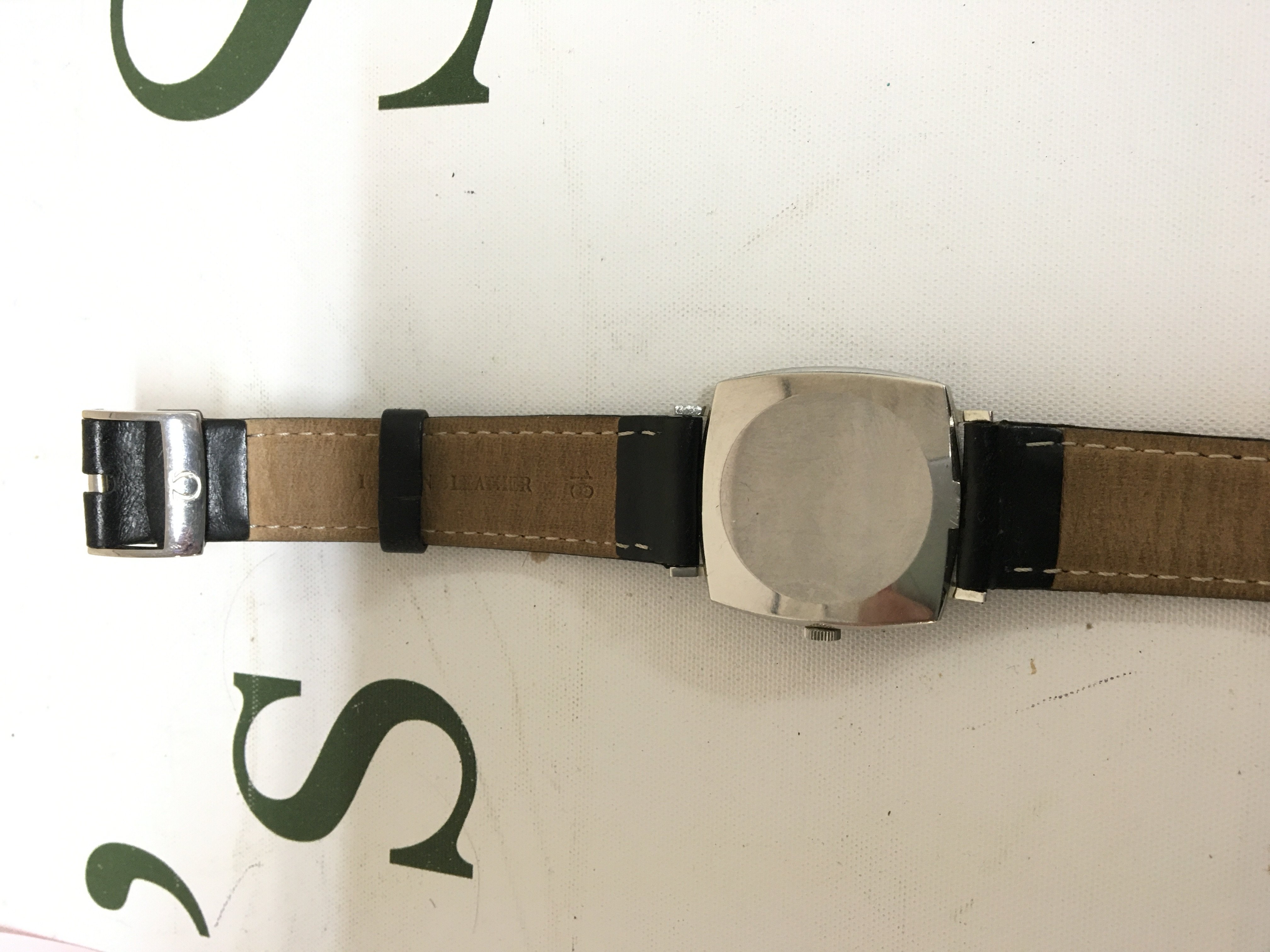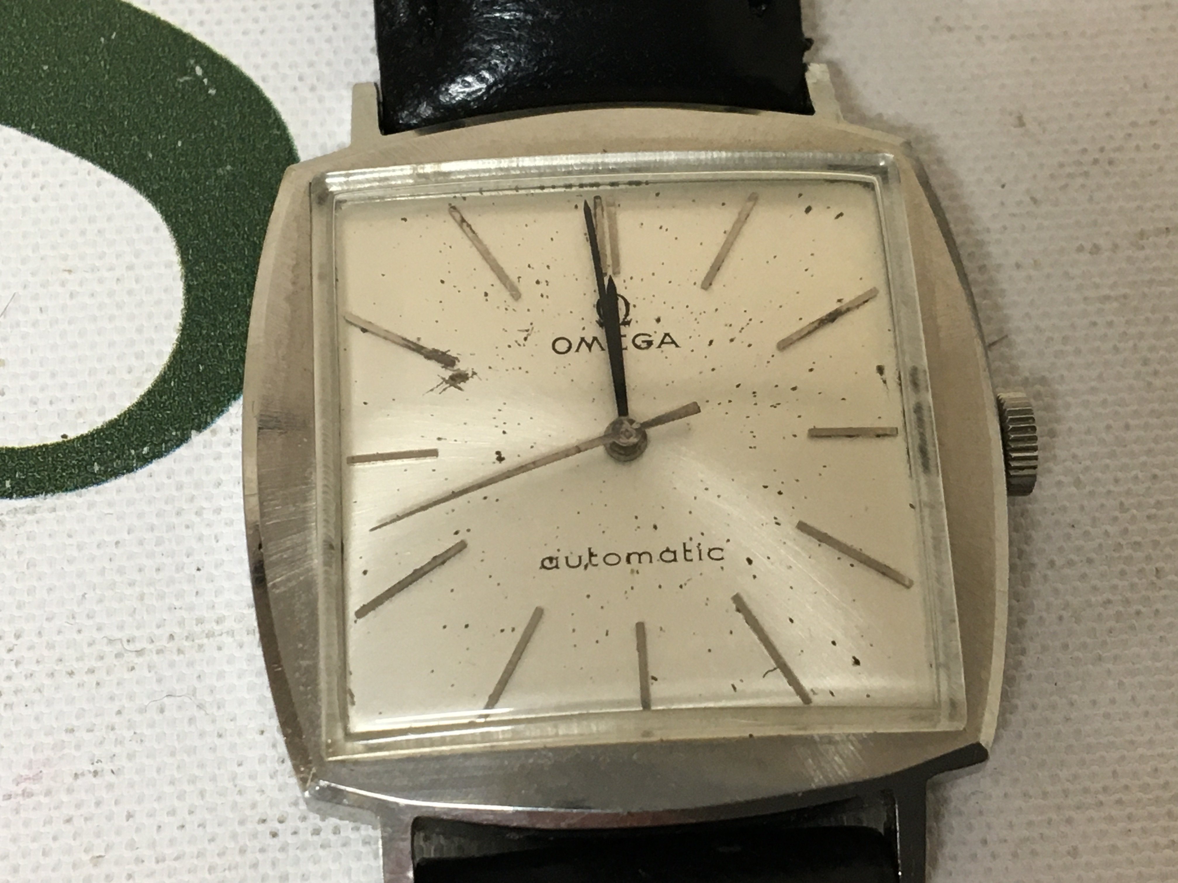A Vintage Gents Omega Automatic wrist watch with a stainless steel cushion case watch seen working and with original box.