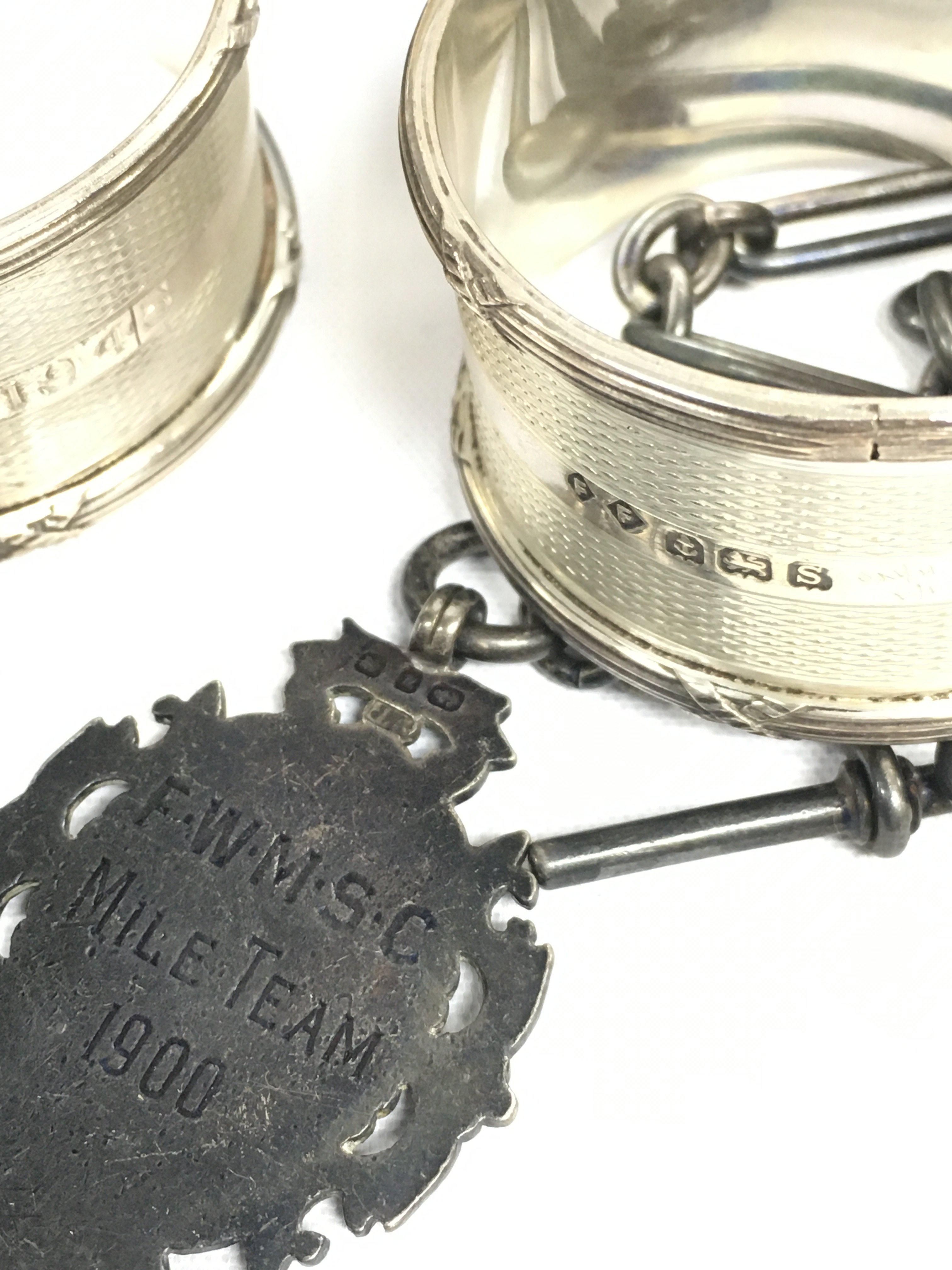 A small collection of silver items including Napkin rings, Pendants, watch chain etc. postage category B