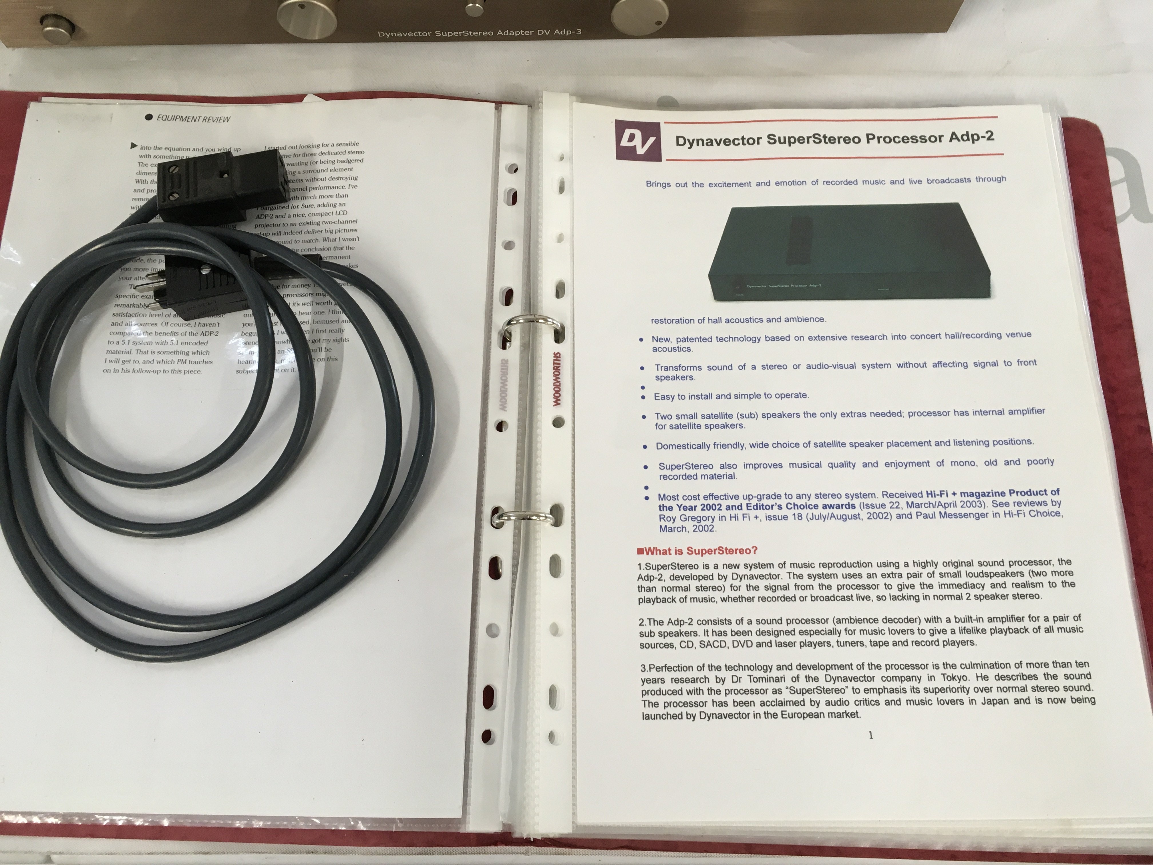 A boxed Dynavector Super Stereo adapter ADP-3. Comes with purchase receipt, booklets, operation manual etc.