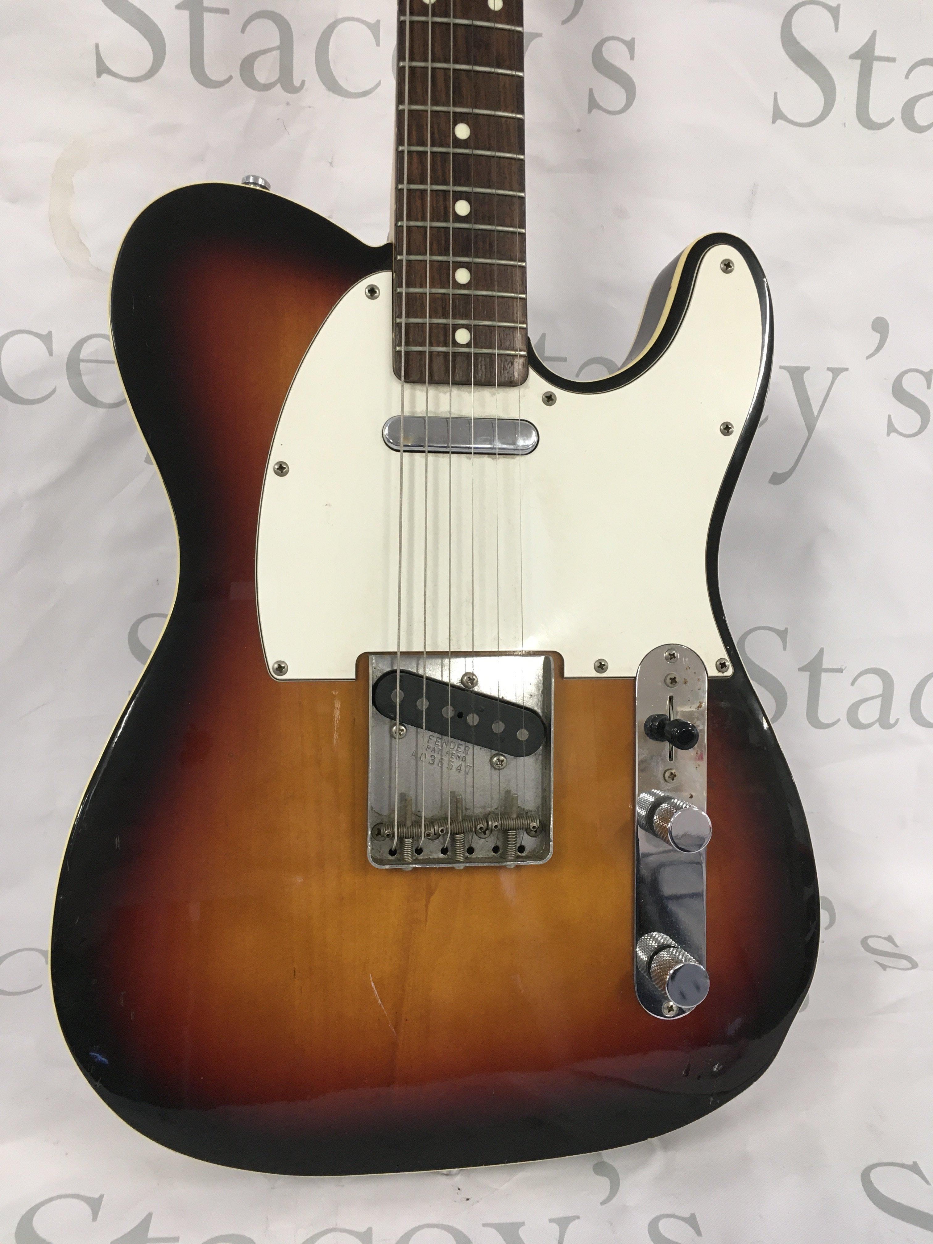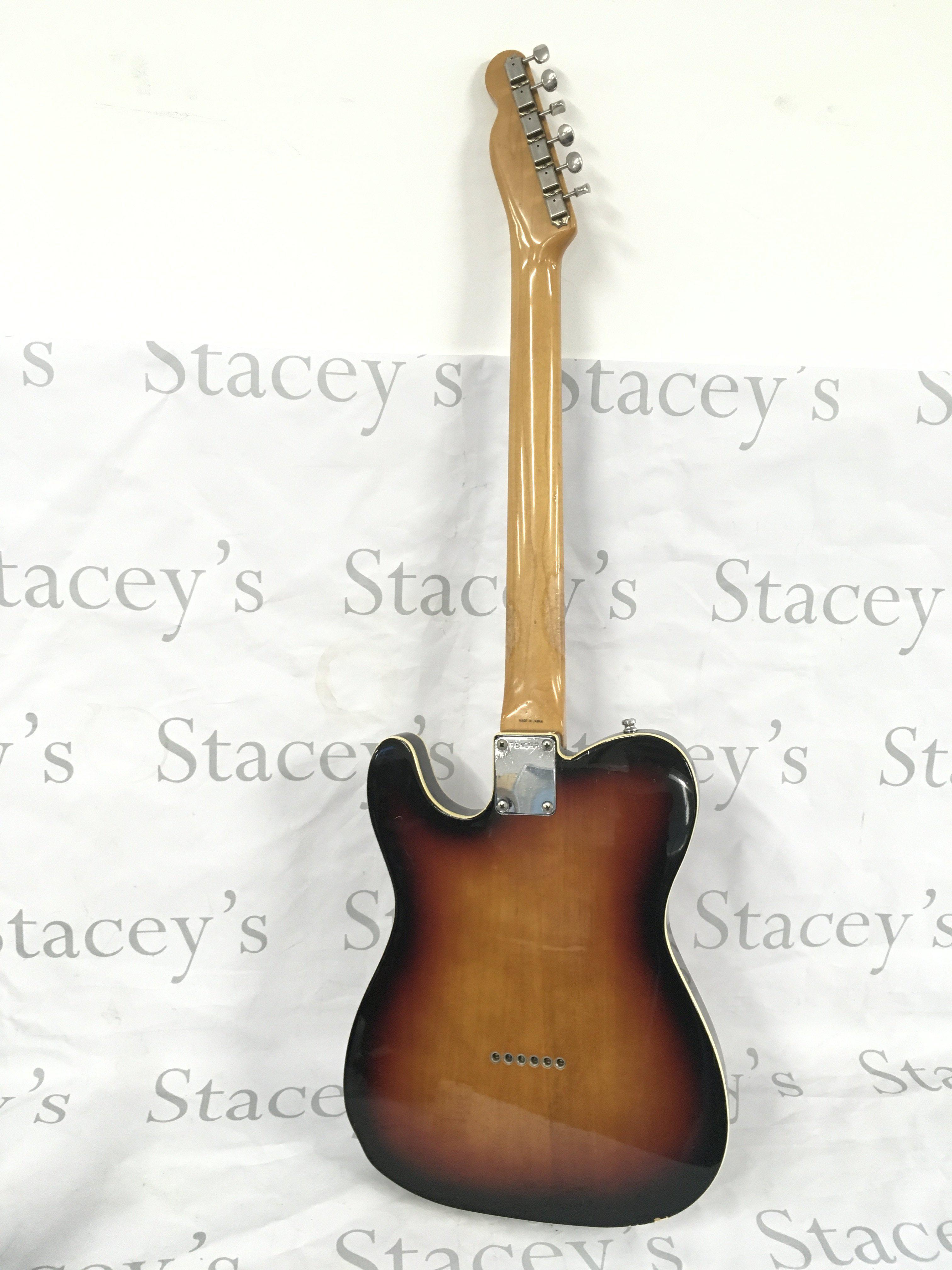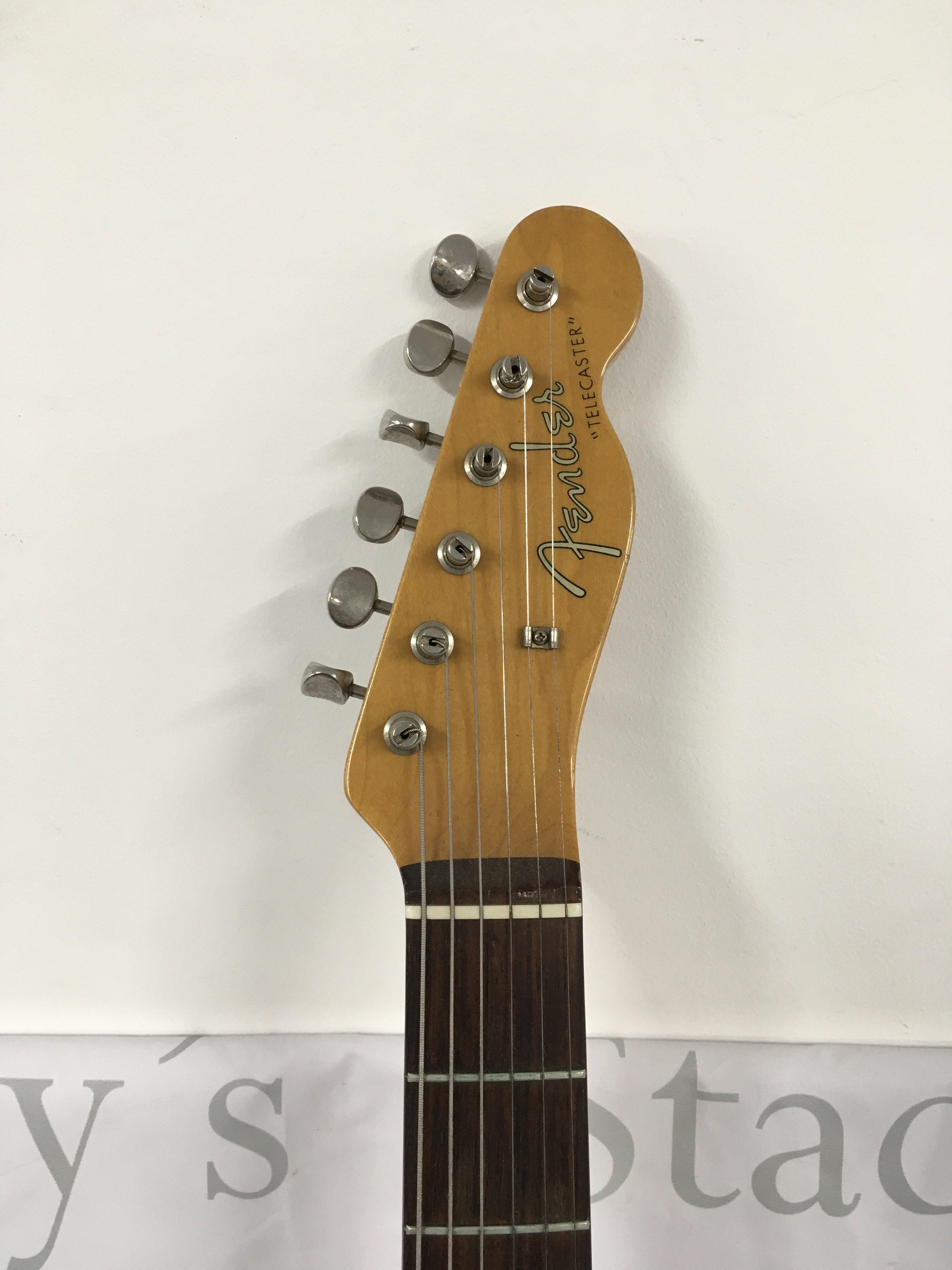 A Japanese Fender Telecaster electric guitar with a Fender branded hard carry case.