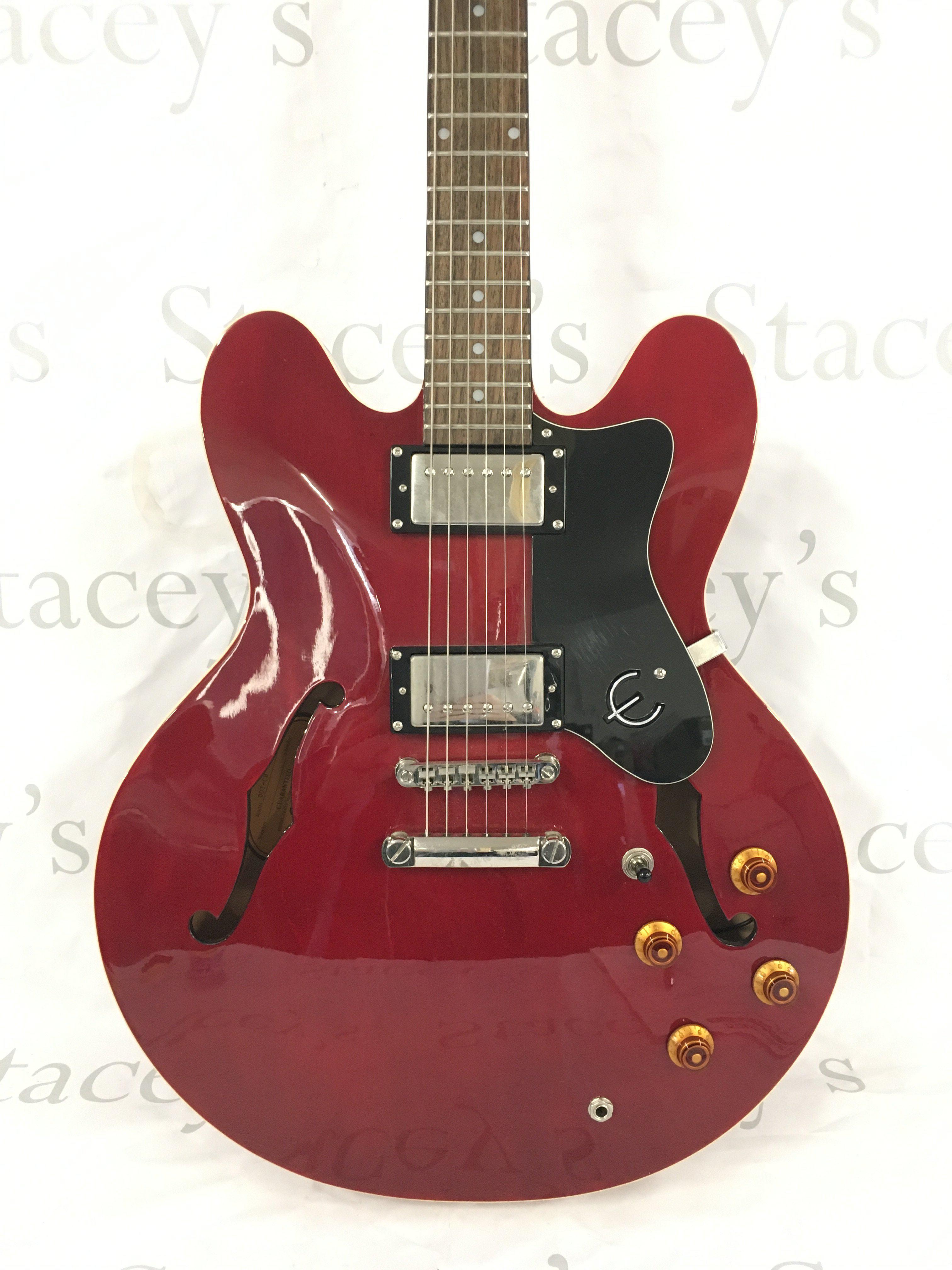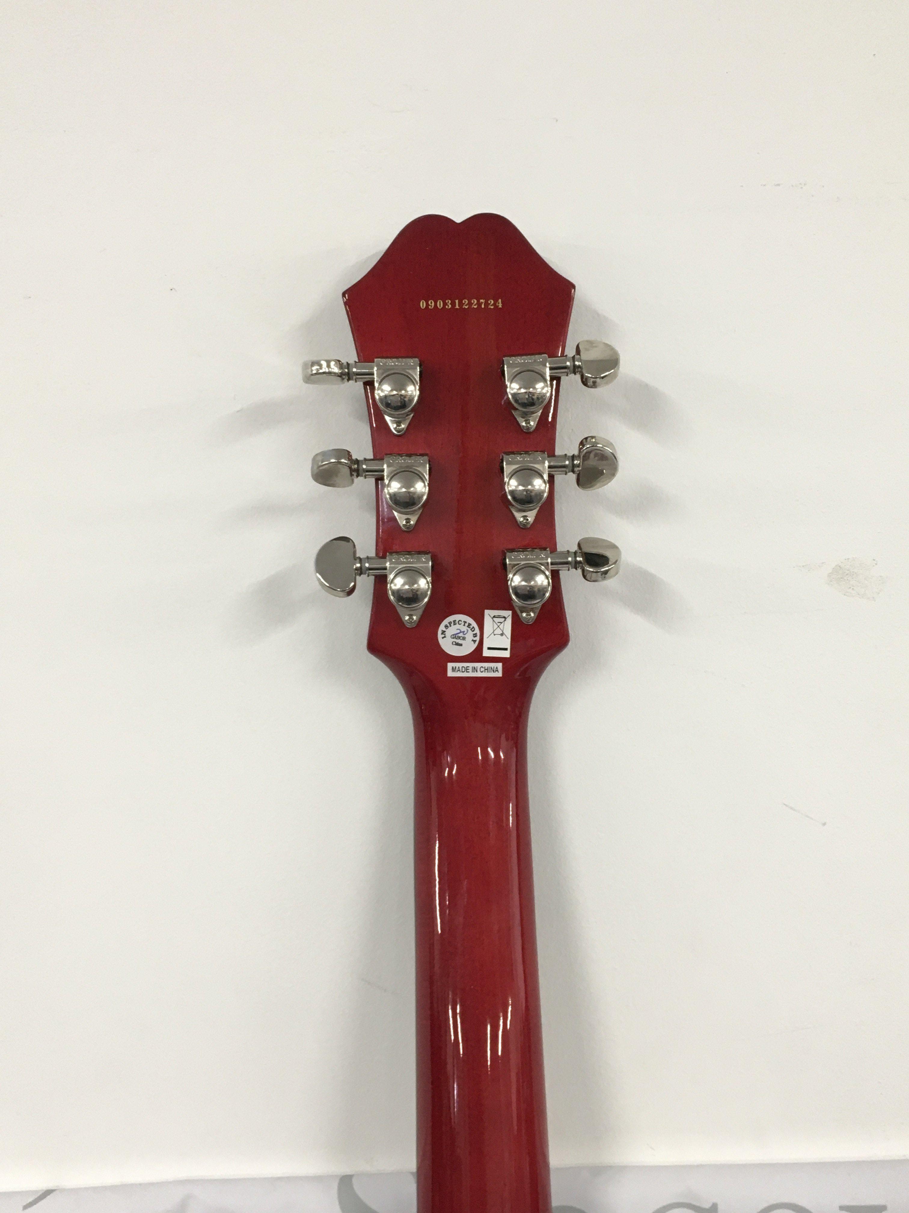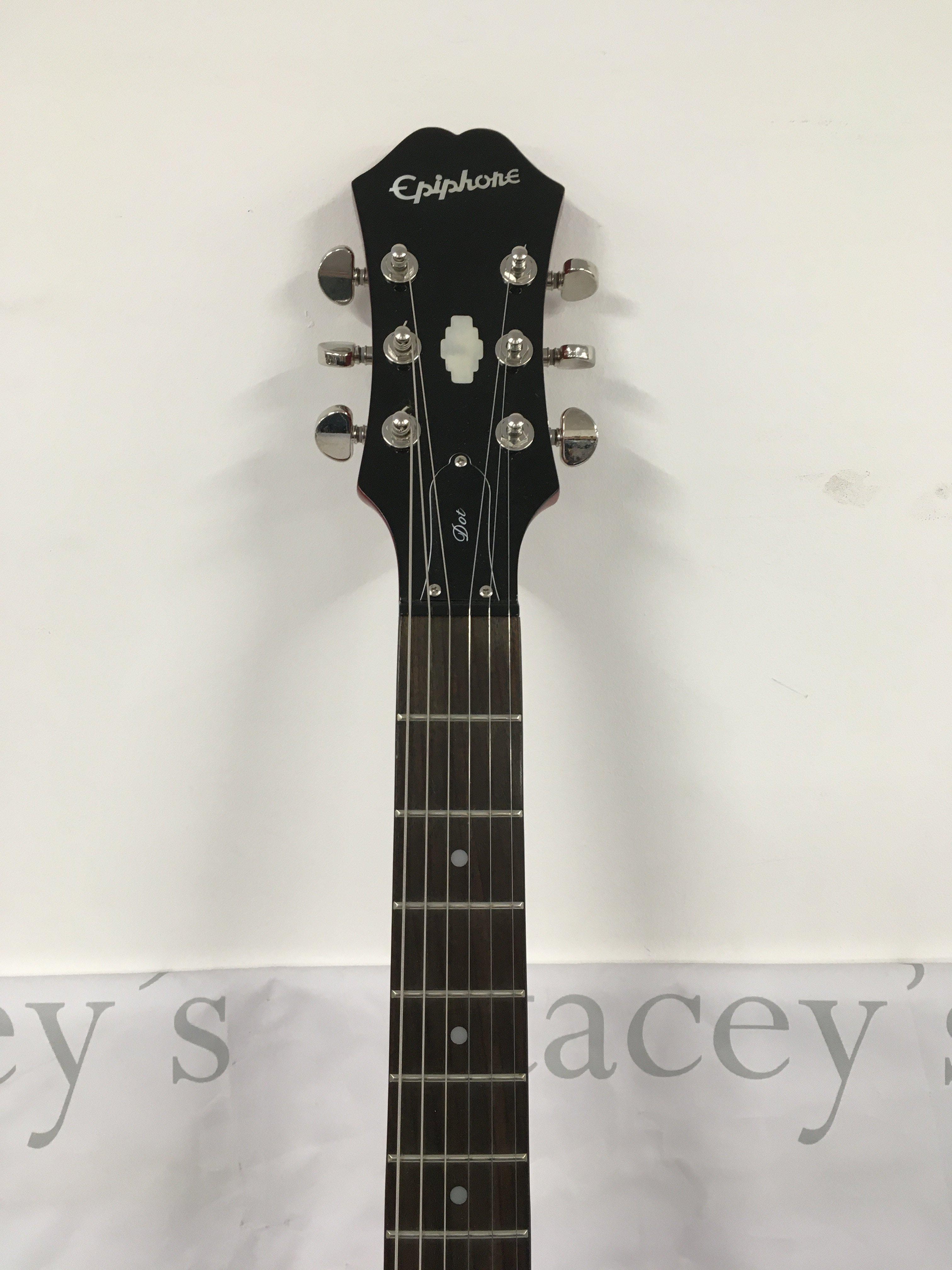 An Epiphone Dot electric guitar with hard carry case.