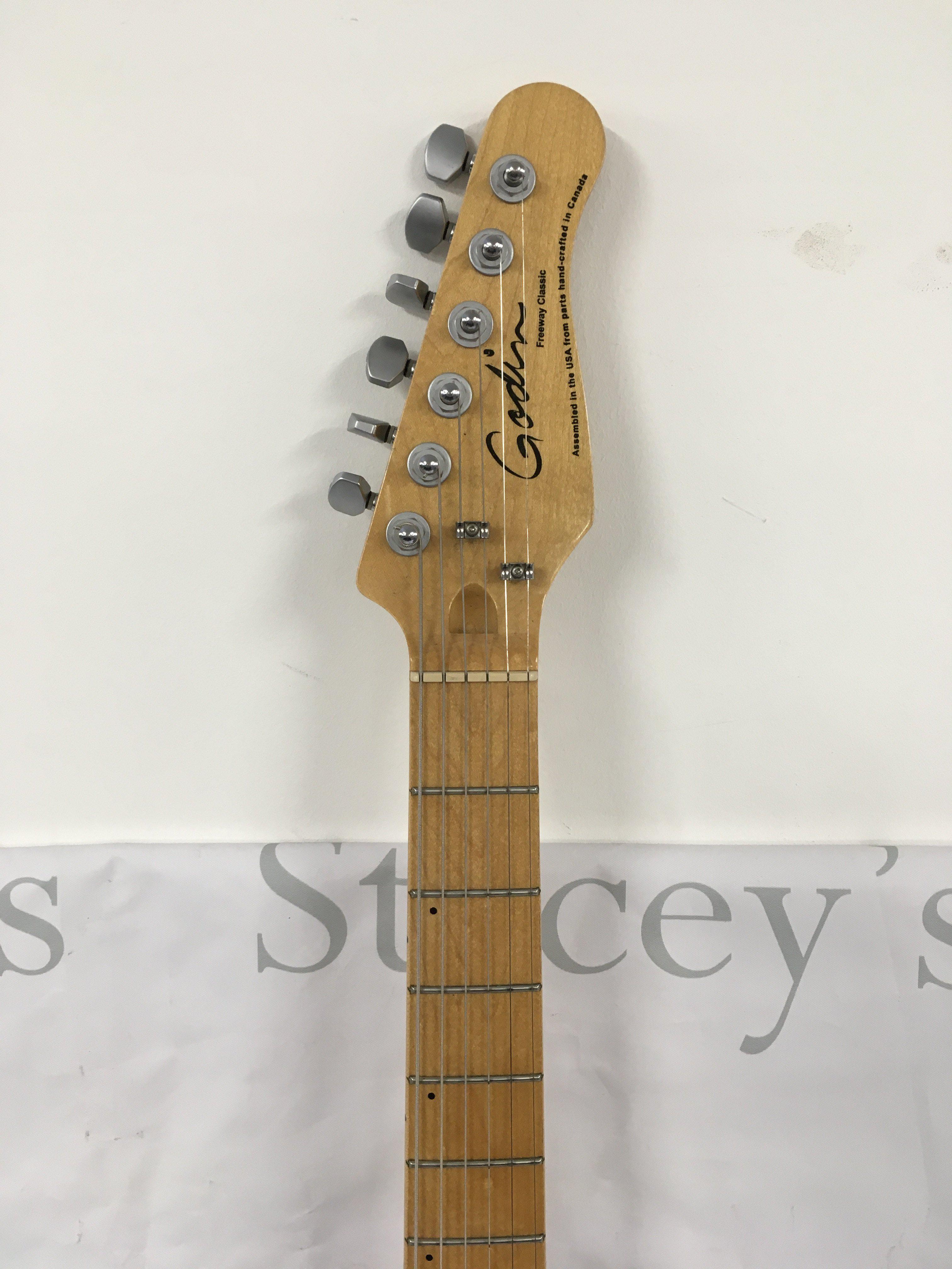 A Godin Freeway Classic electric guitar with original soft carry case.