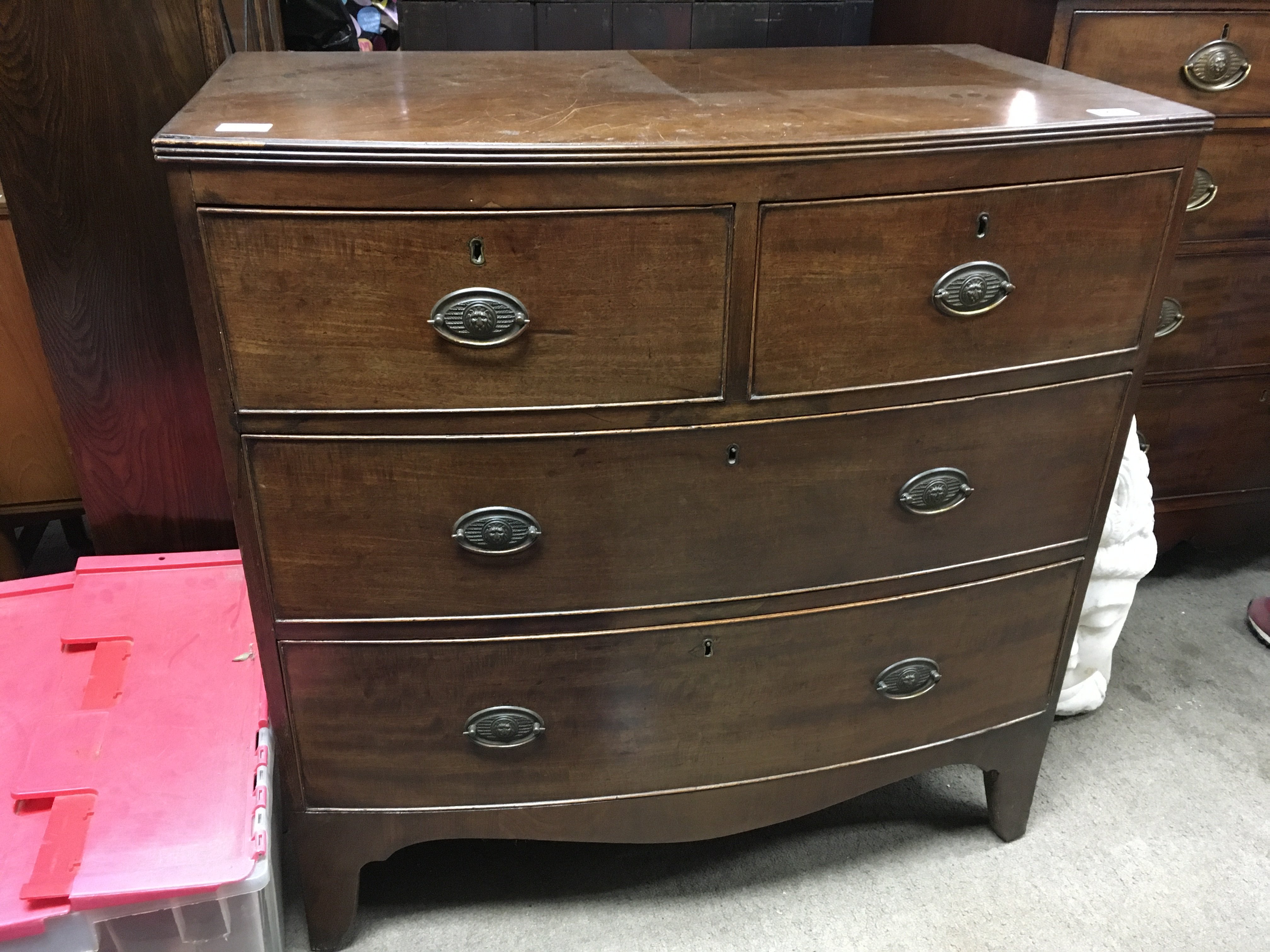 A Victorian mahogany bow fronted chest of drawers, fitted with two short and two long drawers